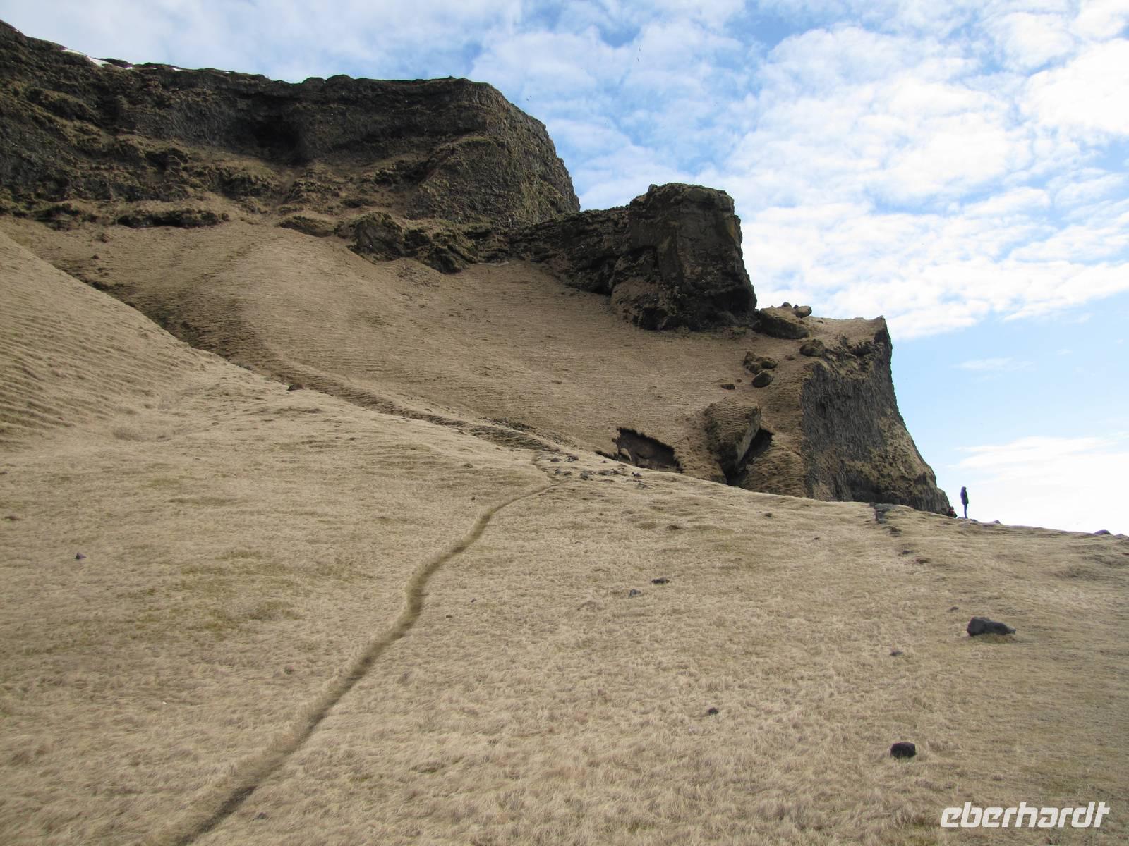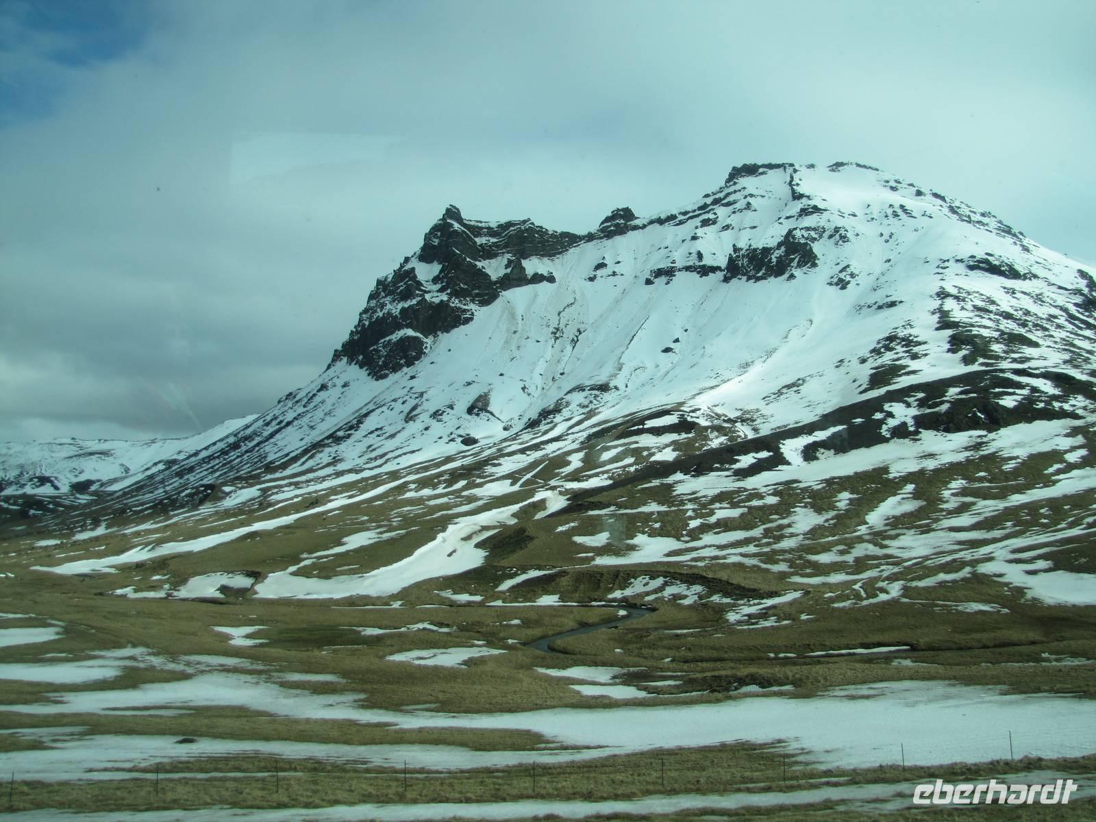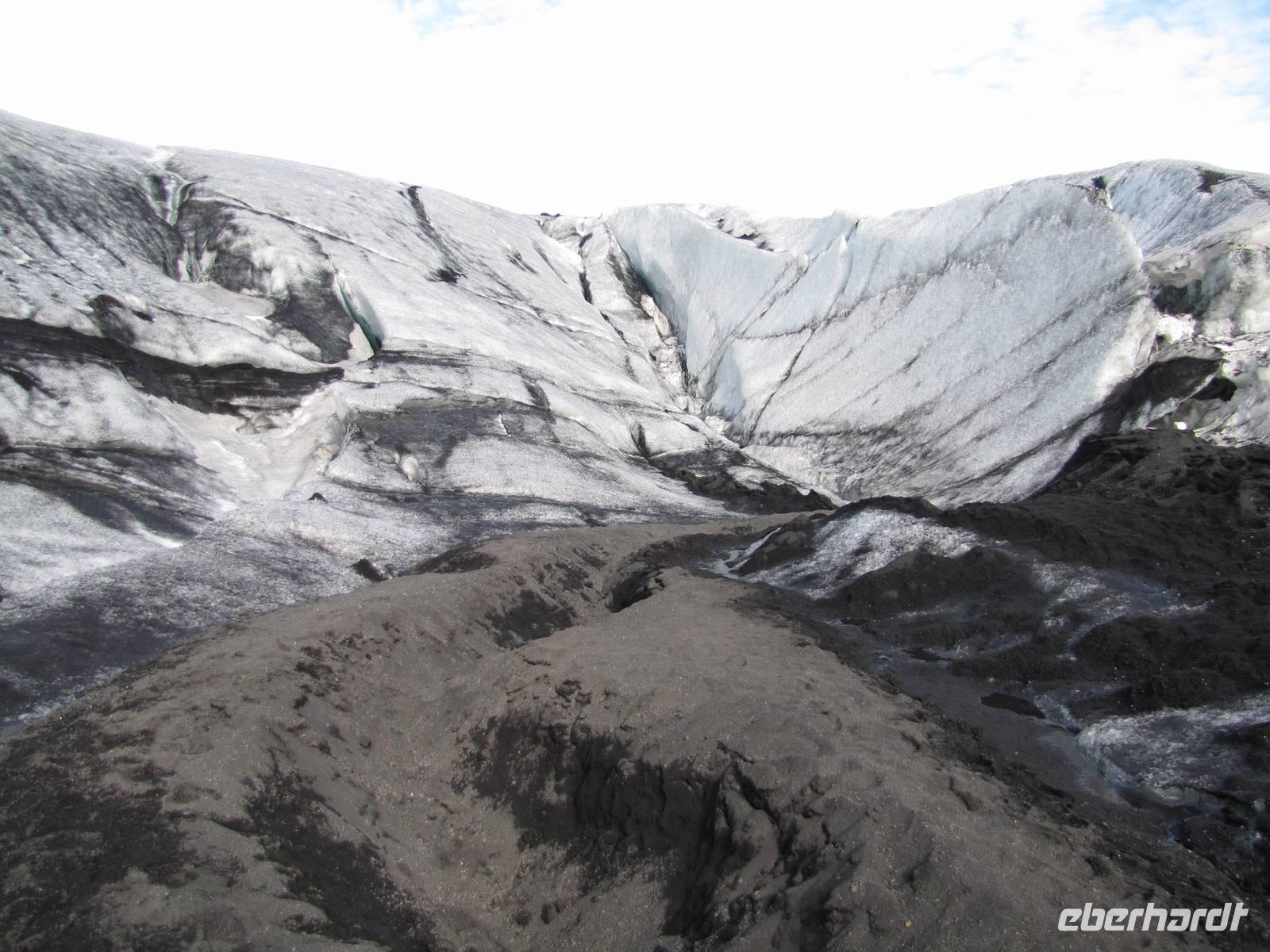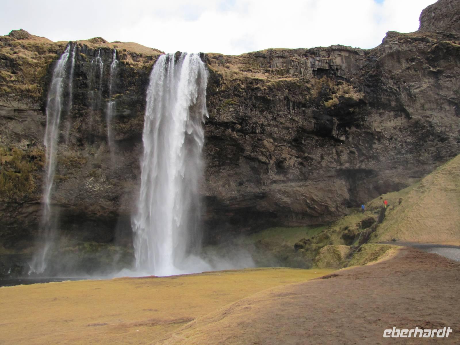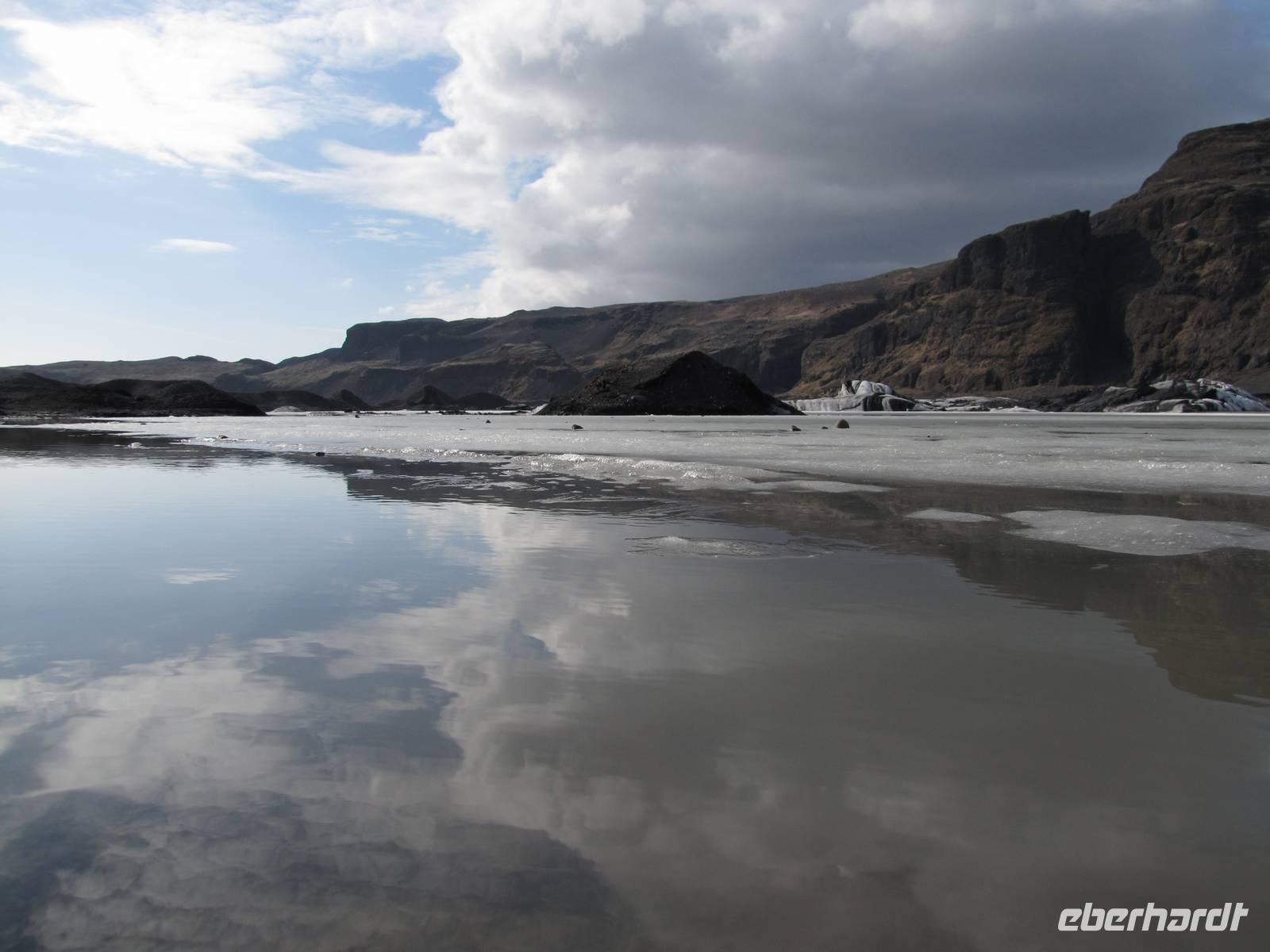 Zur Mittagspause hielten wir in Vik, einem kleinen Dorf direkt am Meer. Wir spazierten ca. 5min. zum schwarzen Sandstrand und blickten in südliche Richtung auf das Meer und auf den Golfstrom. Der Strand zählt laut einer amerikanischen Zeitschrift mit zu den schönsten Sandstränden der Welt. Wenn man hinter sich schaute konnte man die schneeweißen Berge sehen und vor sich die frische Meeresluft genießen, welch abwechslungsreiche Natur!
