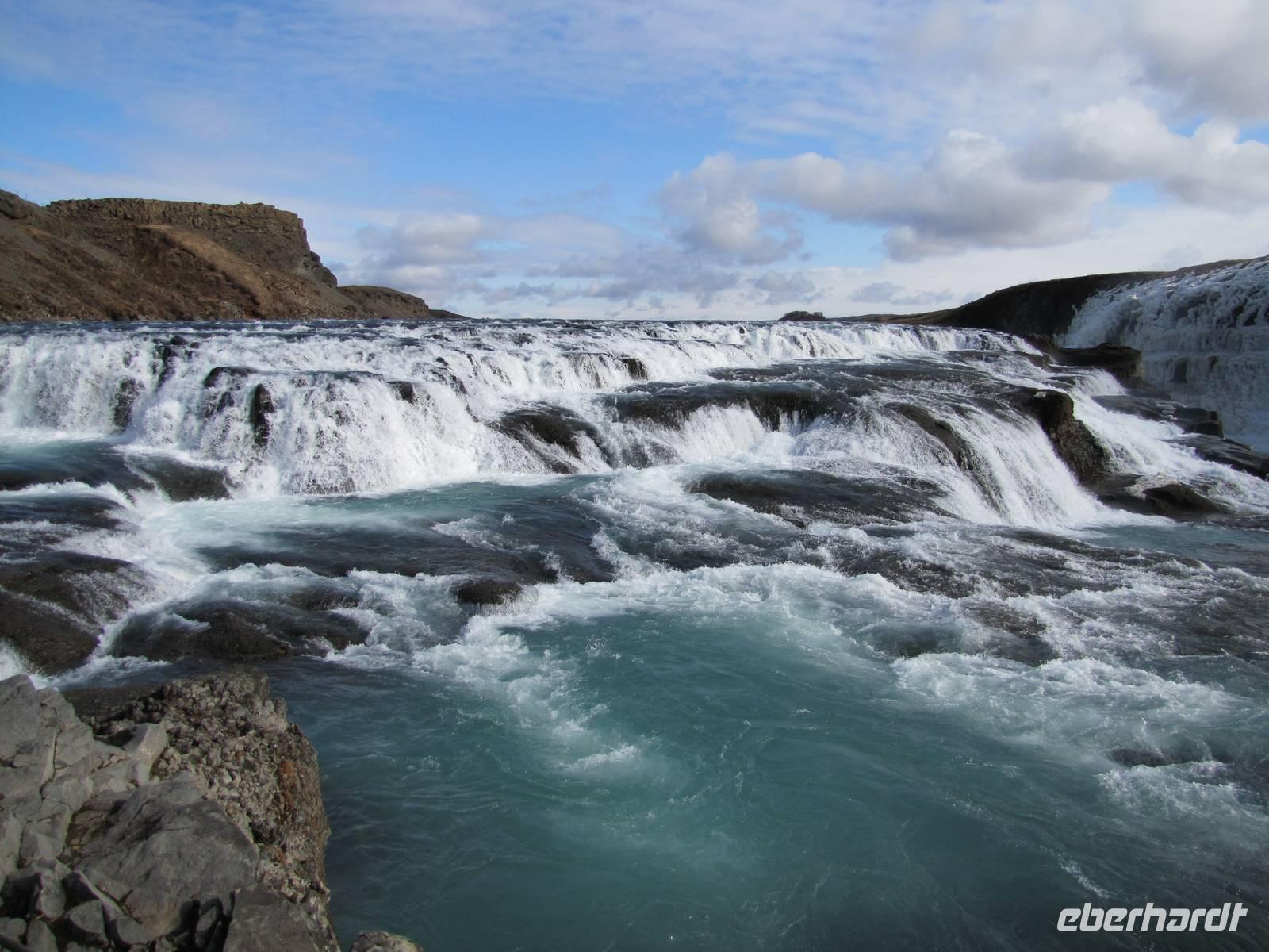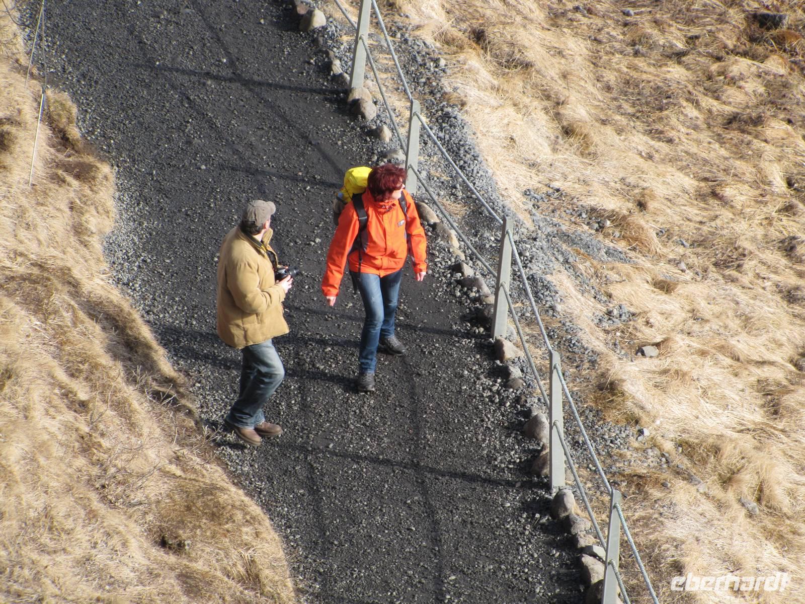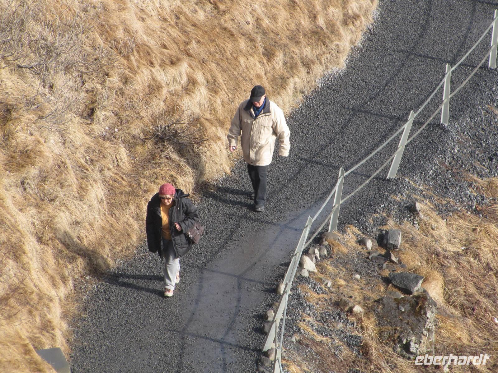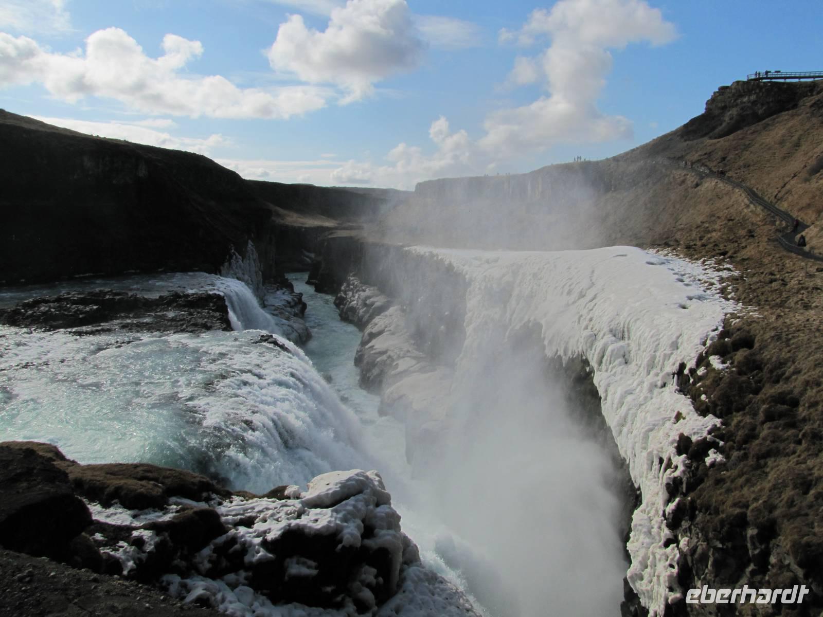 An unserem vorletzten Tag ging es als erstes in den Thingvellir Nationalpark. Dort konnten wir bei einem ersten Fotostopp auf die Amerikanische und Eurasische Platte schauen. Dazwischen lag das „Niemandsland" mit tollen Seen und kleinen Flüssen. Das Wetter erreichte an diesem Tag seinen Höhepunkt, Sonne und blauer Himmel soweit das Auge reichte. Auf Island muss im Frühling keiner frieren! ;) Weiter ging es zum Gullfoss, zu Deutsch Goldener Wasserfall. Dort stürzten sich die Wassermassen über zwei Kaskaden hinab in die Tiefe. Es war ein imposanter Anblick! Nach einer einstündigen Mittagspause fuhren wir weiter zum nächsten großen Highlight unserer Reise, den größten und vielleicht schönsten Geysiren der Welt. Aller 5min. schoss eine gigantische Wasserfontäne mit heißem Wasser aus der Erde ca. 25 Meter in die Höhe. Wir staunten und versuchten tolle Fotos im richtigen Moment zu machen. Auch hier konnten wir in Ruhe eine Stunde lang das Schauspiel bestaunen. Zurück im Hotel erwartete und am Abend wieder ein tolles 3 Gänge Menü. Zum Abschluss gab es noch ein kleines Quiz bevor wir uns noch einmal auf den Weg zur Nordlichtbeobachtung machten. Wir fuhren alle zusammen mit dem Reisebus ca. 40min. in Richtung Keflavik und versuchten ein paar Nordlichter zu erhaschen. Einige male hatten wir kurz die Gelegenheit ein paar grüne Lichter zu erblicken. Leider immer nur sehr kurz. Dafür gab es zwischendurch etwas Brennivin Schnaps (Schwarzer Tod) zum wach bleiben und typisch isländischen Trockenfisch zum probieren. Bevor wir die Rückreise zum Hotel antraten verabschiedeten wir uns von Rosa und bedankten uns für die schönen Tage mit Ihr auf Island. Gegen 1.30Uhr erreichten wir wieder das Hotel.