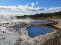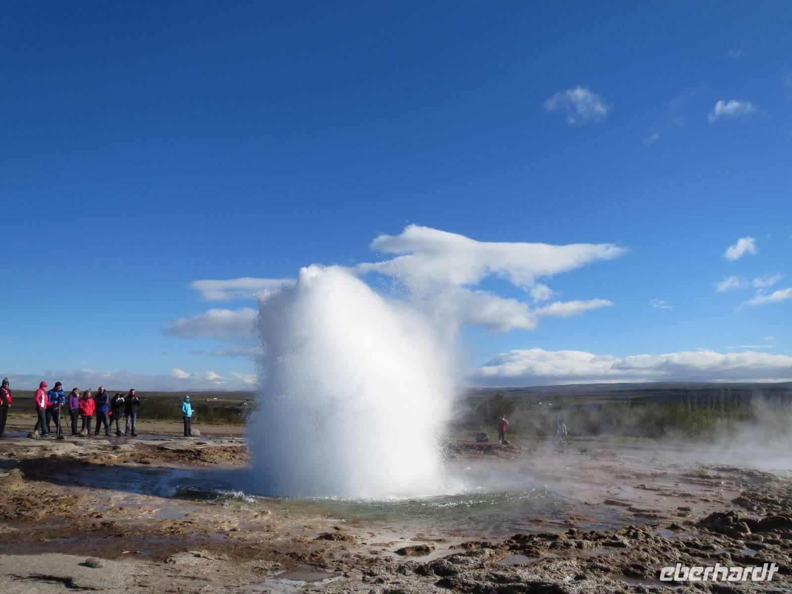 Nach einem reichlichen Frühstück starteten wir heute zum „Goldenen Kreis". Zunächst konnten wir in Hveragerdi, u. a. durch eine Spalte im Haus, die Ausmaße von Erdbeben sehen. Danach bestaunten wir den 32 Meter hohen, gigantischen goldenen Wasserfall Gullfoss. Dieser schlängelt sich 70 Meter in die Tiefe und wurde 1979 zum Naturschutzgebiet erklärt. Der Gullfoss besteht aus zwei Wasserfällen, der obere mit 11 Metern, der untere mit 20 Metern. Es folgen die Geysire - die Springquellen, die bis zu 100 Grad heiß sind. Einer dieser Geysire „Strokkur" brodelt und spuckt ca. aller 5 min eine Wasserfontäne gen Himmel - einfach faszinierend. Von dort starteten wir Richtung Thingvellir, wo die amerikanische und eurasische Platten auseinander triften. Diese sind umgeben von 10.000 Jahre alter Lava. In Reykjavík besuchen wir das Perlan, die „Perle". Sie ist der Warmwasserspeicher, von dem die ganze Stadt Reykjavík mit Warmwasser versorgt wird und im Winter die Straßen und Gehwege beheizt werden. Nach einem sehr schmackhaften Abendessen trafen wir uns für die Nordlichtbeobachtung in der Nacht. Und wie sollte es anders sein, wenn Engel reisen: wir konnten Nordlichter sehen . Man sagt es seien Gottes Erscheinungen. Nach Mitternacht erreichten wir unser Hotel und fielen zufrieden in unsere Betten.