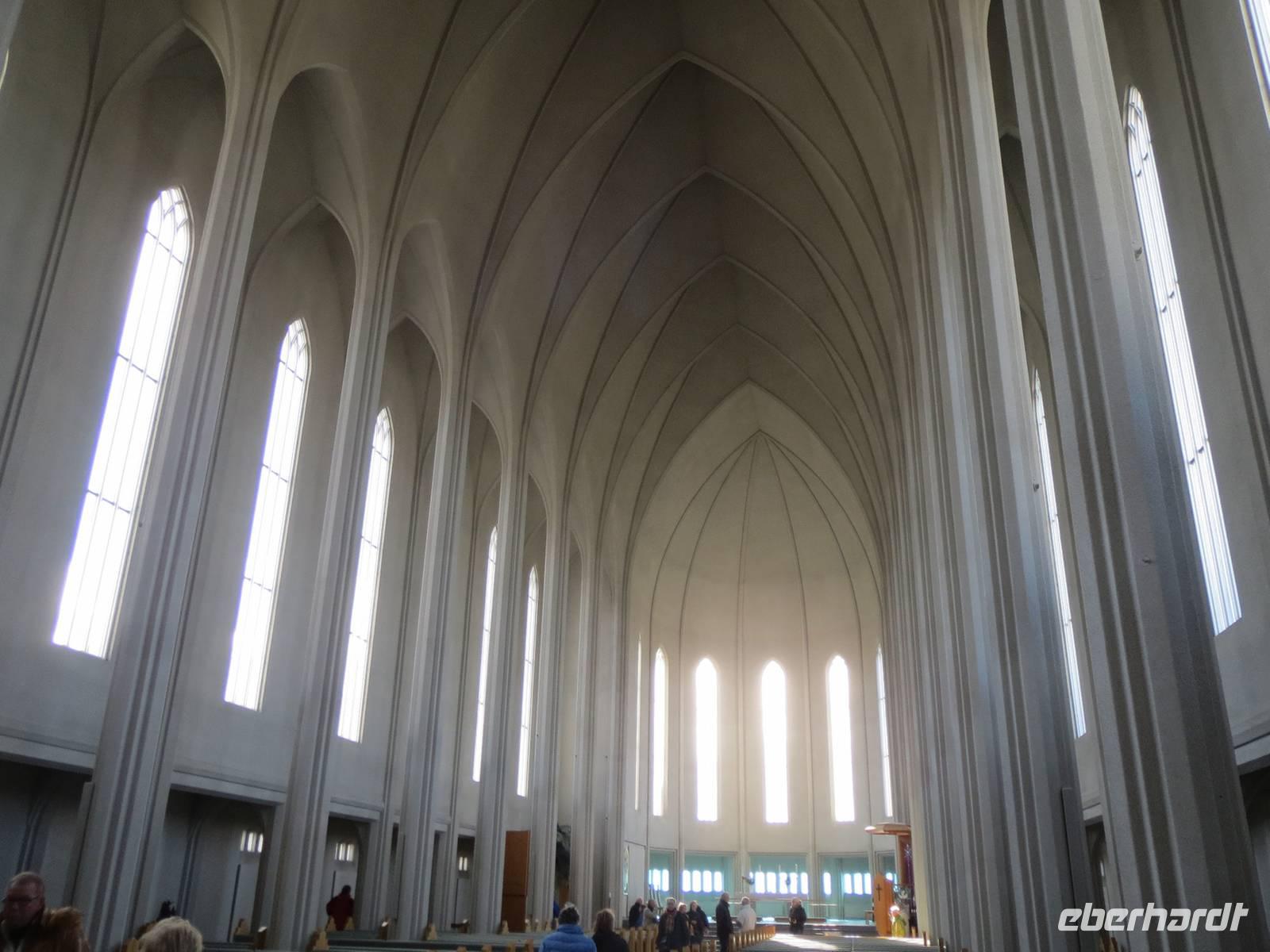 Unsere heutige Stadtrundfahrt begann am Hafen in der Nähe des Hotels. Danach fuhren wir vorbei am Freilichtmuseum in den zweiten Hafen von Reykjavík, wo u. a. die Kreuzfahrschiffe anlegen. Am Höfdi hatten wir nur einen kurzen Halt, der Wind blies so sehr, dass man sich kaum auf den Füßen halten konnte. Dieses Gebäude wurde 1909 im Auftrag der französischen Regierung für den französischen Konsul erbaut und 1958 von der Stadt Reykjavík gekauft. In dem Gebäude fand vom 10. bis 12. Oktober 1986 ein Gipfeltreffen zwischen US-Präsident Ronald Reagan und Michail Gorbatschow, Generalsekretär des Zentralkomitees der Kommunistischen Partei der Sowjetunion, statt. Am Wikinger-Schiff-Denkmal in Reykjavík legten wir einen kurzen Fotostopp ein. Die 1948 geweihte Hallgrímskirche durften wir ebenfalls besichtigen. Die Kirche wurde nach dem isländischen Kirchenlied-Dichter Hallgrímur Pétursson benannt. Auffallend ist die Ähnlichkeit der Betonpfeiler mit Basaltsäulen, einem gängigen Motiv der isländischen Landschaft. Die weiße Farbe soll an die Gletscher erinnern. Im Nationalmuseum von Reykjavík bestaunten wir die über 2.000 Ausstellungsstücke. Das Konzert- und Konferenzhaus „Harpa" konnten wir bei einem kleinen Rundgang kennenlernen. Aufgrund des Wetters musste die Walsafari ausfallen und jeder konnte seinen Nachmittag individuell gestalten.