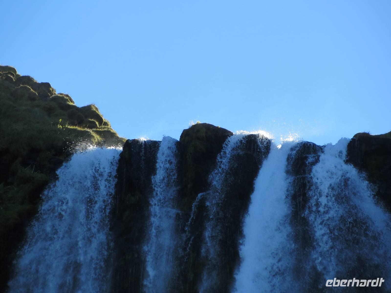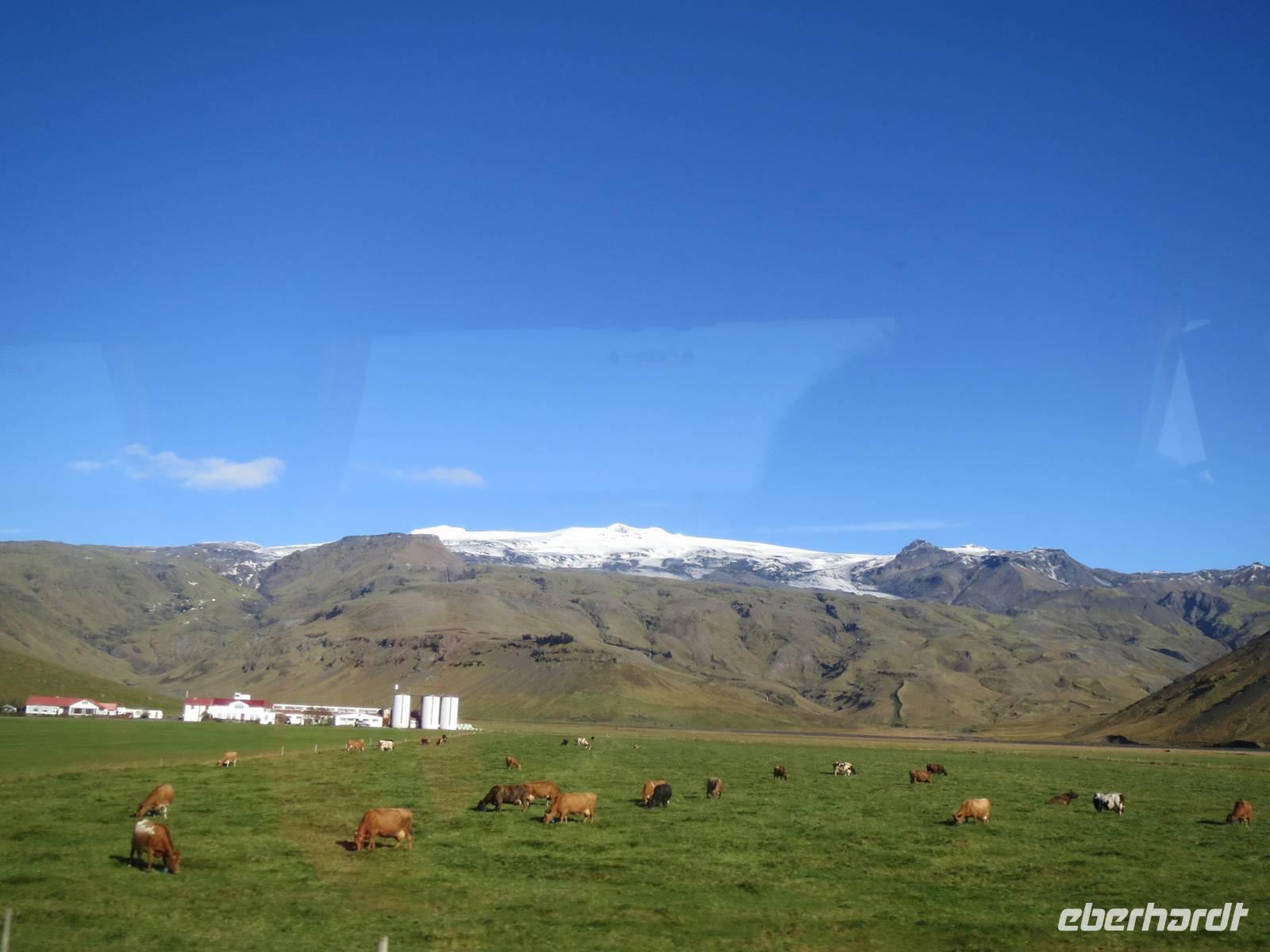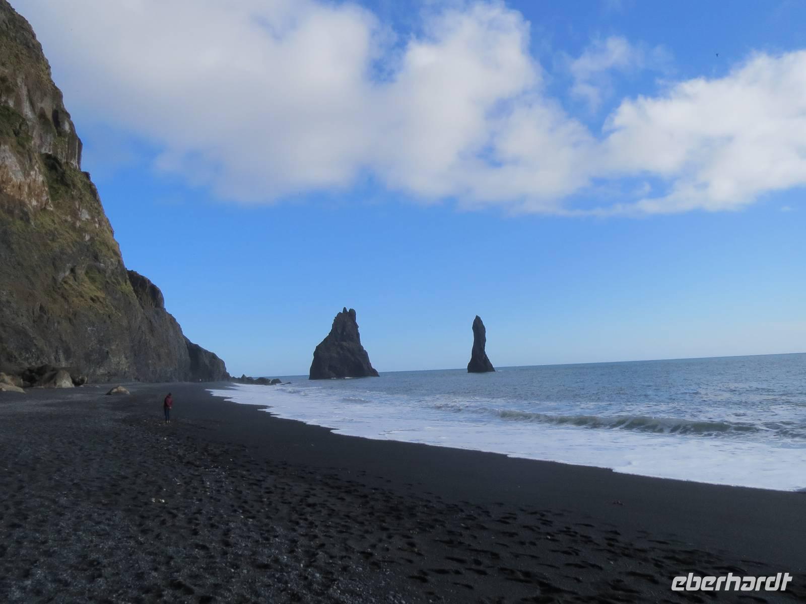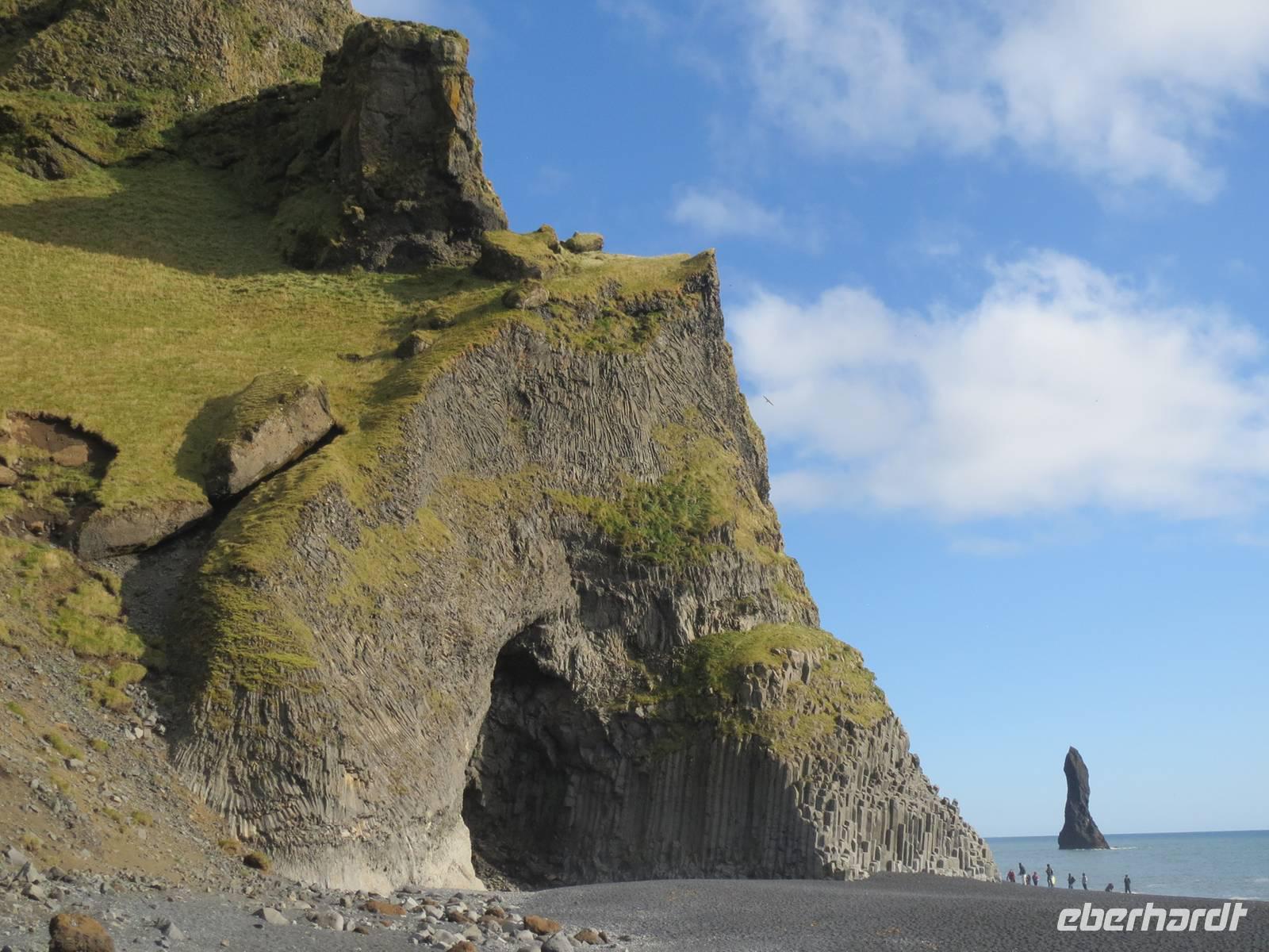 Der heutige Tag führte uns an die abenteuerliche Südküste von Reykjavík. Zunächst konnten wir an diesem Tag die noch tätigen Vulkane Hekla und Katla sehen, wie sie in der sagenhaften Landschaft eingebettet sind. Als ersten Wasserfall sahen wir an diesem Tag den Seljalandsfoss. Dieser Wasserfall liegt unterhalb des Eyjafjallajökull und stürzt sich 66 Meter in die Tiefe. Im Skógar-Museum konnten wir sehen, wie die Menschen früher gelebt und gearbeitet haben. Danach bestaunten wir den nächsten Wasserfall: Skógafoss. Dieser stürzt sich eine ehemalige Steilküste über eine Breite von 25 Meter 60 Meter in die Tiefe. Unsere Mittagspause verlebten wir im Küstenort Vík. Bei einem Spaziergang am tiefschwarzen Strand konnten wir noch einmal die Seele baumeln lassen. In der Ferne konnten wir kurz darauf die sagenumwobenen Felsnadeln „Reynisdrangar" bestaunen. Bei einer kleinen Gletscherwanderung wurden uns die Naturgewalten nochmals bewusst. Am Abend sahen wir im Besucherzenrtum der Farm Thoervaldseyri einen Film über den Vulkan Eyjafjallajökull, der 2010 die ganze Welt in Atem hielt. Abschließend genossen wir im Hotel unseren letzten gemeinsamen Abend bei einem gemütlichen Abendessen mit einem Glas Wein.