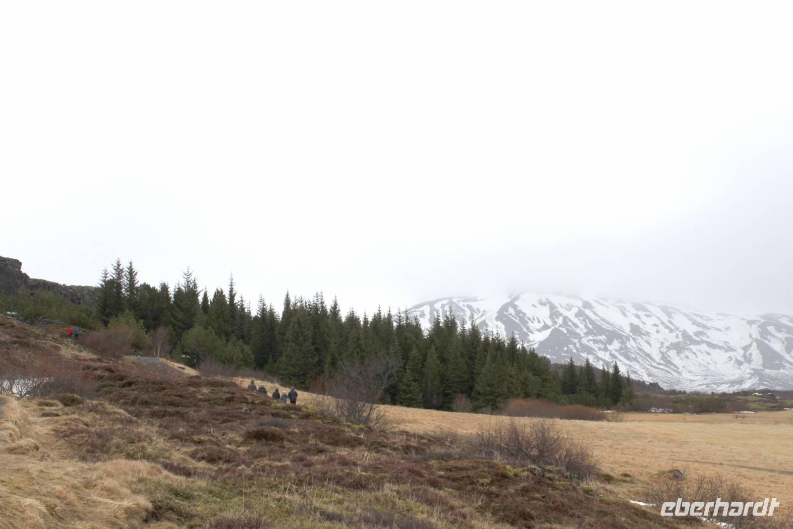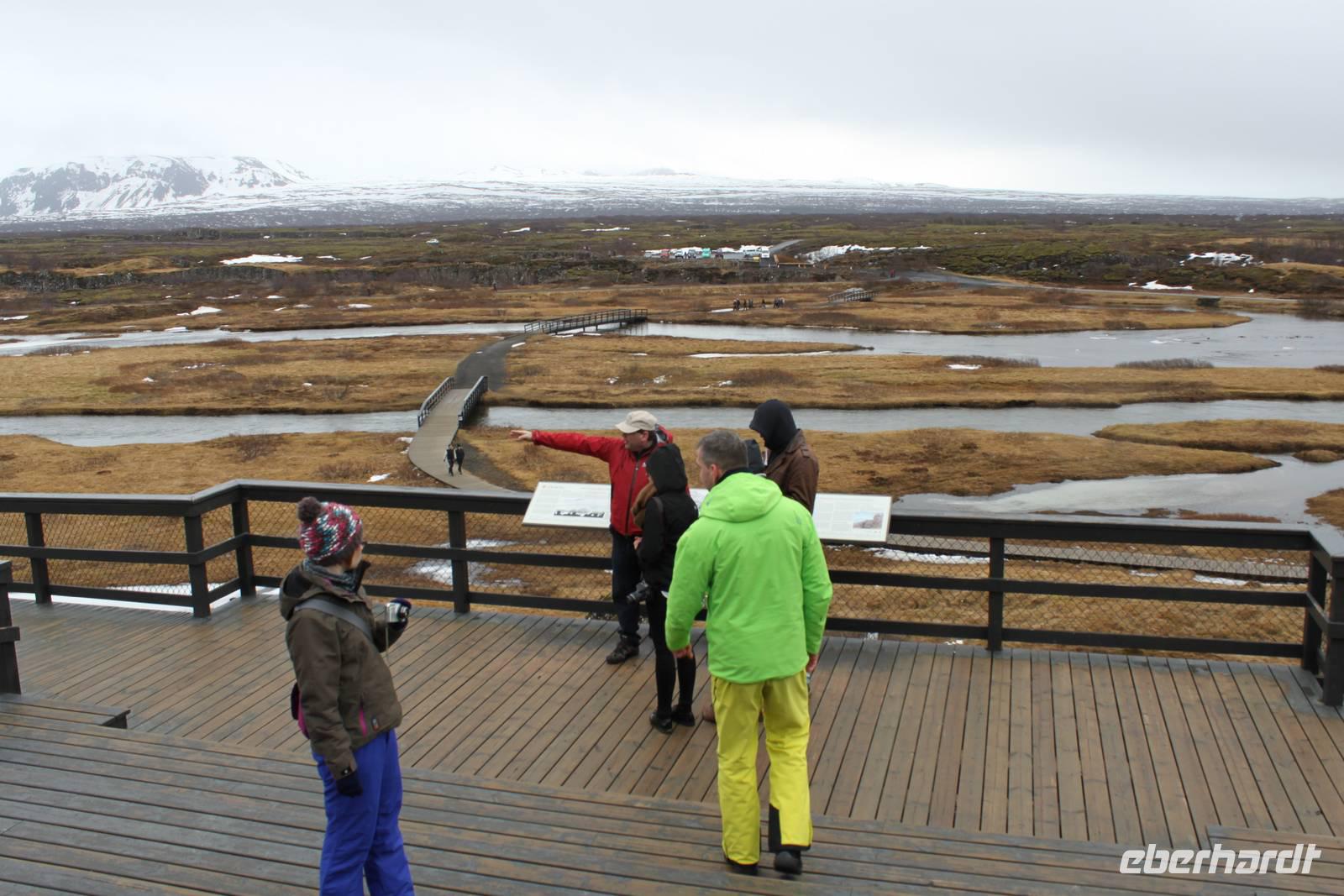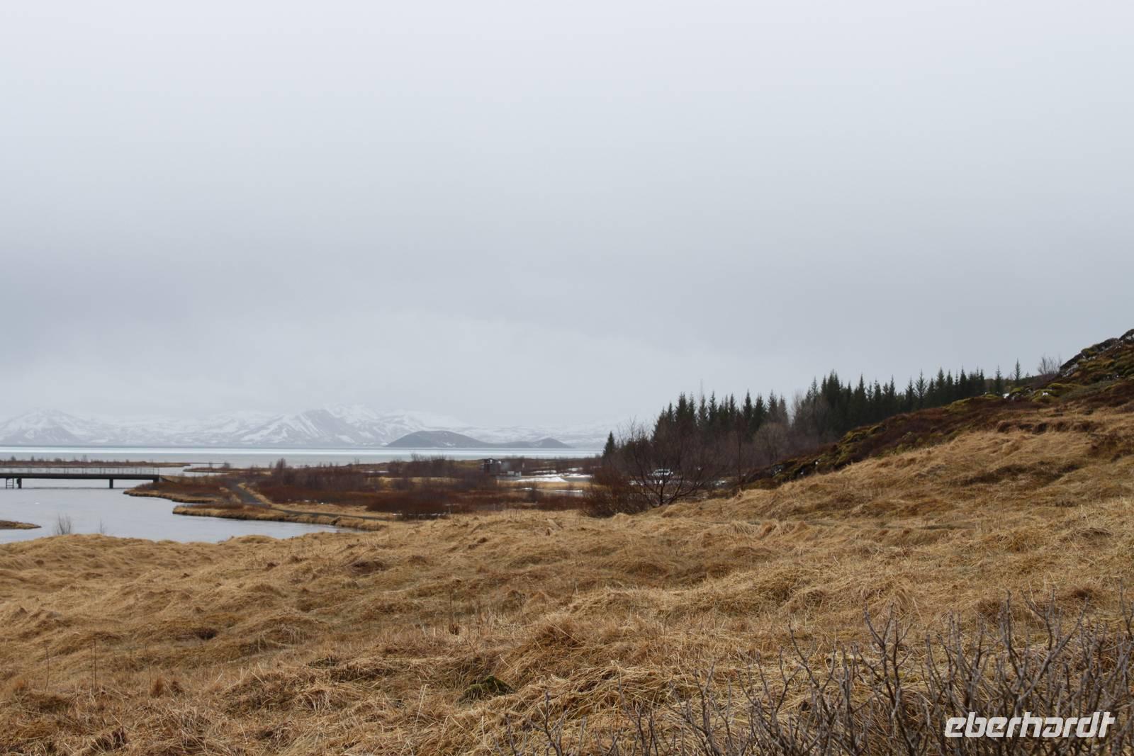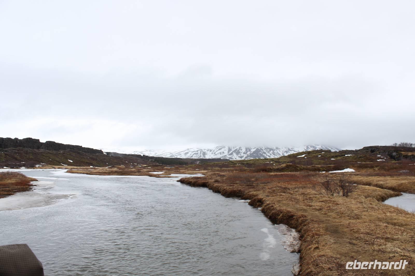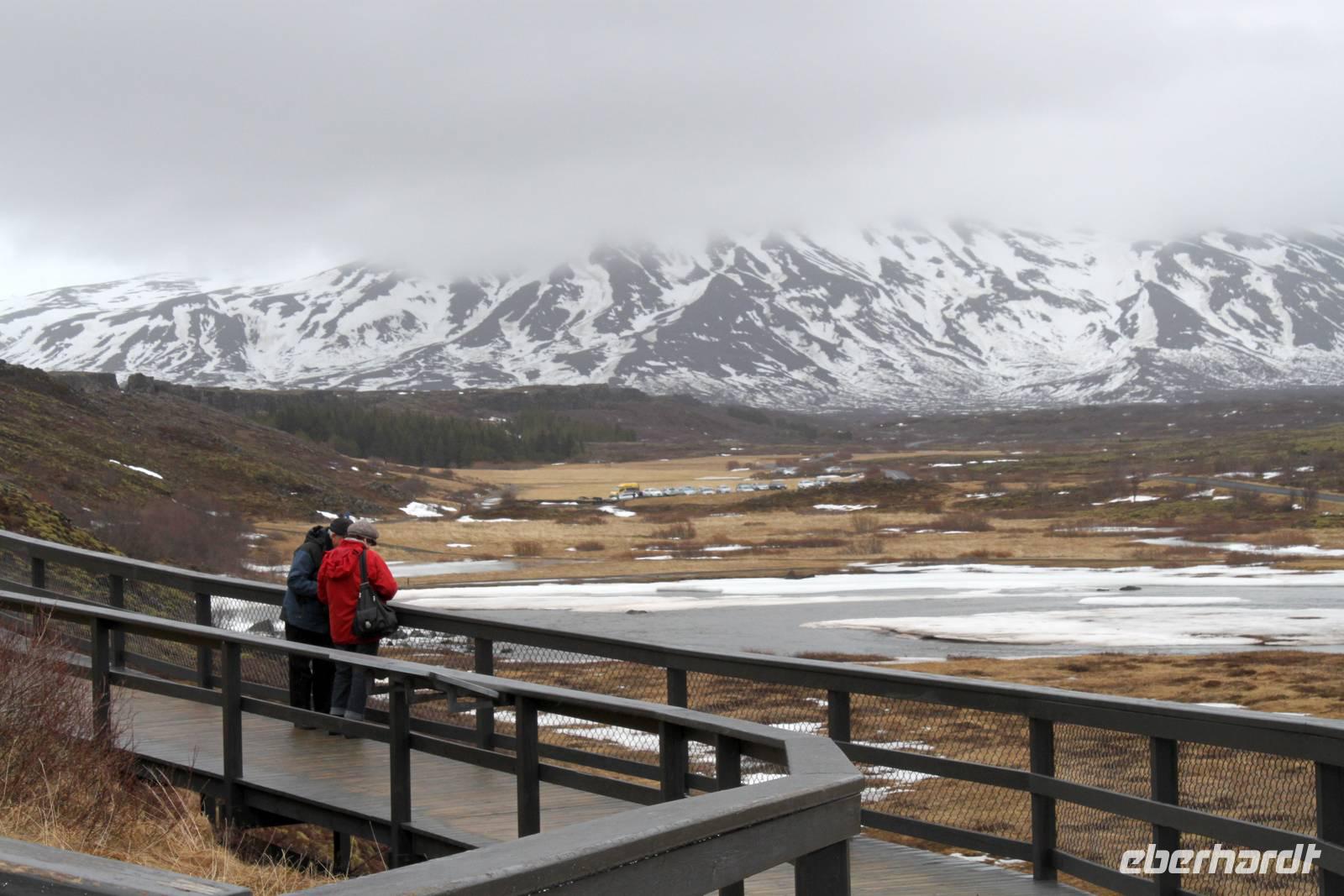 Zuerst hielten wir am Thingvallavatn bevor es uns in den Thingvellir Nationalpark zog. Hier treffen die eurasische und amerikanische Platte aufeinander und man kann die Ergebnisse des Auseinanderdriftens des Gesteins deutlich sehen.