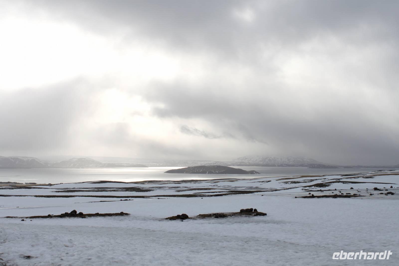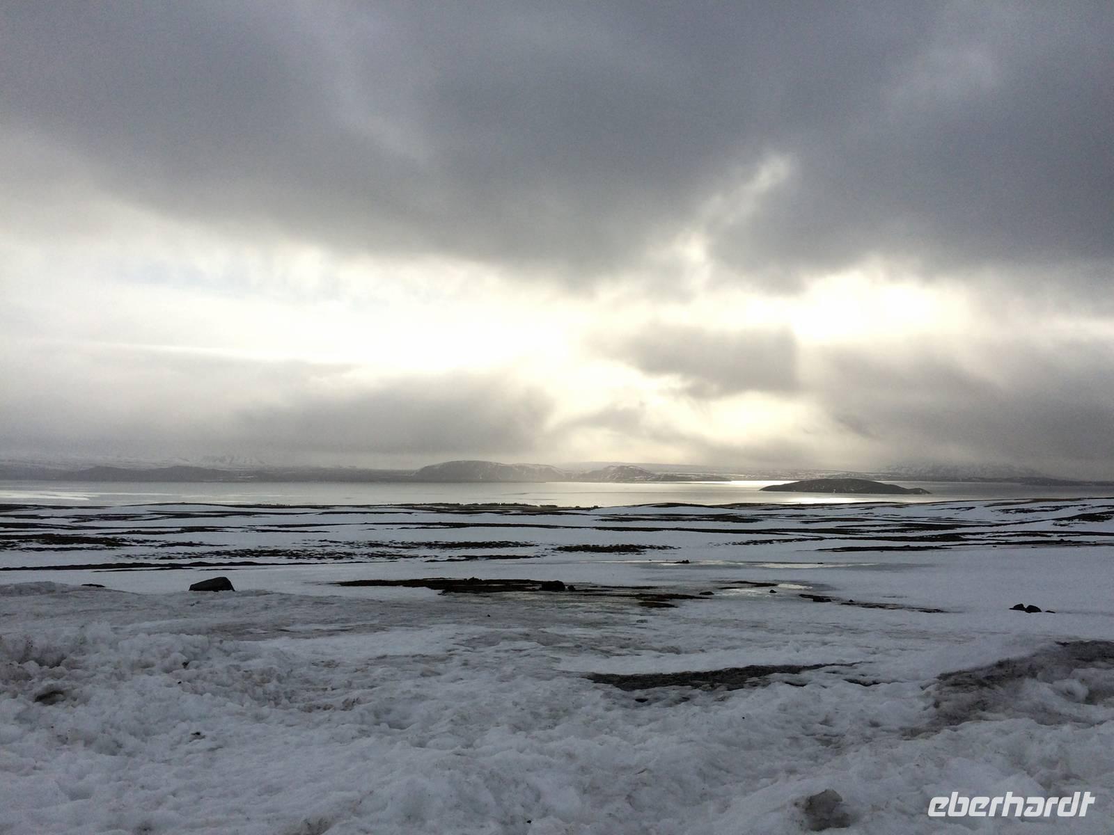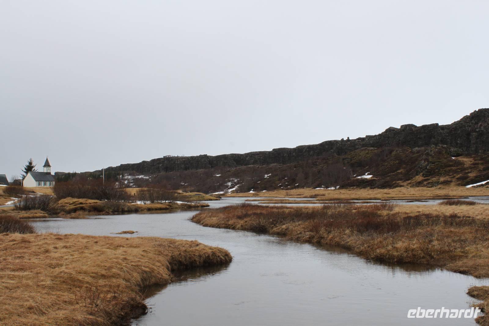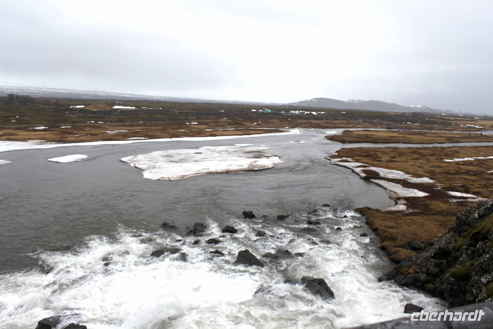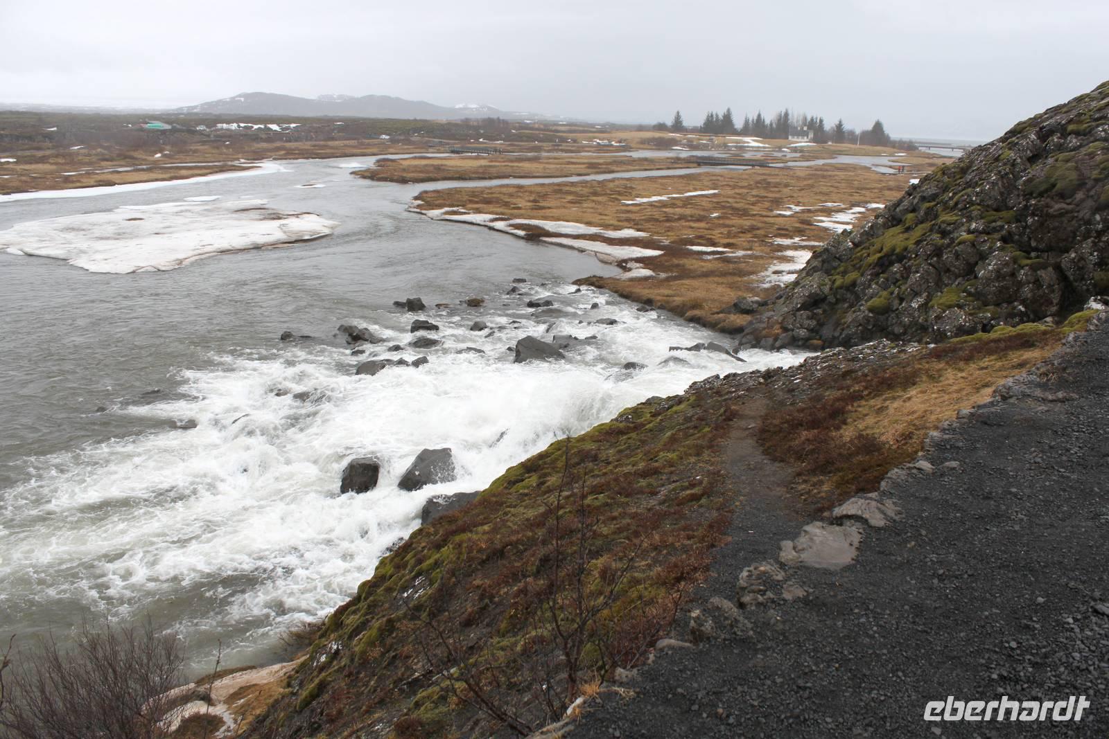 Zuerst hielten wir am Thingvallavatn bevor es uns in den Thingvellir Nationalpark zog. Hier treffen die eurasische und amerikanische Platte aufeinander und man kann die Ergebnisse des Auseinanderdriftens des Gesteins deutlich sehen.