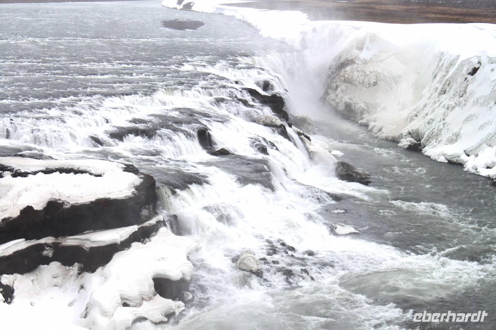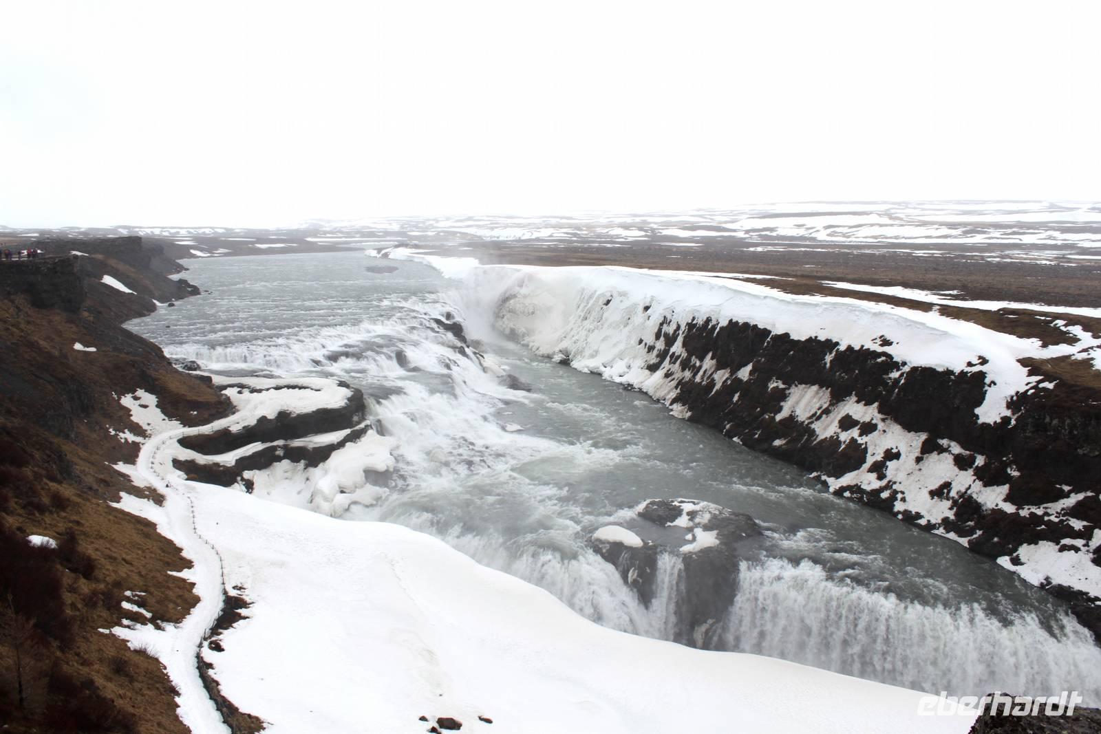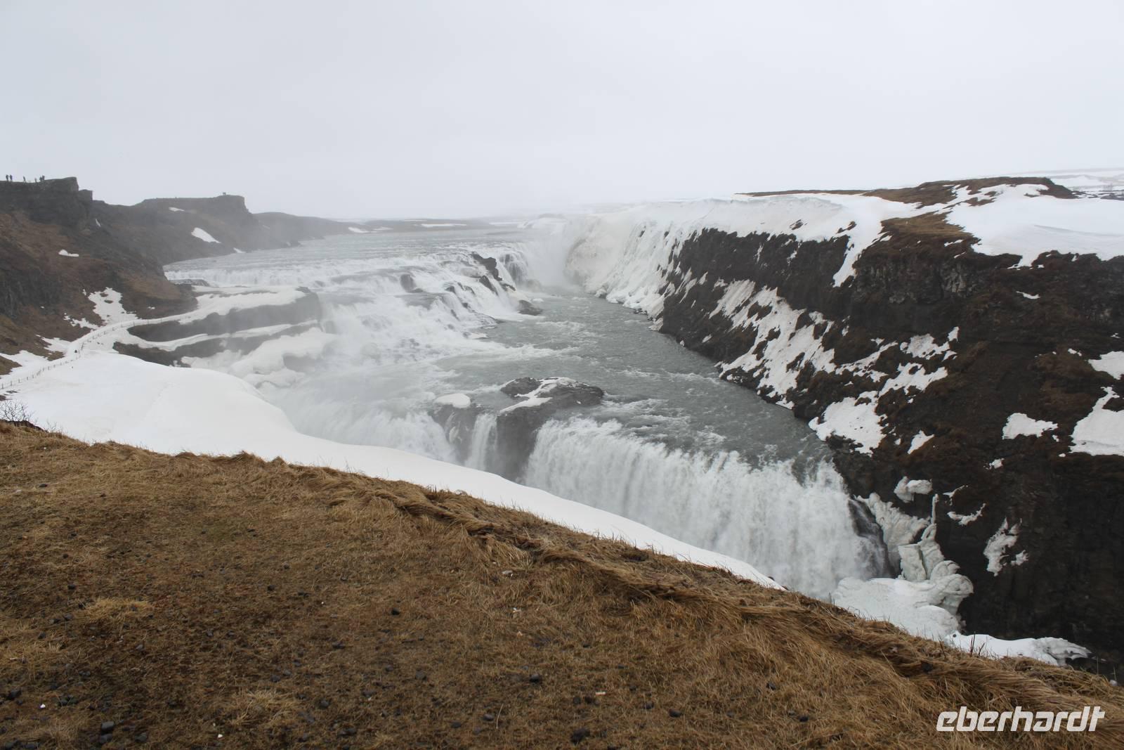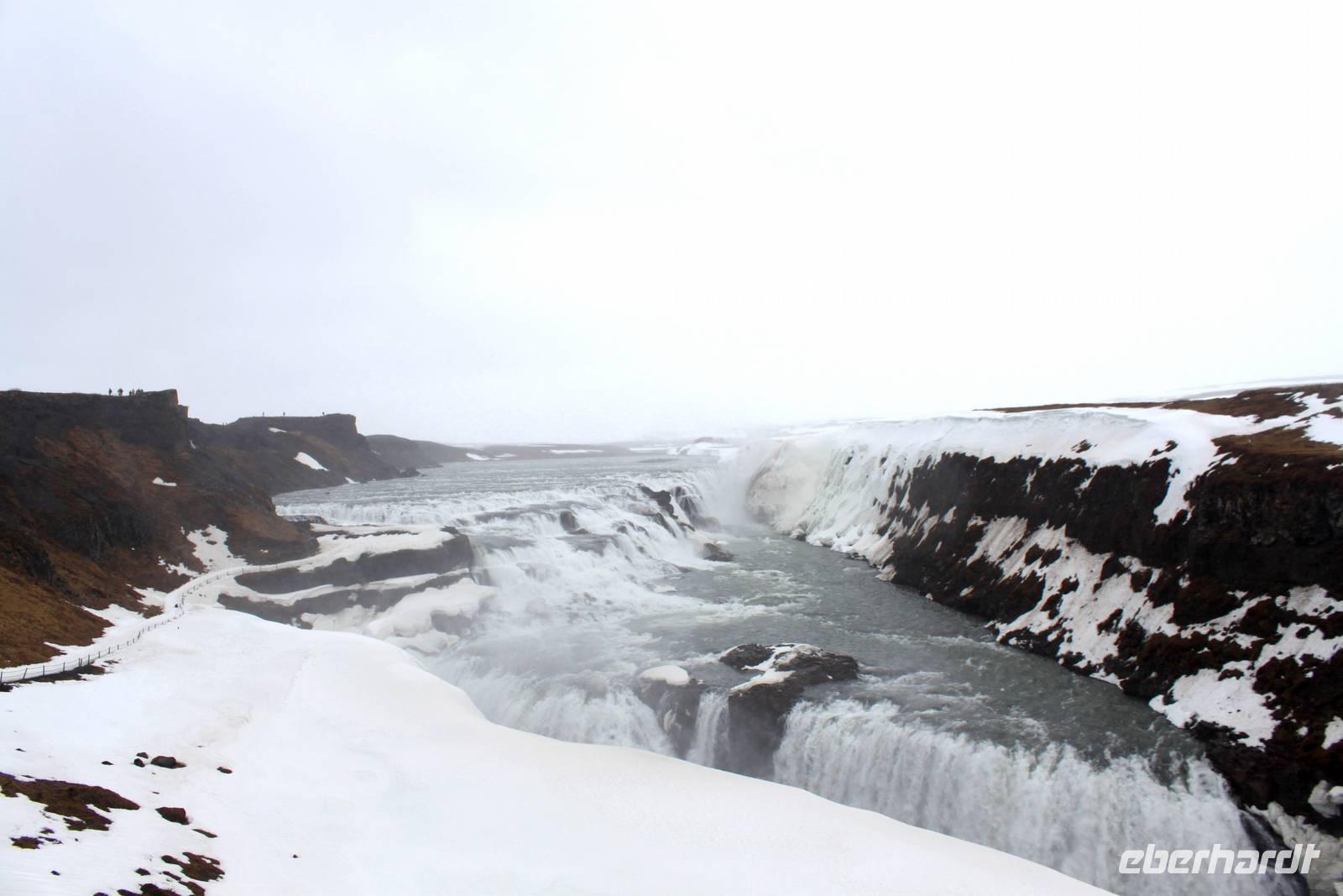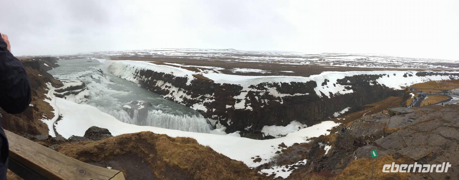 Weiter ging es vorbei an schönen Schneelandschaften zum Gullfoss. Der 32 Meter hohe Wasserfall wurde 1979 zum Naturschutzgebiet erklärt und wird von vielen als schönster Wasserfall des Landes bezeichnet.