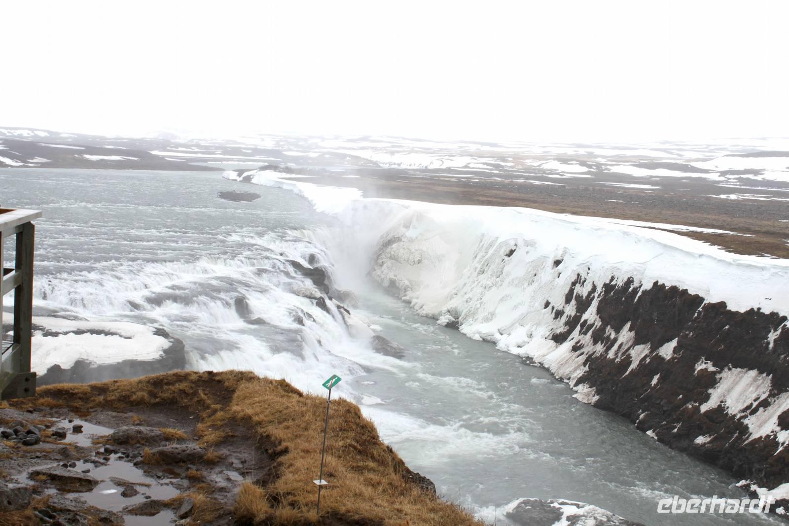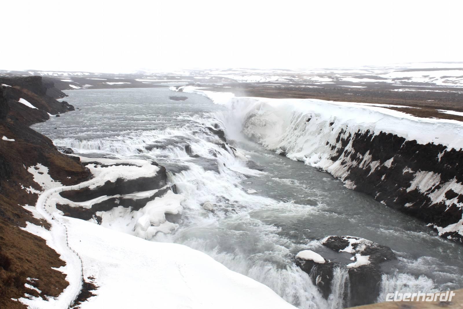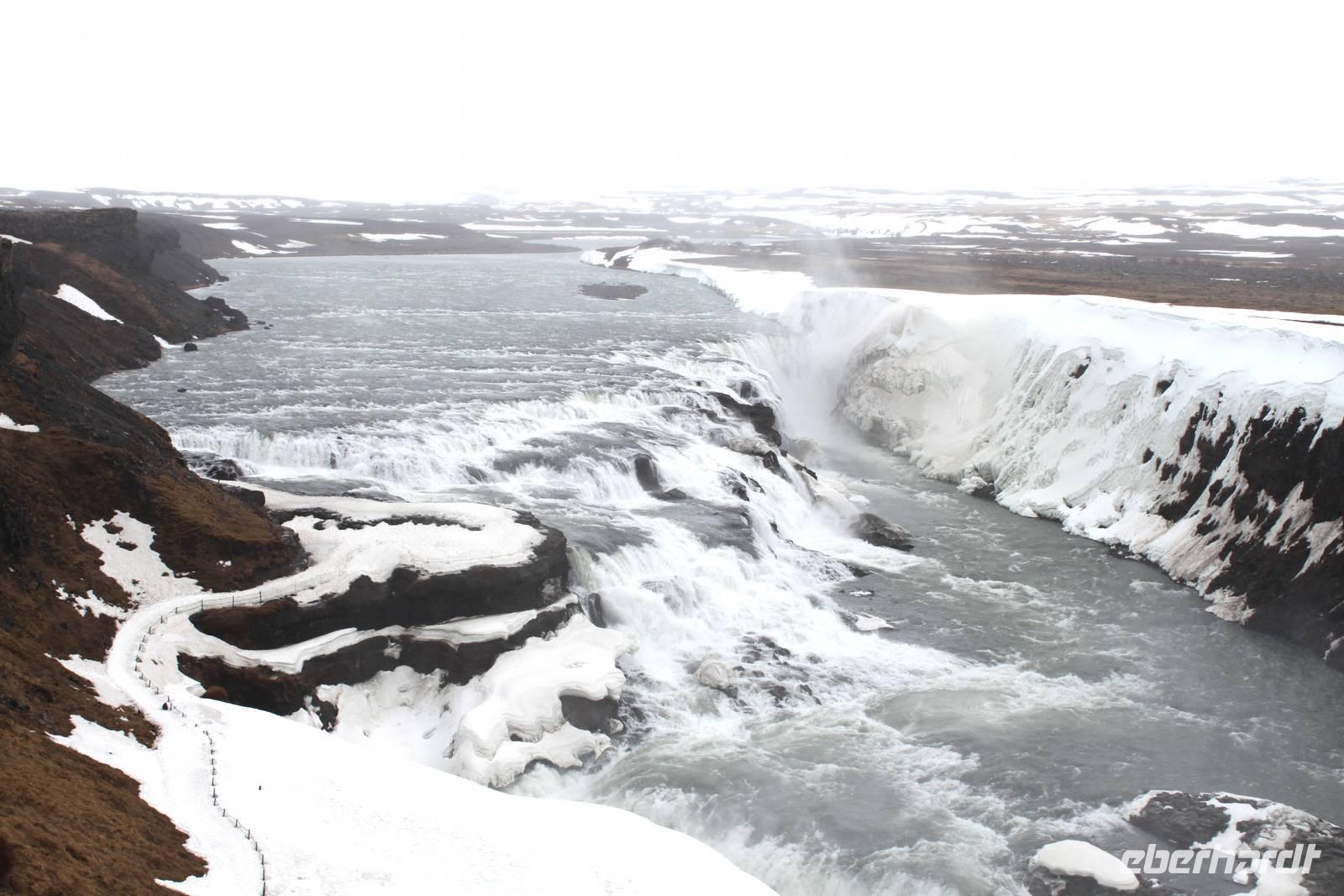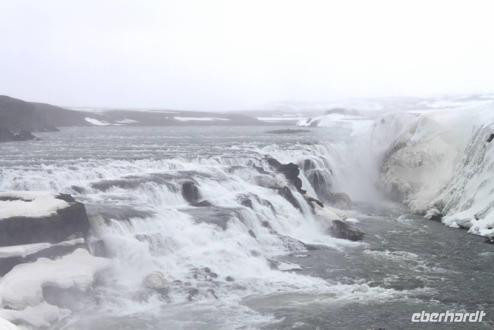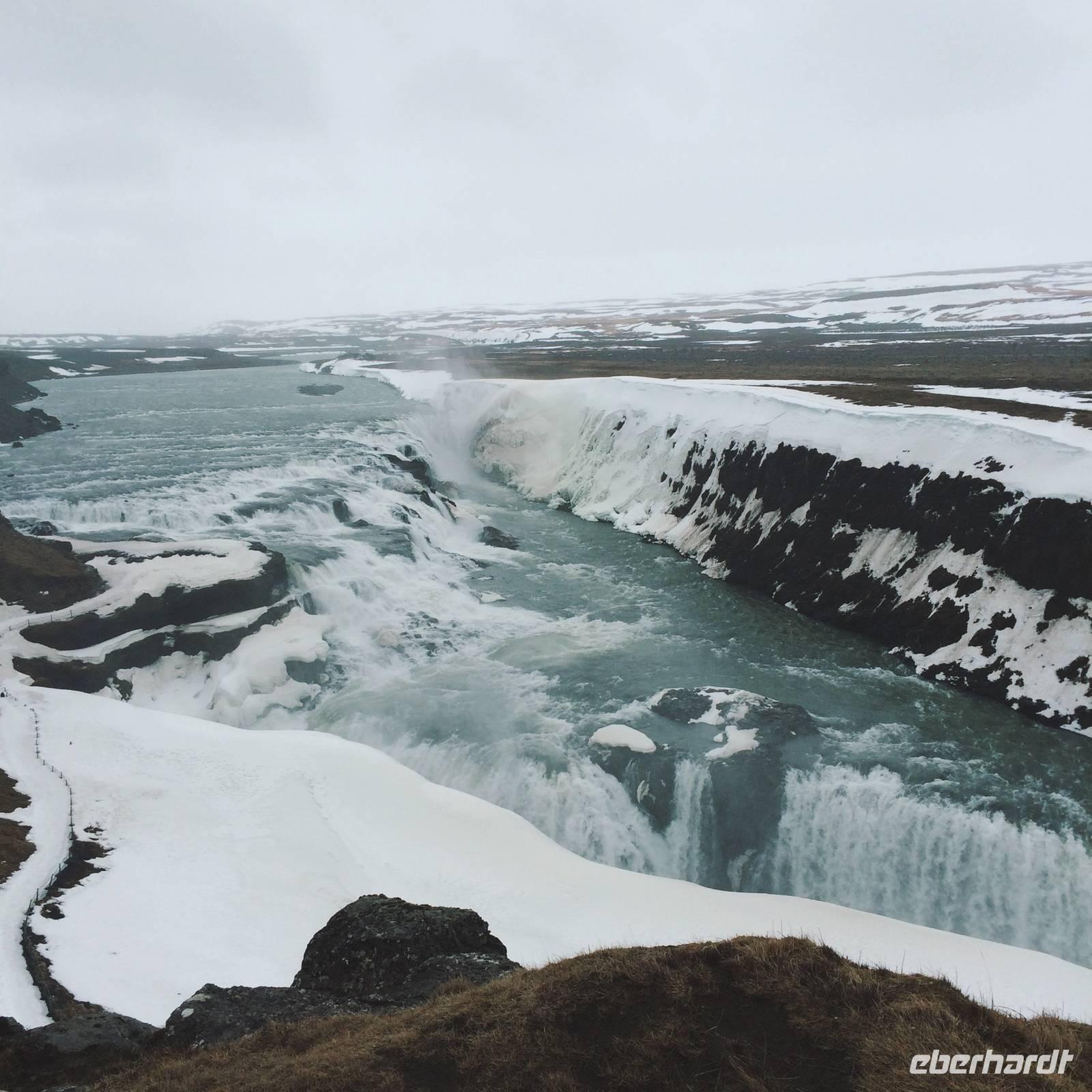 Weiter ging es vorbei an schönen Schneelandschaften zum Gullfoss. Der 32 Meter hohe Wasserfall wurde 1979 zum Naturschutzgebiet erklärt und wird von vielen als schönster Wasserfall des Landes bezeichnet.