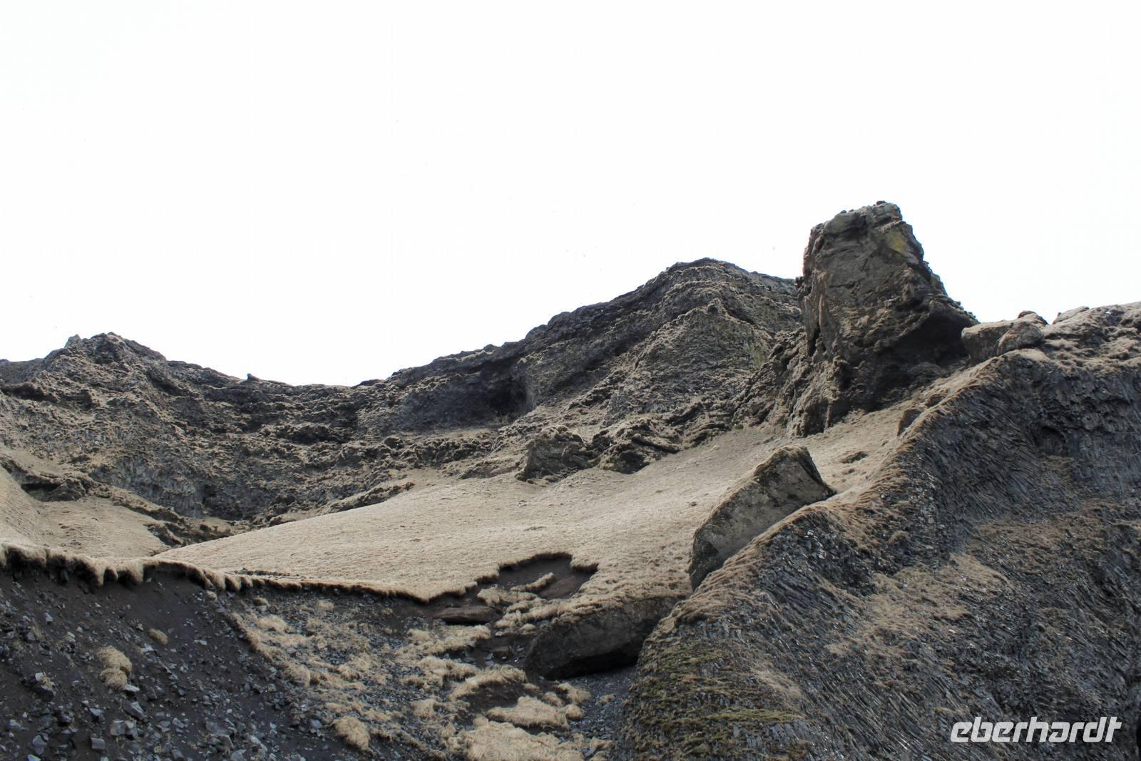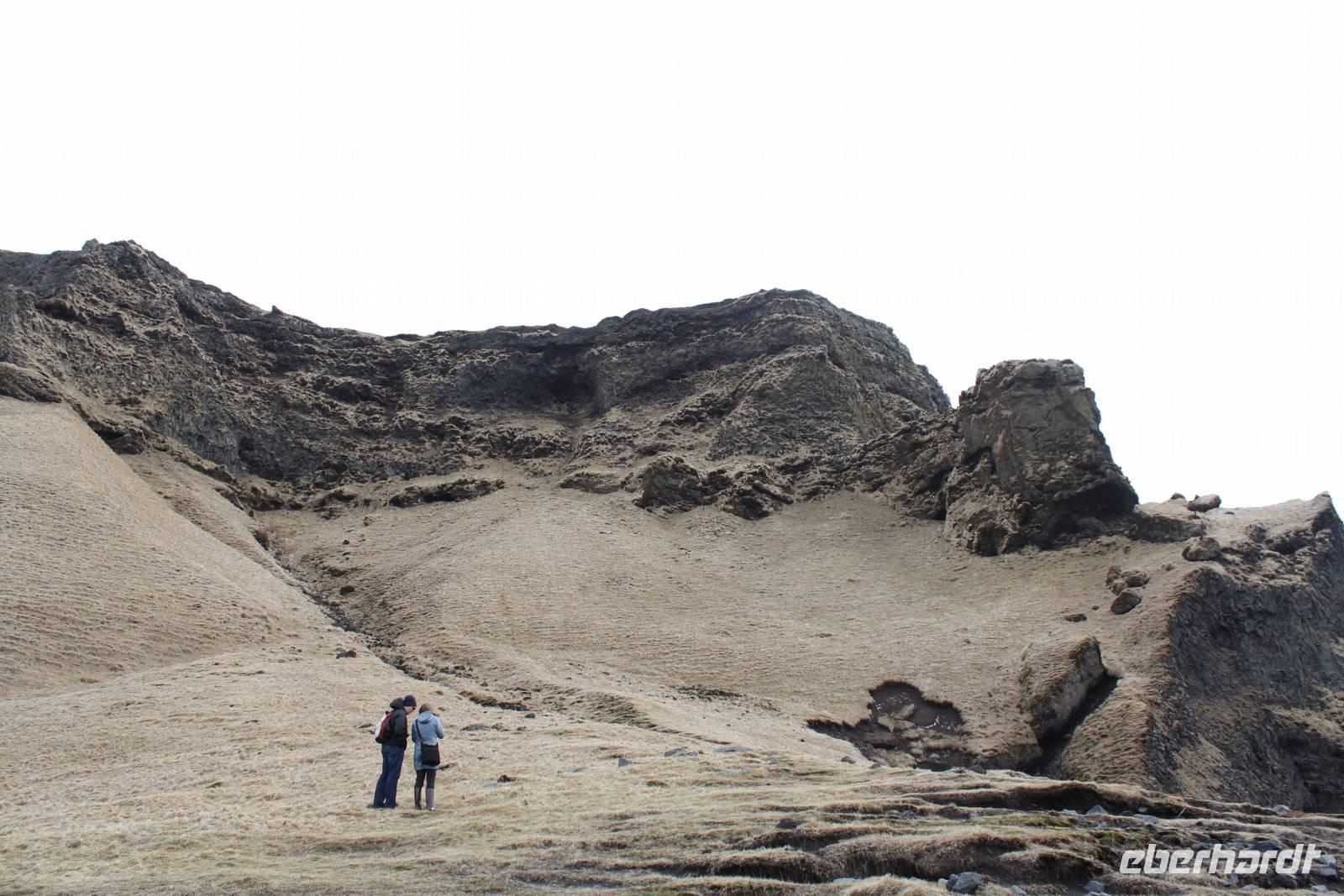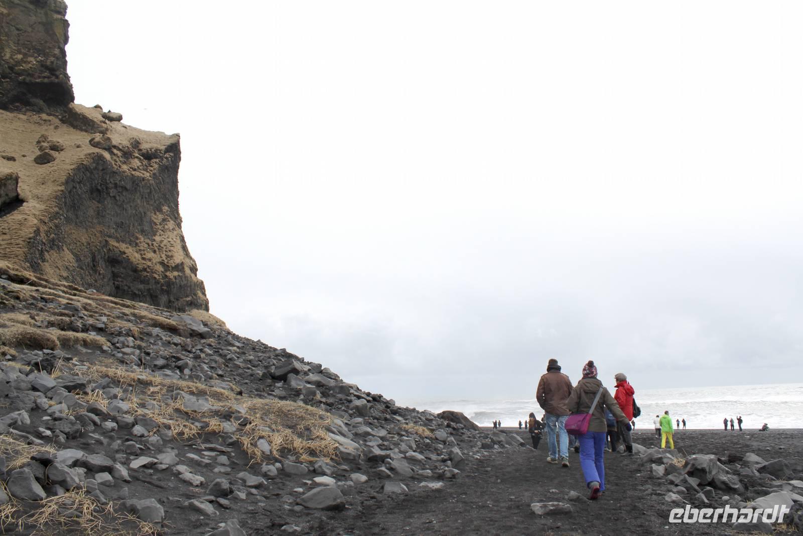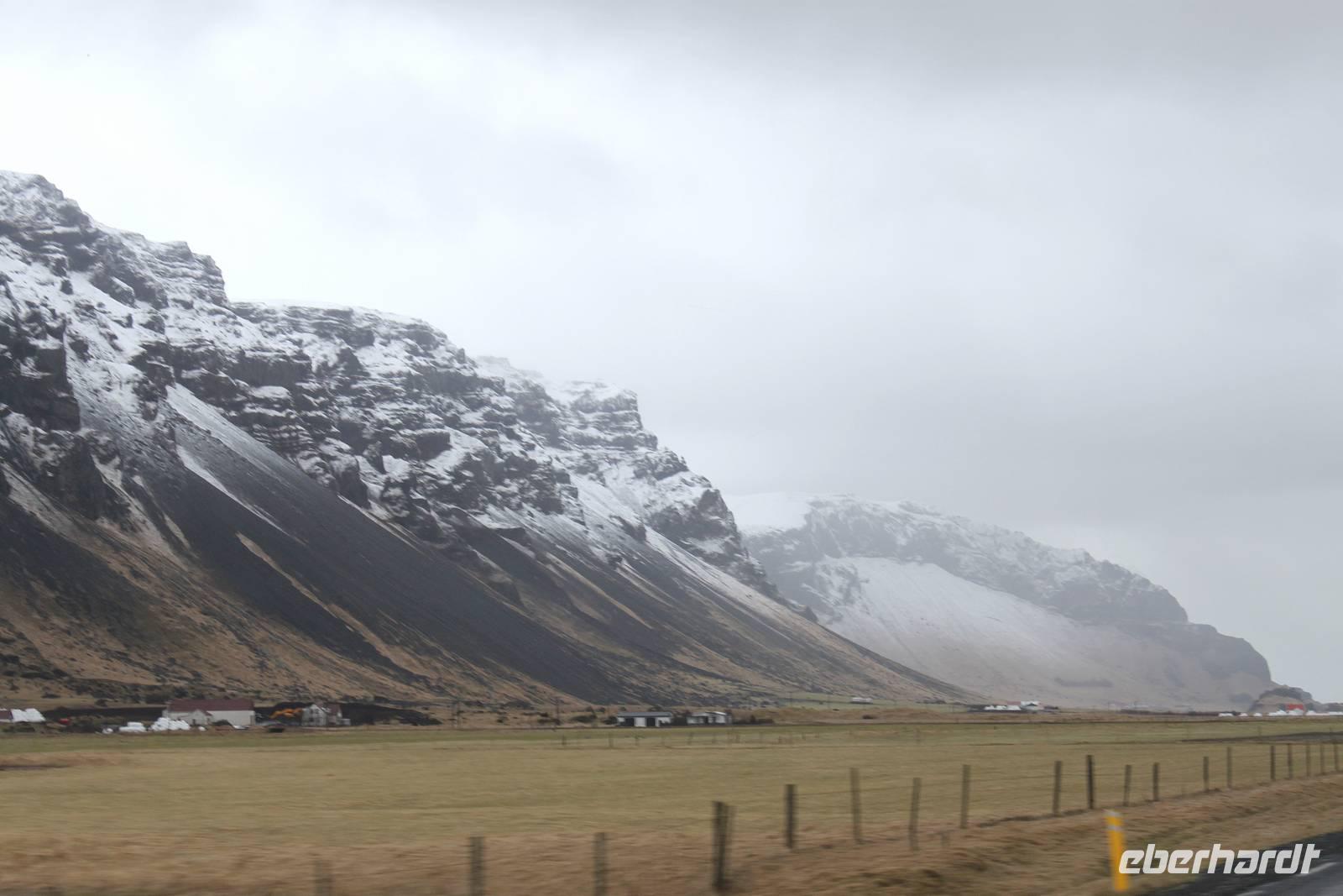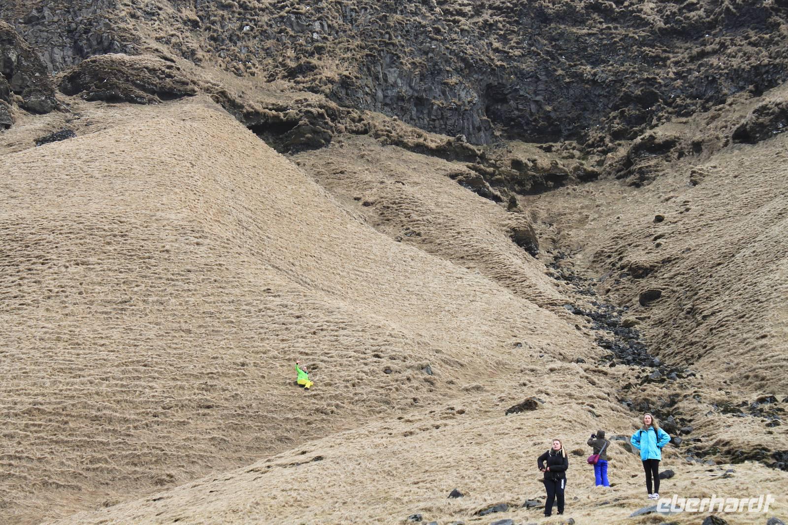 An diesem Tag besuchten wir Islands Südküste. Der Eyjafjallajökull, der 2010 für großes Aufsehen sorgte, war unser erstes Ziel für ein schnelles Foto. An einem Rastplatz habe ich vorher Trockenfisch gekauft, den wir auf der Fahrt zum Sólheimajökull probieren. Er schmeckt besser als gedacht, wird aber sich nicht unser Leibgericht. Der Sólheimajökull ist eine etwa zehn Kilometer lange Gletscherzunge die uns alle beeindruckt hat. Mittags hielten wir im kleinen Örtchen Vík und stärkten uns bevor es weiter zum schwarzen Sandstrand ging. Das Meer tobte und man musste darauf achten, dass man genügend Abstand zum unberechenbaren Wasser hielt. Der etwas andere Strand strotzte mit seinen hohen Felsen nur so vor Schönheit.