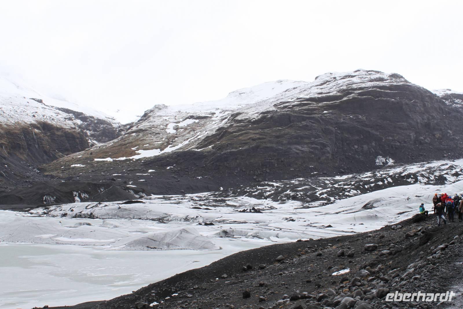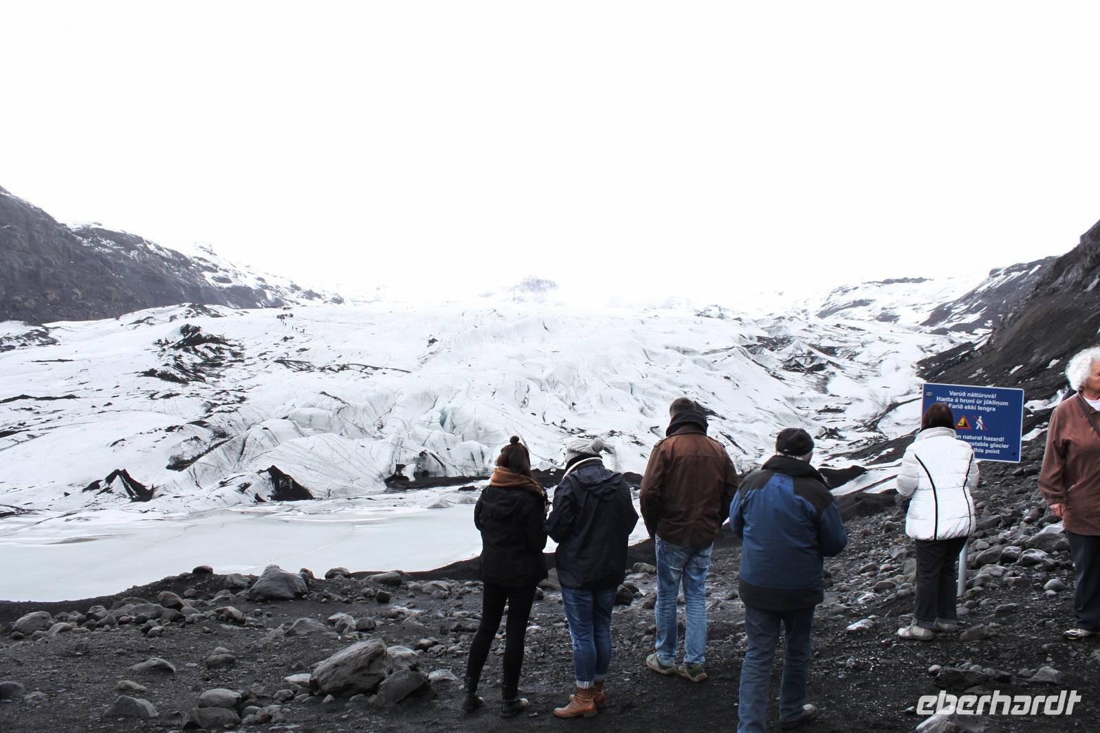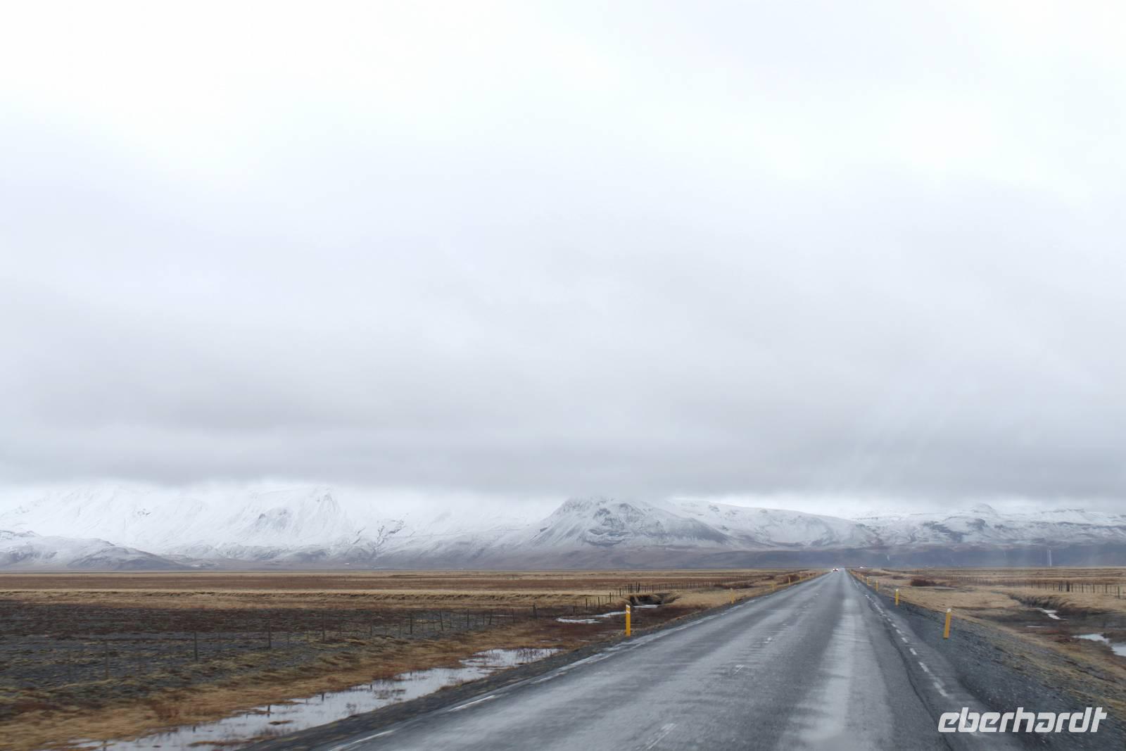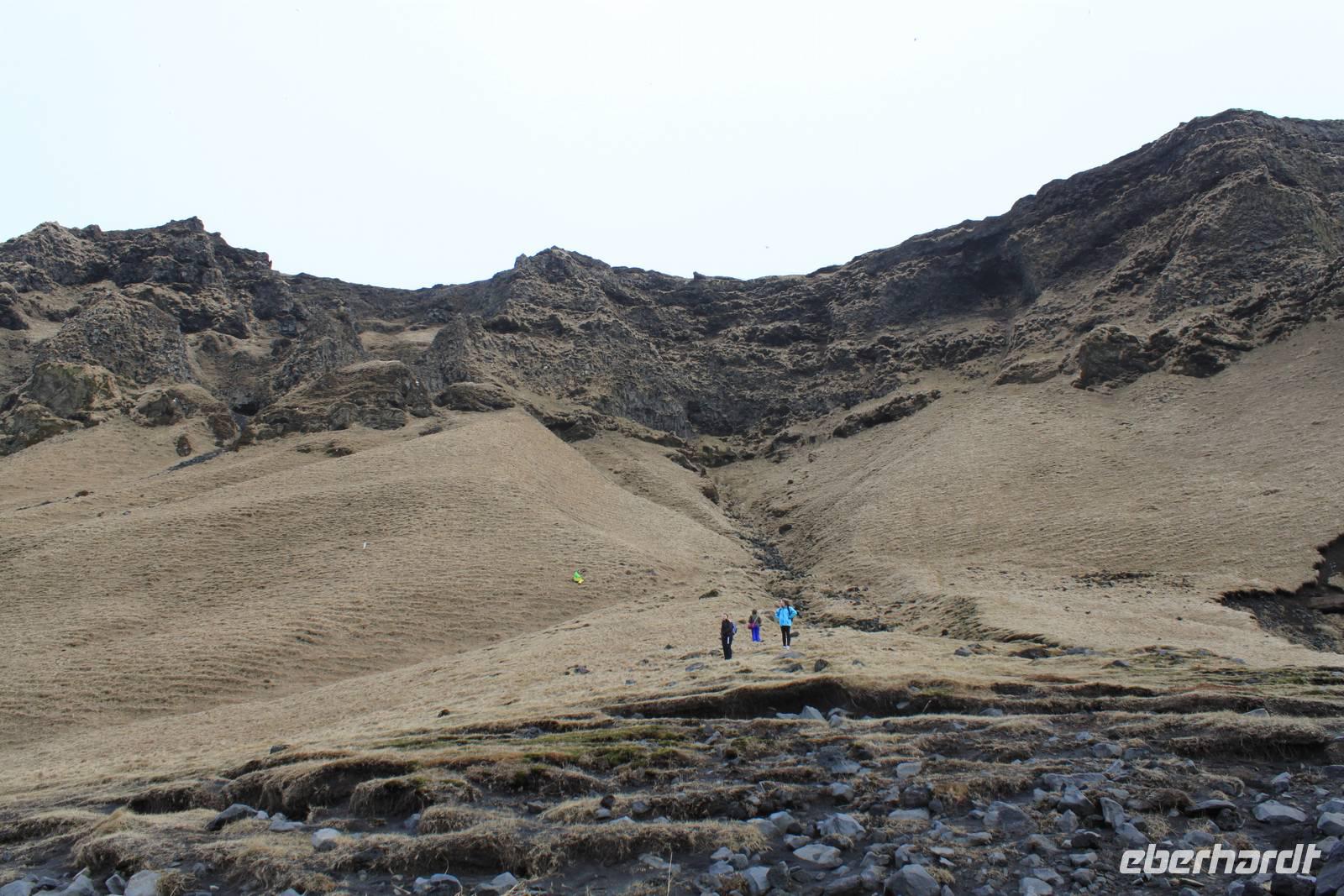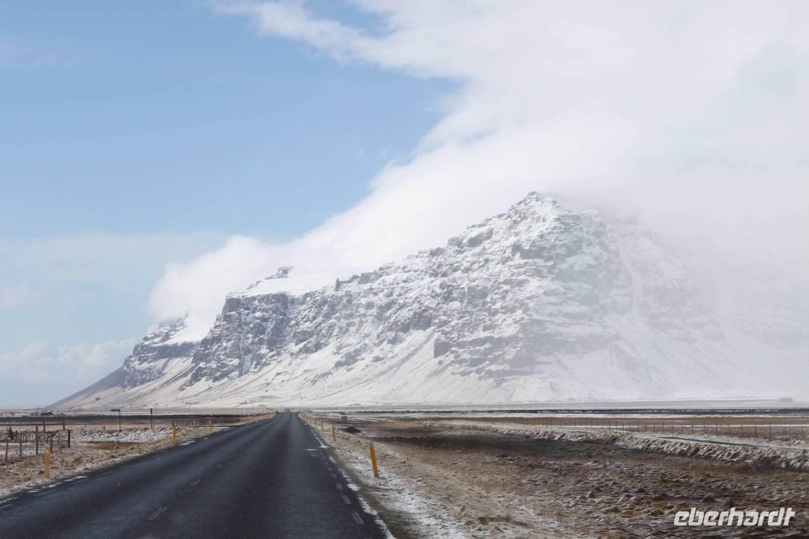 An diesem Tag besuchten wir Islands Südküste. Der Eyjafjallajökull, der 2010 für großes Aufsehen sorgte, war unser erstes Ziel für ein schnelles Foto. An einem Rastplatz habe ich vorher Trockenfisch gekauft, den wir auf der Fahrt zum Sólheimajökull probieren. Er schmeckt besser als gedacht, wird aber sich nicht unser Leibgericht. Der Sólheimajökull ist eine etwa zehn Kilometer lange Gletscherzunge die uns alle beeindruckt hat. Mittags hielten wir im kleinen Örtchen Vík und stärkten uns bevor es weiter zum schwarzen Sandstrand ging. Das Meer tobte und man musste darauf achten, dass man genügend Abstand zum unberechenbaren Wasser hielt. Der etwas andere Strand strotzte mit seinen hohen Felsen nur so vor Schönheit.