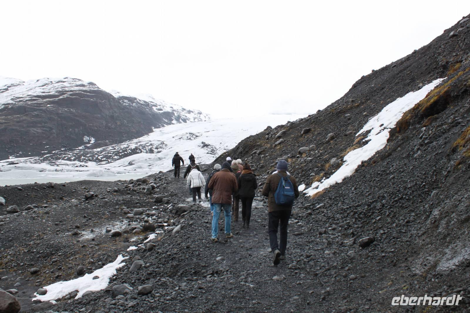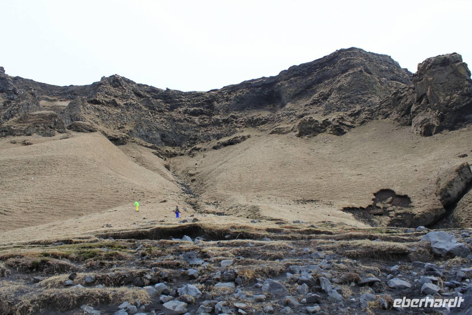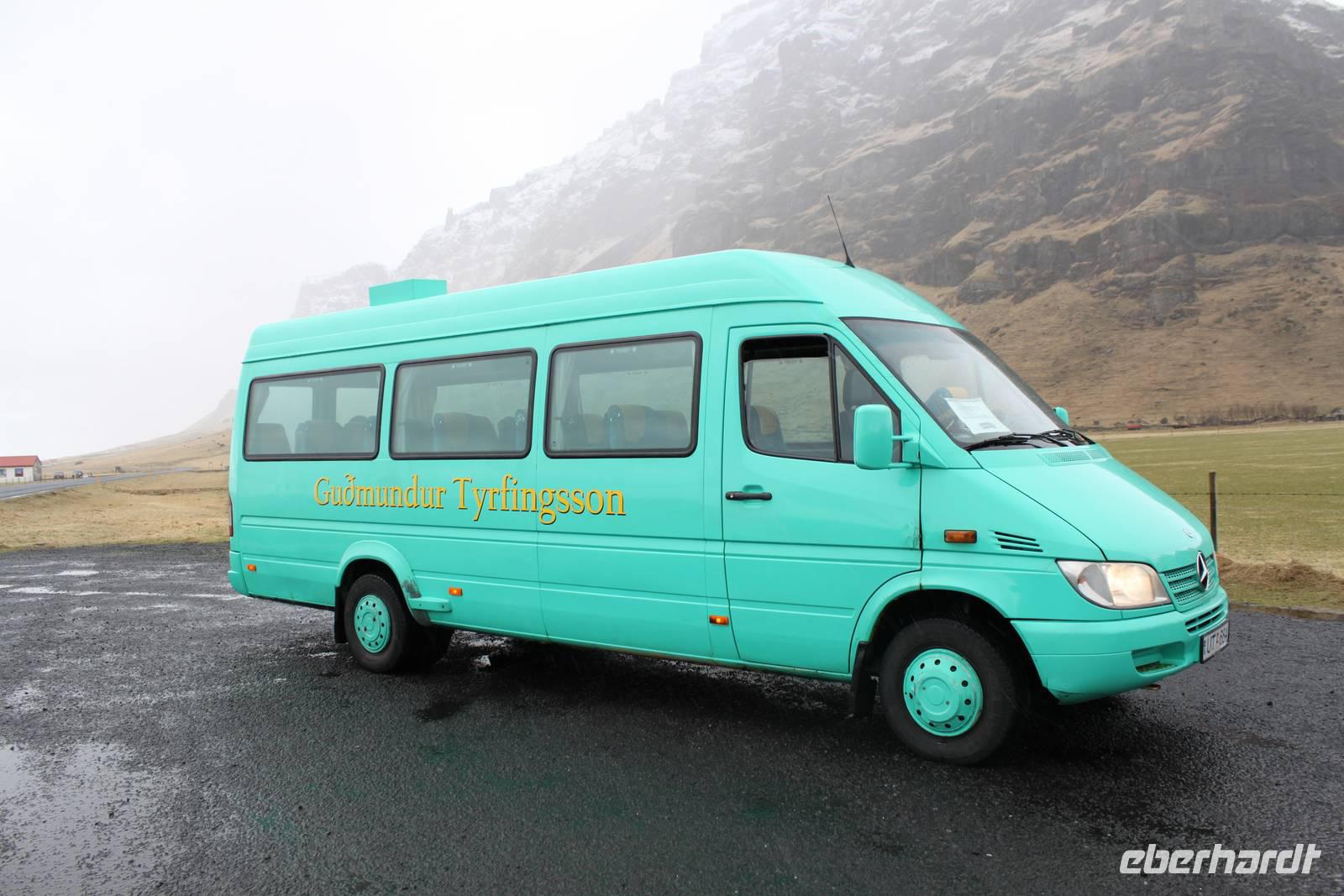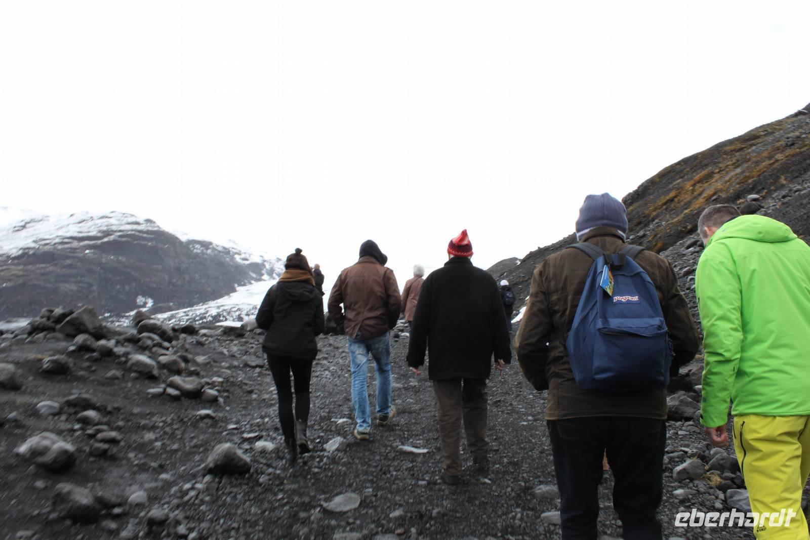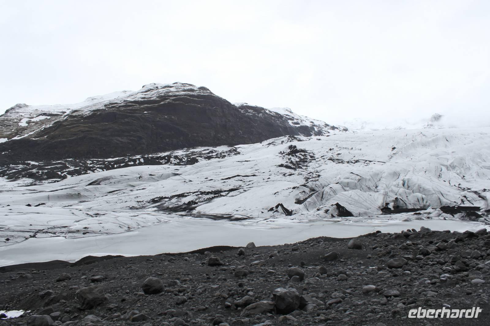 An diesem Tag besuchten wir Islands Südküste. Der Eyjafjallajökull, der 2010 für großes Aufsehen sorgte, war unser erstes Ziel für ein schnelles Foto. An einem Rastplatz habe ich vorher Trockenfisch gekauft, den wir auf der Fahrt zum Sólheimajökull probieren. Er schmeckt besser als gedacht, wird aber sich nicht unser Leibgericht. Der Sólheimajökull ist eine etwa zehn Kilometer lange Gletscherzunge die uns alle beeindruckt hat. Mittags hielten wir im kleinen Örtchen Vík und stärkten uns bevor es weiter zum schwarzen Sandstrand ging. Das Meer tobte und man musste darauf achten, dass man genügend Abstand zum unberechenbaren Wasser hielt. Der etwas andere Strand strotzte mit seinen hohen Felsen nur so vor Schönheit.
