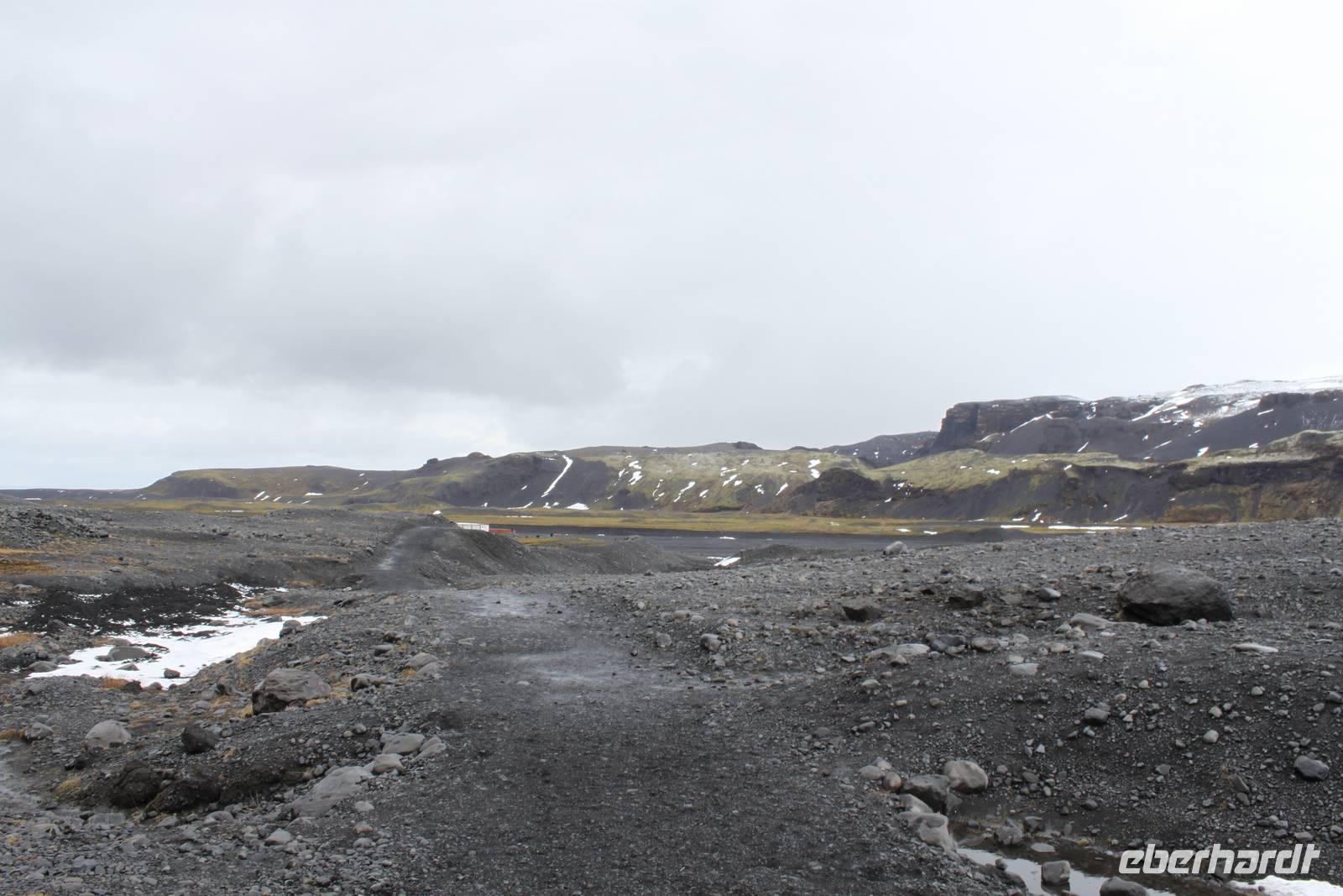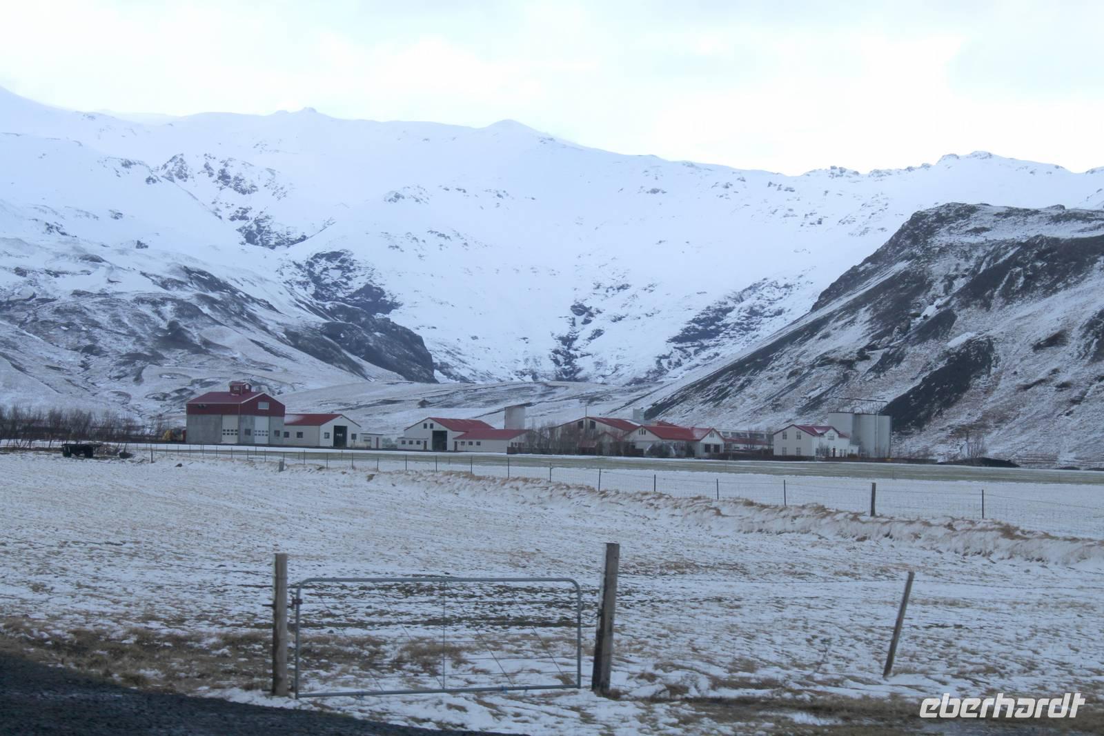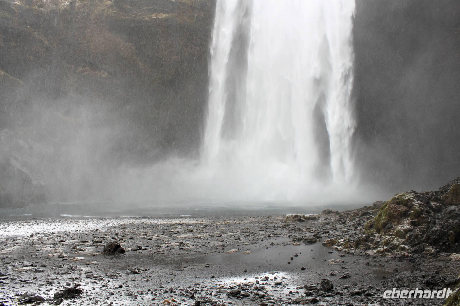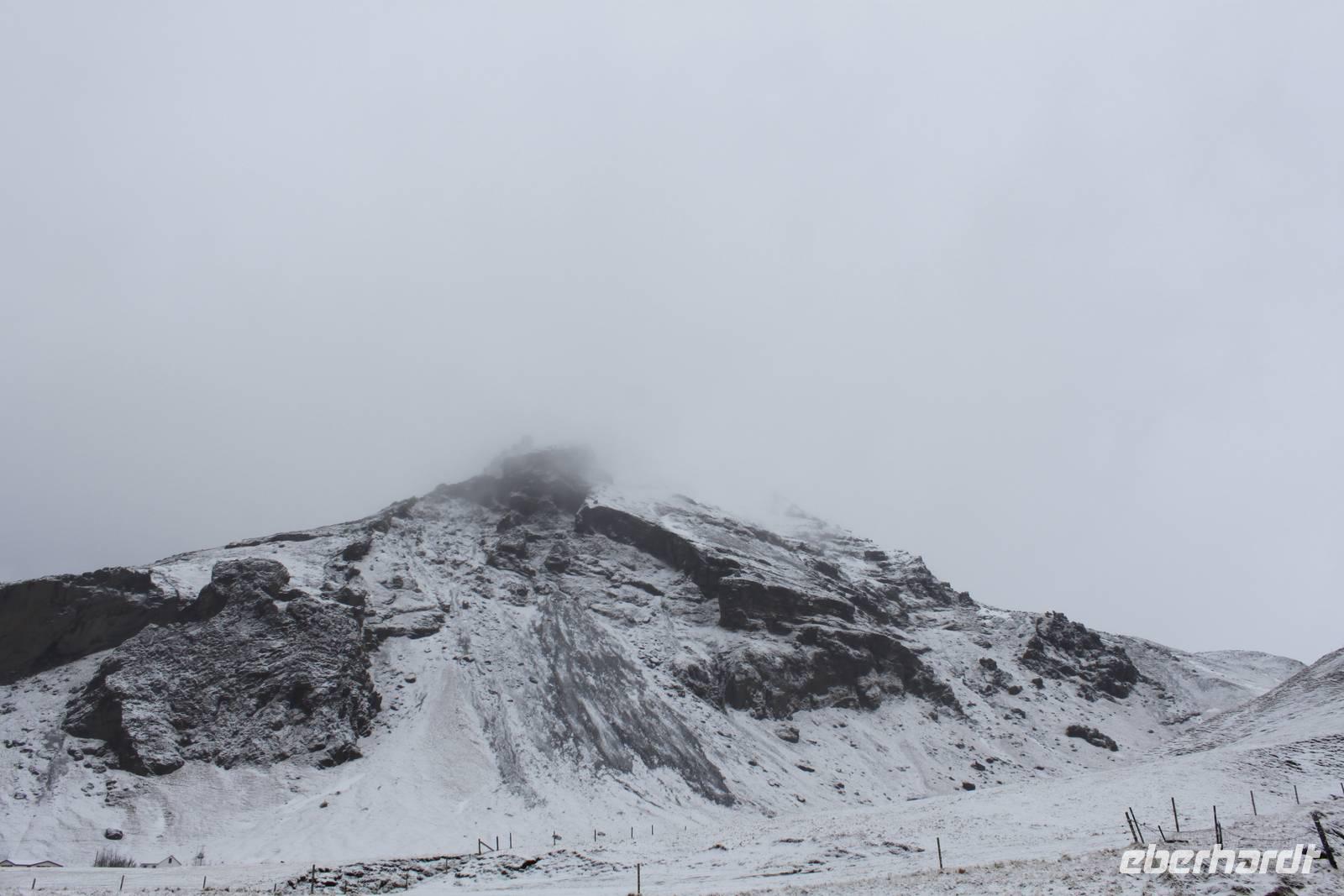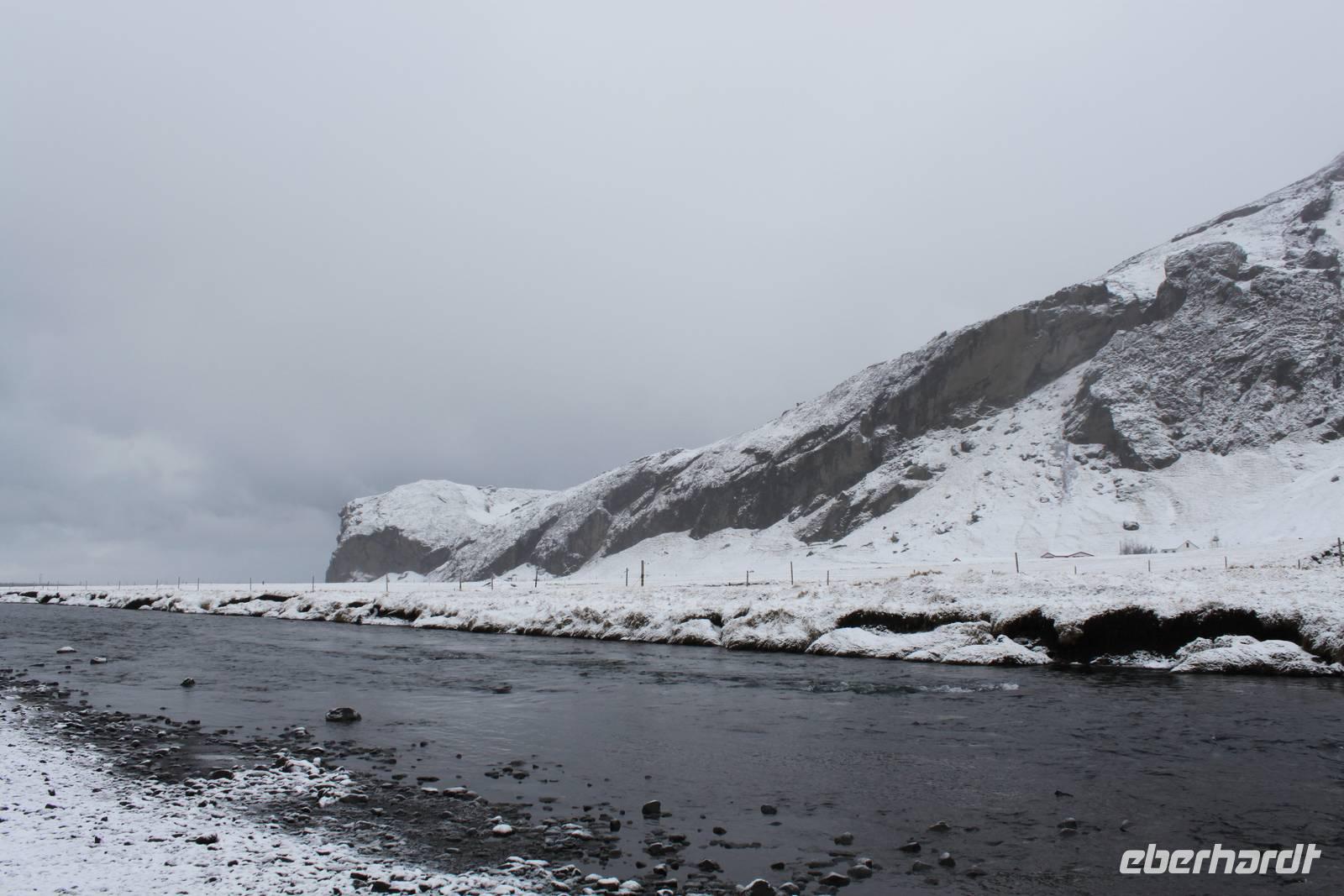 Wieder am Eyjafjallajökull zog es uns ins Thorvaldseyri Besucherzentrum, wo wir uns den kurzen Dokumentarfilm über die Familie, die am Fuß des Vulkans wohnt, ansahen. Gefasst von der Geschichte ging es wieder in den Bus und zum letzten Naturspektakel - dem Seljalandsfoss. Mittlerweile hat es aufgehört zu schneien und so zierte ein Regenbogen die Wassermassen die in die Tiefe stürzten.