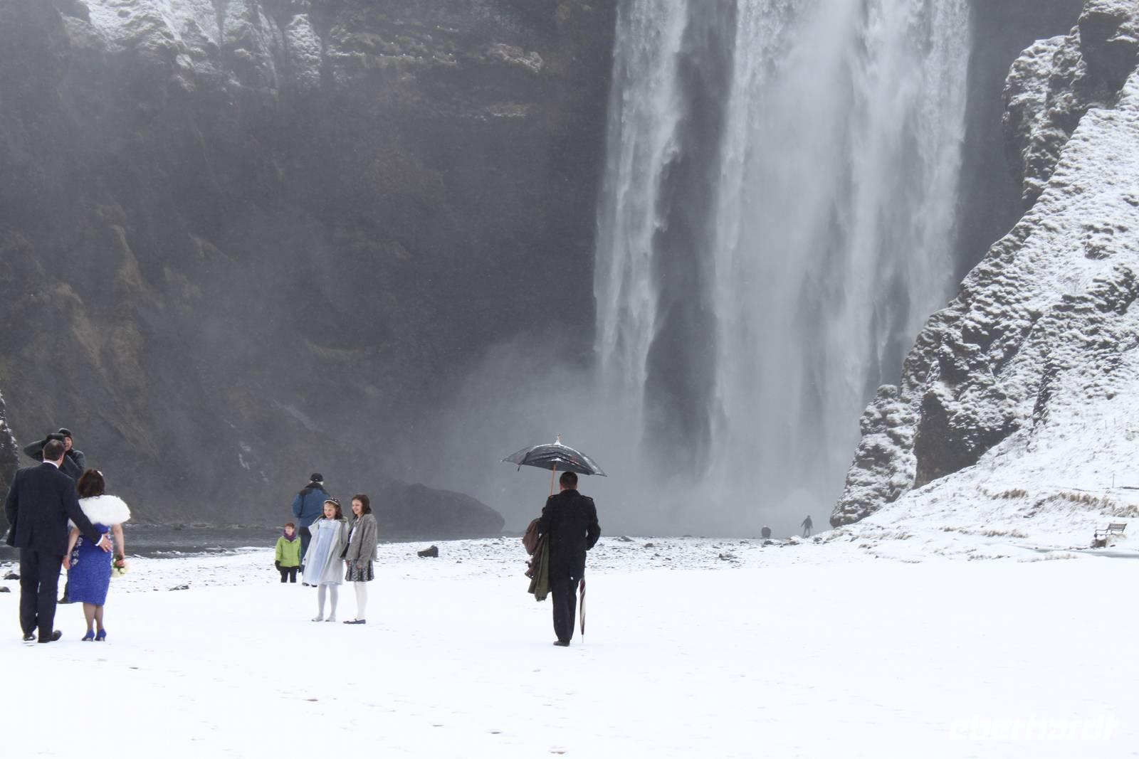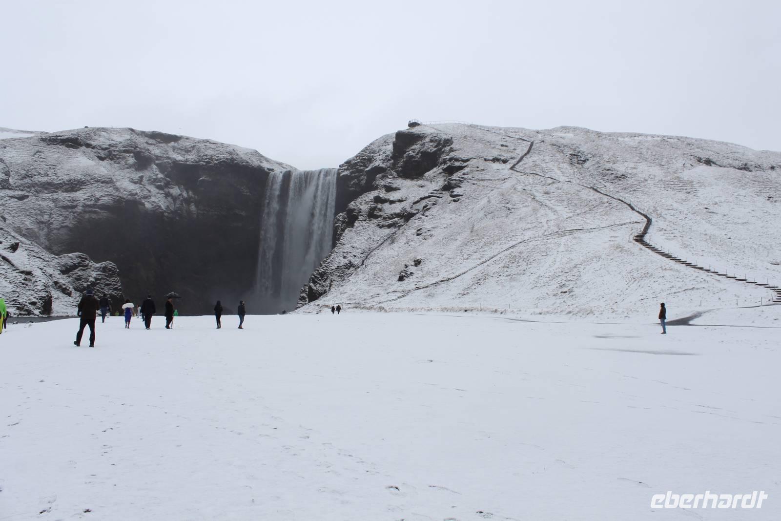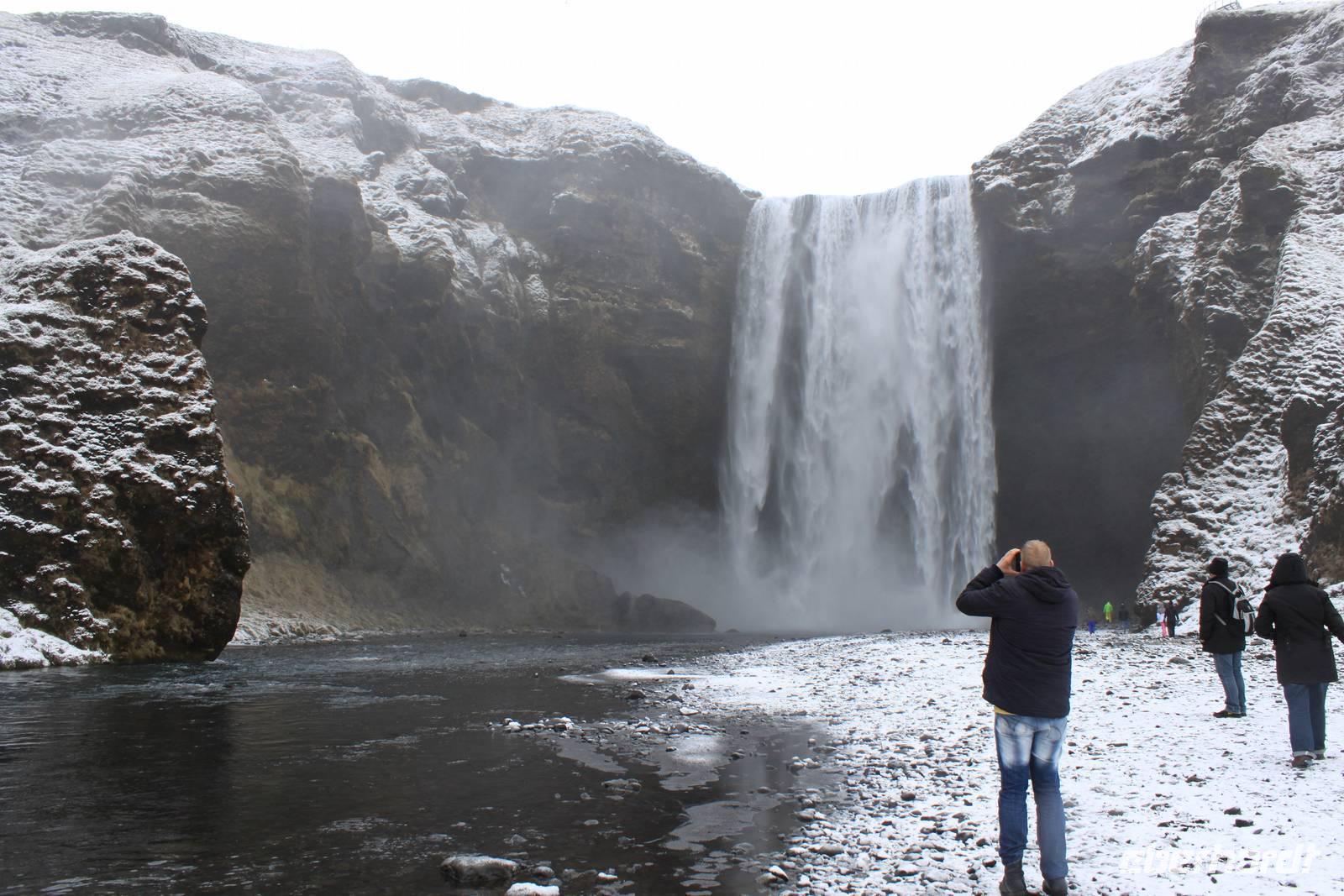 Im Heimatmuseum Skógafoss erhielten wir eine kurze aber interessante Führung auf Deutsch und erkundeten danach das große Gelände drinnen und draußen auf eigene Faust. Das Wetter hat wieder umgeschlagen und so fing es plötzlich an zu schneien. Am Skógafoss angekommen ließ uns der atemberaubende Wasserfall die Kälte vergessen.