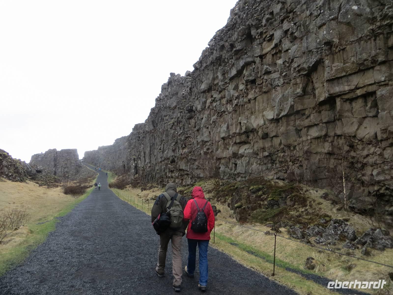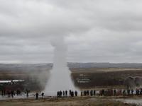 Unser heutiger Tagesausflug führte uns den „Goldenen Kreis" entlang und uns erwarteten einige der bekanntesten Naturphänomene Islands. Um 09:00 Uhr starteten wir bei etwas Nieselregen. Unterwegs erfuhren wir, dass in diesem Jahr die Natur ca. 3-4 Wochen zurückliegt, da es u.a. ganz ungewöhnlich im April fast 3 Wochen am Stück nicht geregnet haben soll. Nach ca. einer Stunde erreichten wir Hveragerdi, eine kleine Gemeinde mit vielen, durch Erdwärme beheizten, Gewächshäuser für Gemüse und Blumen sowie ein Feld mit heißen Quellen. Hier gibt es auch den „Müll-Geysir". Halldur erzählte uns, dass einst die Bewohner einen inaktiven Geysir für ihre Abfallentsorgung nutzen. Als dieser durch ein Erdbeben doch einmal wieder aktiv wurde, spukte er den gesamten Unrat explosionsartig hoch in die Luft wieder heraus. Im örtlichen Einkaufszentrum gibt es eine kleine Ausstellung, wo wir u. a. durch eine Spalte im Boden die Ausmaße von Erdbeben 2008 erahnen konnten. Außerdem zeigte man uns Videoaufnahmen vom Beginn des Bebens der örtlichen Tankstelle. Anschließend fuhren wir weiter zum Gullfoss, dem Goldenen Wasserfall. Trotz Nieselregens genossen wir einen Spaziergang an den beeindruckenden Wassermassen, die hier über 2 Stufen in eine tiefe Schlucht stürzen. Weiter ging es zum nächsten Naturphänomen, zum aktiven Geysir Strokkur. Dieser schoß auch in unserer Anwesenheit in ca. 5 minütigen Abständen (fast könnte man meinen, jemand steuert dies automatisch ?) eine bis zu 30 Meter hohe Wassersäule mit gewaltiger Kraft in den Himmel. Nach einer kurzen Mittagspause fuhren wir weiter entlang dem Goldenen Kreis zum Nationalpark Thingvellir, dem ältesten Nationalpark Islands und wie wir von Halldur erfuhren, auch der bedeutendste: Hier gab es nach der Besiedlung Islands einen sogenannten Aibling, wo bis zu 4.000 Menschen bis zum Ende des 18. Jahrhunderts einmal im Jahr Versammlungen abhielten und Gesetze beschlossen. 1944 wurde hier die Republik Island ausgerufen. Aber auch aus geologischer Sicht ist dieser Nationalpark einzigartig, den er liegt inmitten einer Grabenbruchzone. So spazierten wir sozusagen zwischen Amerika und Europa. Hier schließt sich der Goldene Kreis und wir fuhren zurück nach Reykjavik. Das Abendessen nahmen wir gemeinsam im nahegelegen Restaurant ein.