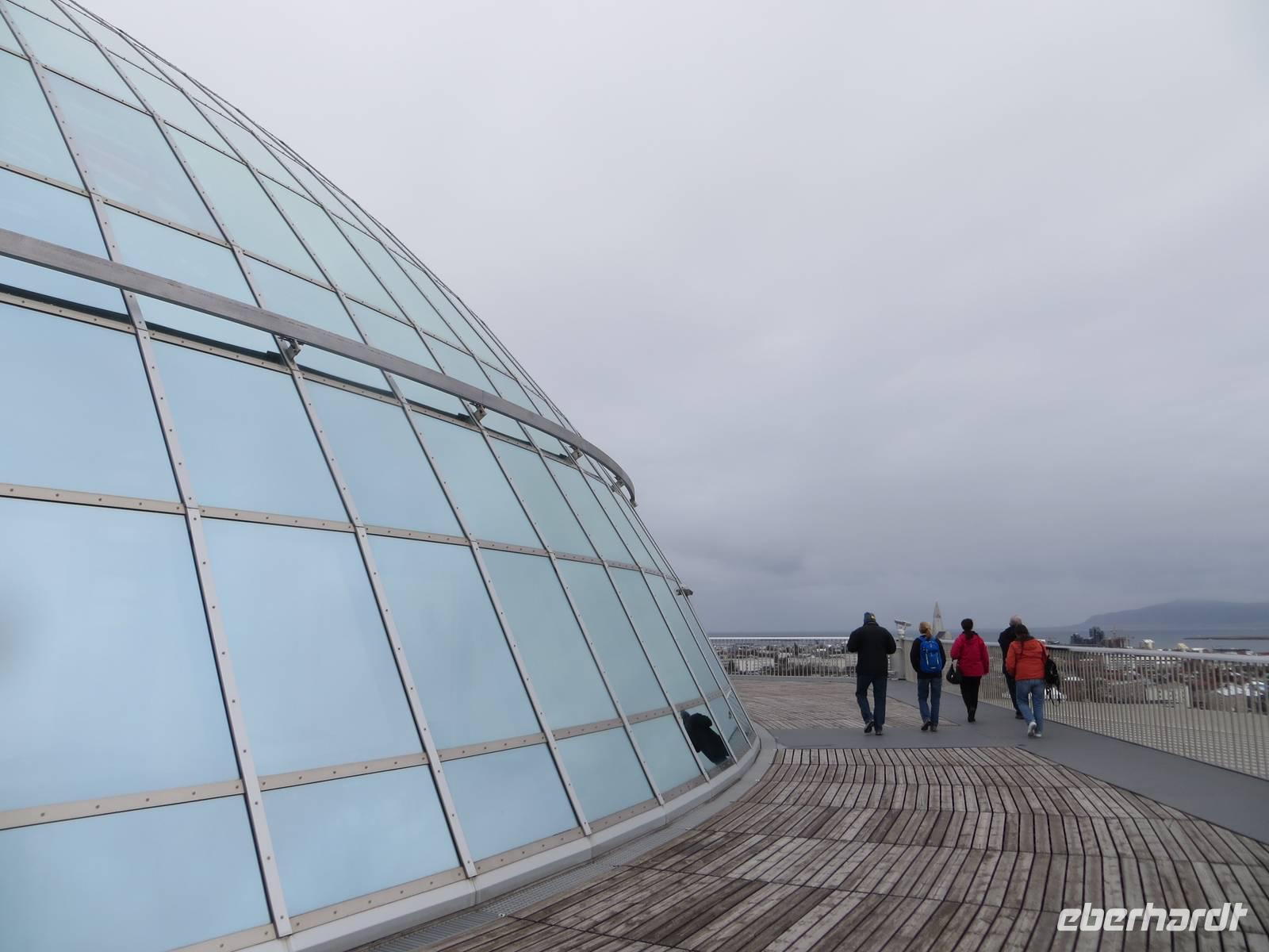 Am Vormittag unternahmen wir eine Stadtrundfahrt durch die nördlichste Hauptstadt Europas. Als Erstes besuchten wir die moderne und sehr schlicht gehaltene Hallgrimskirche. Die Meisten von uns fuhren mit dem Aufzug auf die Aussichtsplattform in ca. 70m Höhe und genossen den Rundumblick auf Reykjavik, das Meer und das Umland. Auf der weiteren Fahrt sehen wir u,a, das Höfdi Haus, wo sich einst Gorbatschow und Reagan trafen, natürlich die Harpa und das Botschaftsviertel. Wir fuhren zum Hügel Öskjuhlíd, wo sich das Perlan, die Perle befindet. Eigentlich ist dies der Warmwasserspeicher der Hauptstadt. Diese wird von hier aus mit Warmwasser versorgt. Und im Winter werden so sogar auch die Gehwege und Straßen beheizt. Wir fuhren auch hier auf die Aussichtsplattform und genossen noch einmal einen Blick auf Reykjavik mit der vorher besuchten Hallgrimskirche. Anschließend erhielten wir im modern gestalteten Nationalmuseum einen anschaulichen Einblick in die Geschichte und Kultur Islands. Unsere Stadtrundfahrt endete am Hafengelände. Hier teilte sich unsere Gruppe: Einige wollten Reykjavik individuell erkunden, andere unternahmen einen Ausflug mit einem Superjeep ins Hochland und der Rest begab sich mit auf Bootsfahrt mit der Hoffnung, Wale und Delphine zu sichten. Ja, einige Rückenflossen haben wir auch entdeckt? Nach unserer Rückkehr kehrten wir im „Seabaron" ein und genossen in dieser urigen Kneipe die als „weltbeste" beworbene Lobstersuppe und kosteten Walfleisch.