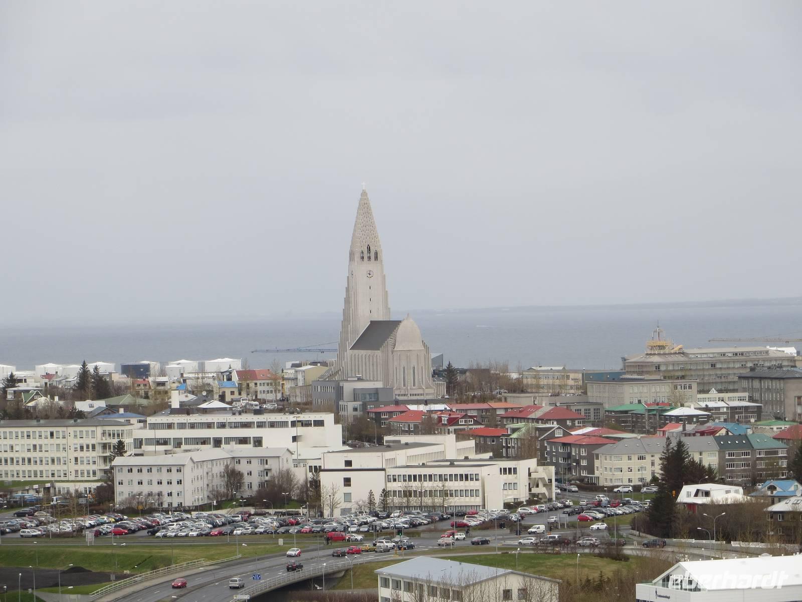Am späten Vormittag trafen wir uns am Flughafen Berlin-Schönefeld und begannen von hier gemeinsam unsere Kurzreise nach Island. Pünktlich startete um 12:40 Uhr unser Flug mit WOW Air nach Keflavik und bereits nach knapp 4 Stunden erreichten wir die Vulkaninsel im Norden Europas. Am Flughafen erwartete uns bereits Haldur, der uns in den kommenden Tagen als Reiseleiter seine Heimat zeigen würde. Berlin verließen wir bei sonnigem Pfingstwetter, hier war es deutlich kühler und in den kommenden Tagen würden wir das wechselhafte Wetter kennenlernen. Auf unserer kurzen Fahrt sahen wir die hier karge Landschaft aus Lavafeldern und nach ca. einer halben Stunde erreichten wir die berühmte Blaue Lagune. Das Thermalfreibad entstand einst aus dem „Abwasser" des nahe gelegenen Geothermalkraftwerkes Svartsengi. Dieses pumpt das heiße Wasser aus ca. 2000 Meter Tiefe zur Oberfläche zur Energiegewinnung und anschließend fließt dieses dann in das umliegende Lavafeld. Daraus entstand der Salzwassersee in der typischen milchigen blau-weißen Farbe, die von den Kieselalgen stammt. Hier trafen wir dann auch unsere weiteren Reiseteilnehmer, die von Frankfurt/Main aus geflogen sind und unsere Reisegruppe war mit 17 Gästen nun komplett. Einige von uns badeten ausgiebig, andere spazierten auf den angelegten Pfaden in dieser bizarren Landschaft. Nach einem kleinen Imbiss in der Cafeteria fuhren wir nach Reykjavik. Nach ca. 45 Minuten erreichten wir unser Hotel Kettlur in Islands Hauptstadt.