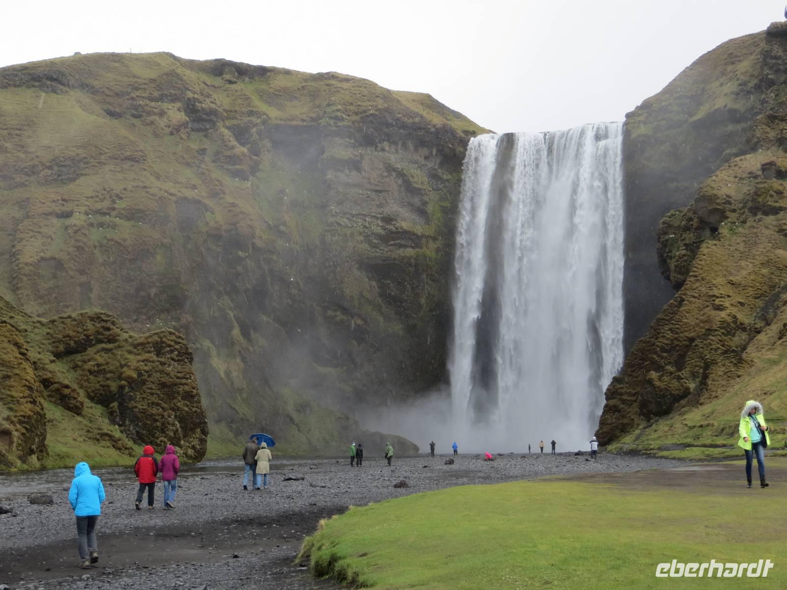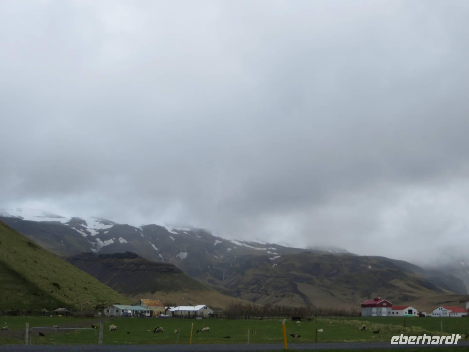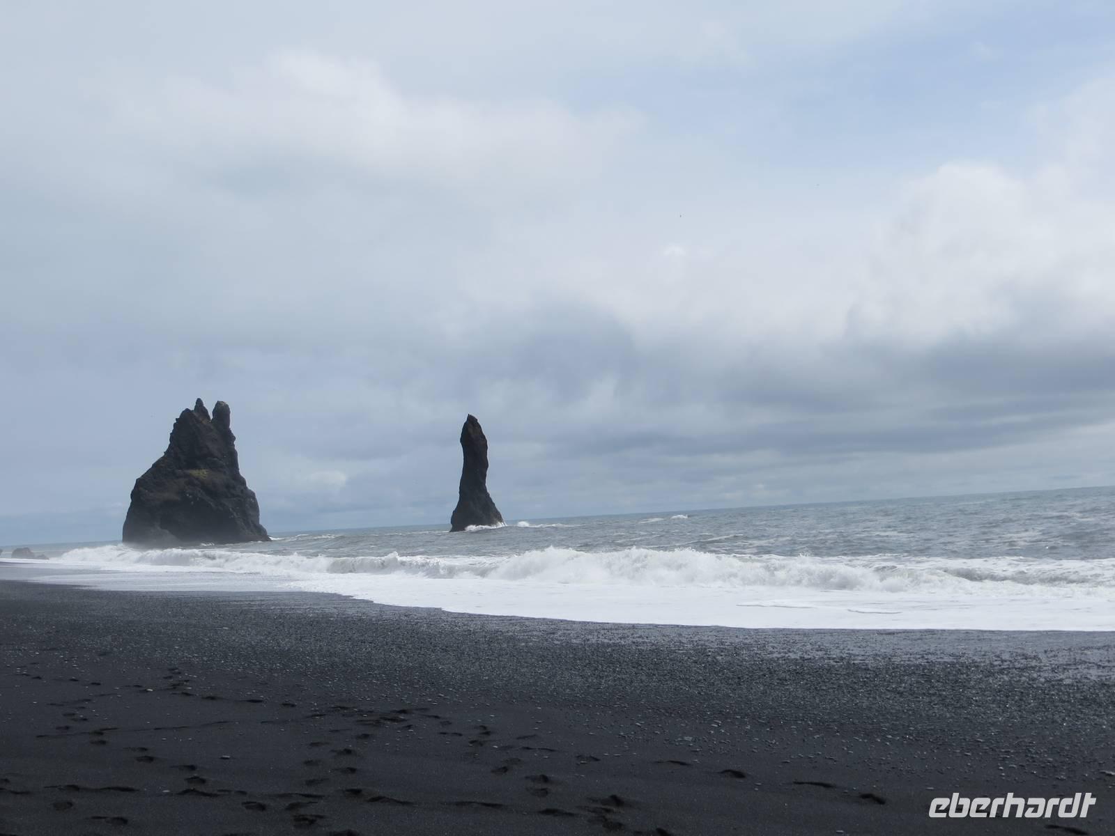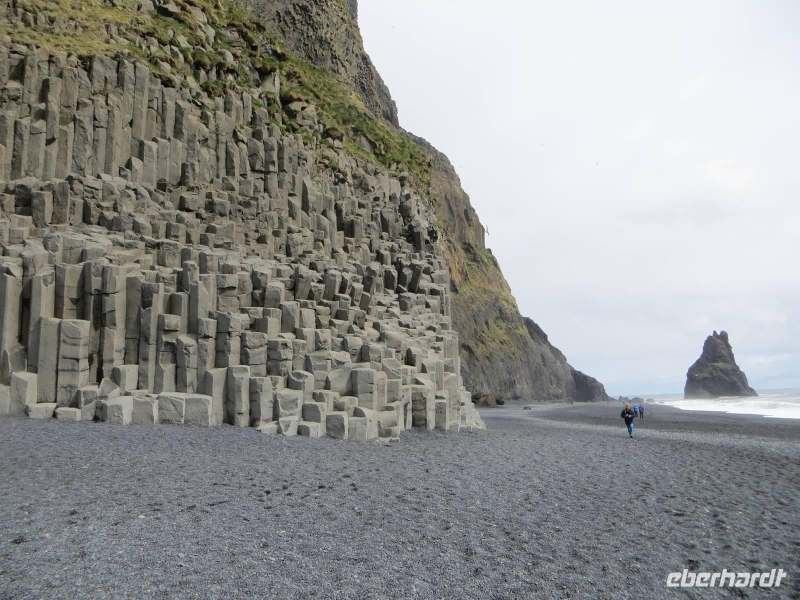 Heute erkundeten wir den Südosten der Insel. Auch für heute galt der Spruch: „Dir gefällt gerade das Wetter auf Island nicht? Dann warte 5 Minuten!" Es sollte auch heute für uns wechselhaft alles dabei sein: Sonne, Hagel, Regen .... Wir fuhren die Küstenstrasse entlang und spazierten zu einem weiteren imposanten Wasserfall, den Skokafoss. Anschließenend ging es zum Fuße des Vulkans Eyjafjallajökull, der 2010 für weltweite Aufregung durch die große Aschewolke und demzufolge tagelange Flugausfälle sorgte. Am heutigen Tag war er ruhig ? Die Farm Thorvaldseyri liegt direkt unterhalb und wurde durch Asche komplett bedeckt. Dieses beeindruckende Ereignis wurde filmisch festgehalten und wir konnten diese hervorragende Dokumentation im kleinen Besucherzentrum uns anschauen. Anschließend fuhren wir zu den Ausläufern des Gletschers Solheimajökull, wo wir einen kleinen Spaziergang unternahmen. 2 Gäste blieben vor Ort und nahmen an einer geführten Gletscherwanderung teil. Für alle anderen ging es weiter zum kleinen Küstenstädtchen Vik, wo wir nach einer Mittagspause am schwarzen Strand spazierten. Aus dem Meer ragen die Felsnadeln Reynisdrangar und vor uns lagen außerdem die Westmänner Inseln. Direkt am Strand befinden sich imposante Basaltfelsen mit Höhlen und zahlreichen Nistplätzen der Papageientauchern. Leider war es jahreszeitlich noch etwas zu früh und wir haben keine dieser einzigartigen Vögel entdeckt.
