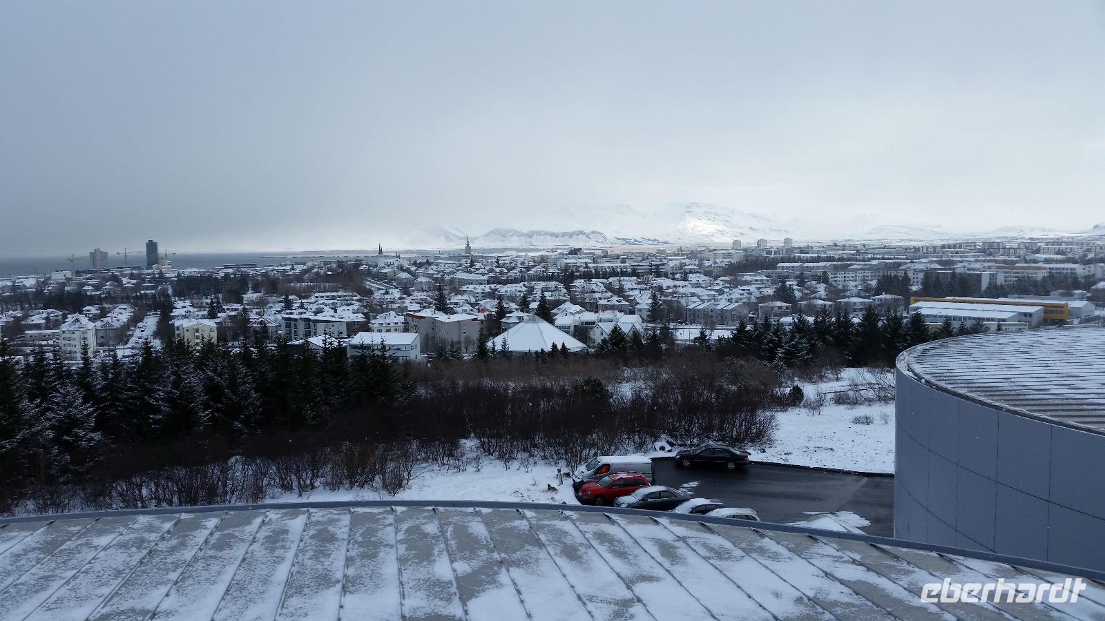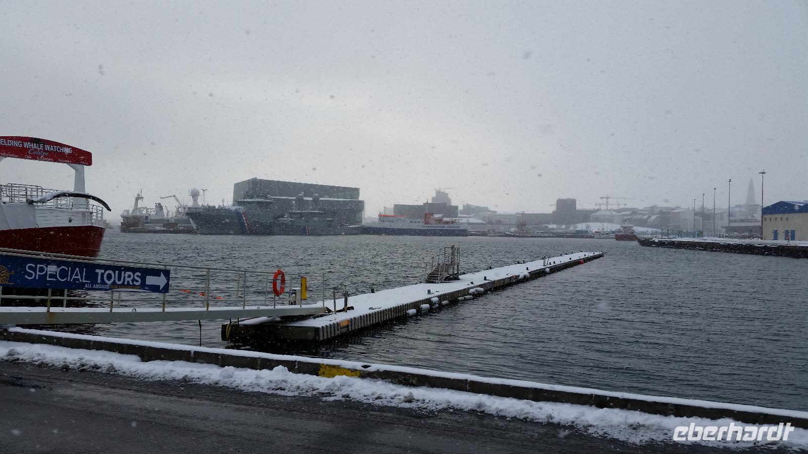 In der Nacht hatte es geschneit und so war die Hauptstadt weiß bedeckt. Zunächst fuhren wir zur Hallgrimmskirche, der größten Kirche Islands. Sie wurde 1986 fertig gestellt und soll durch seine Bauart an die typischen Basaltsäulen erinnern, die man oft auf Island findet und beeindruckt vor allem mit seiner Orgel, die über 5000 Pfeifen beherbergt. Anschließend fuhren wir vorbei am nationalen Flughafen von Reykjavik, von dem man unter anderem nach Akureyri, Egilsstadir und Isafjördur im landesinneren fliegen kann aber auch z.B. nach Kulusuk auf Grönland. Oberhalb des Flughafens befindet sich auf einer Anhöhe die Perlan. Die Perle, so übersetzt, ist eigentlich ein Warmwasserspeicher, der 1991 erbaut wurde und auf dem sich eine Aussichtsplattform befindet, von der sich ein schöner Blick über die Hauptstadt bietet. Am Mittag setzten wir unsere Stadtrundfahrt fort und besuchten noch das Nationalmuseum Islands, bevor wir uns auf Walsafari begaben. Da in der Rauchbucht, so Reykjavik übersetzt, nur wenige Wale am Morgen unterwegs waren, fuhren wir zunächst in den Vorort Hafnarfjördur. Dort stiegen wir auf das Walbeobachtungsschiff um und nach nur wenigen Minuten Fahrzeit zeigten sich die Riesen des Meeres immer wieder in unmittelbarer Nähe zu unserem Schiff. Nach drei Stunden erreichten wir dann wieder festen Boden unter den Füßen und spazierten anschließend noch durch die gemütliche Innenstadt von Reykjavik.