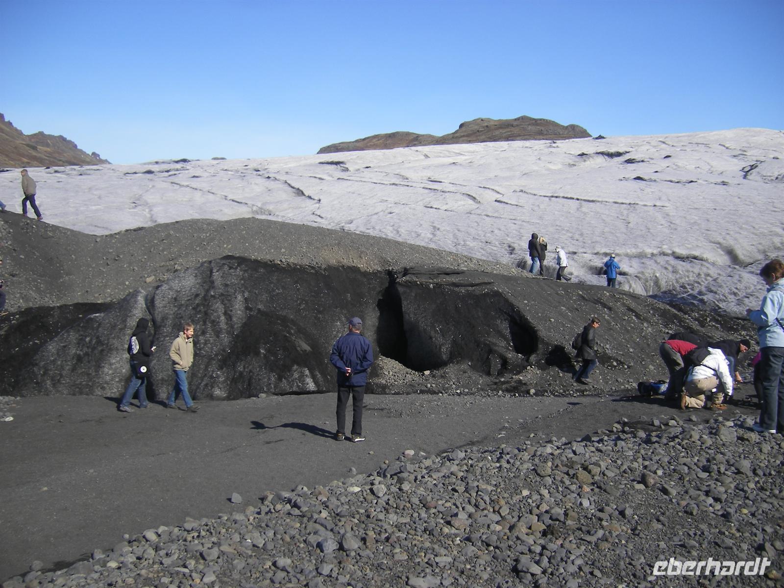 Heute begann wohl der spannendste Ausflug, warum sollte sich erst am Abend herausstellen. Um 09.00 Uhr begann unser Programm. Wir fuhren entlang der Südküste, nach einer anderthalbstunde hielten wir und machten unsere erste Rast. Weiter ging die Fahrt zum Gletscher ,,Solheimajökull’’ dort machten wir einen kurzen Spaziergang und bestaunten die Gletscherspalten. Danach ging es nach Halsanefshellir, einem wunderschönen Aussichtspunkt. Von dort aus hatte man einen traumhaften Blick auf das Meer, die Basaltsäulen und auf die Höhle. Da an diesem Tag, kein Wölkchen am Himmel zu sehen war und kein Wind wehte, wirkte der Ausblick noch viel beeindruckender. Anschließend ging unsere Fahrt weiter nach Vìk. Dort legten wir unsere Mittagspause ein und machten noch einen Verdauungsspaziergang am langen schwarzen Sandstrand, wofür Vik bekannt ist. Unser nächster Stop hieß Skogar. Dort besuchten wir das Heimatmuseum. Die örtliche Reiseleitung Martina, auch eine deutsche, erklärte uns wie die Isländer damals lebten. Neben dem Museum befanden sich kleine Hütten, so konnten wir wirklich einen sehr guten Einblick bekommen über das damalige Leben. Auch eine kleine Kirche war für uns zugänglich, gemeinsam mit dem Museumsbesitzer Herr Thomasson sangen wir isländische Lieder und er begleitete uns auf seinem Klavier. Auch wenn wir den Text nicht sonderlich gut aussprechen konnten, lustig klang es Weiter ging es zu den Wasserfällen Skógarfoss und Seljalandsfoss.