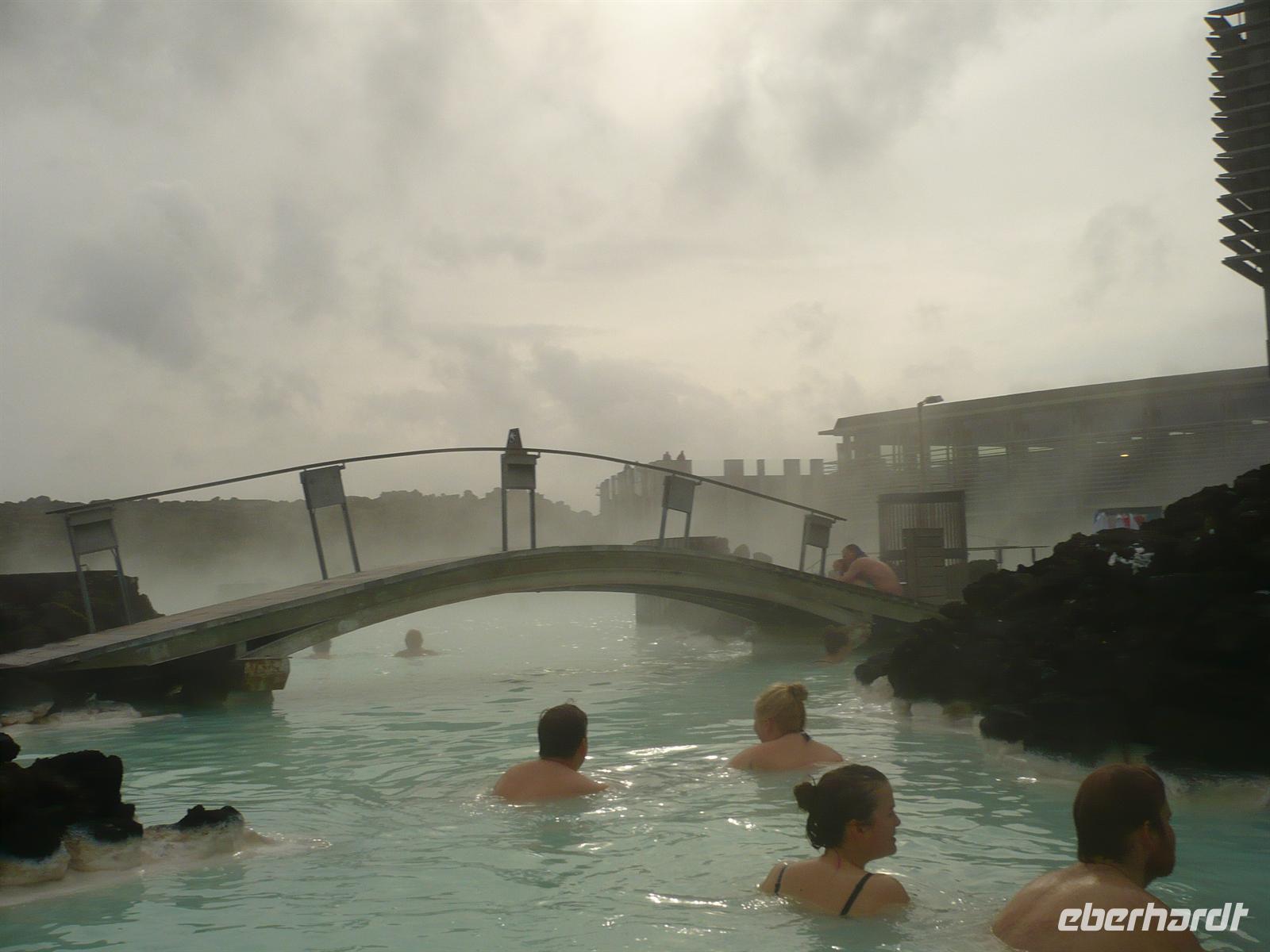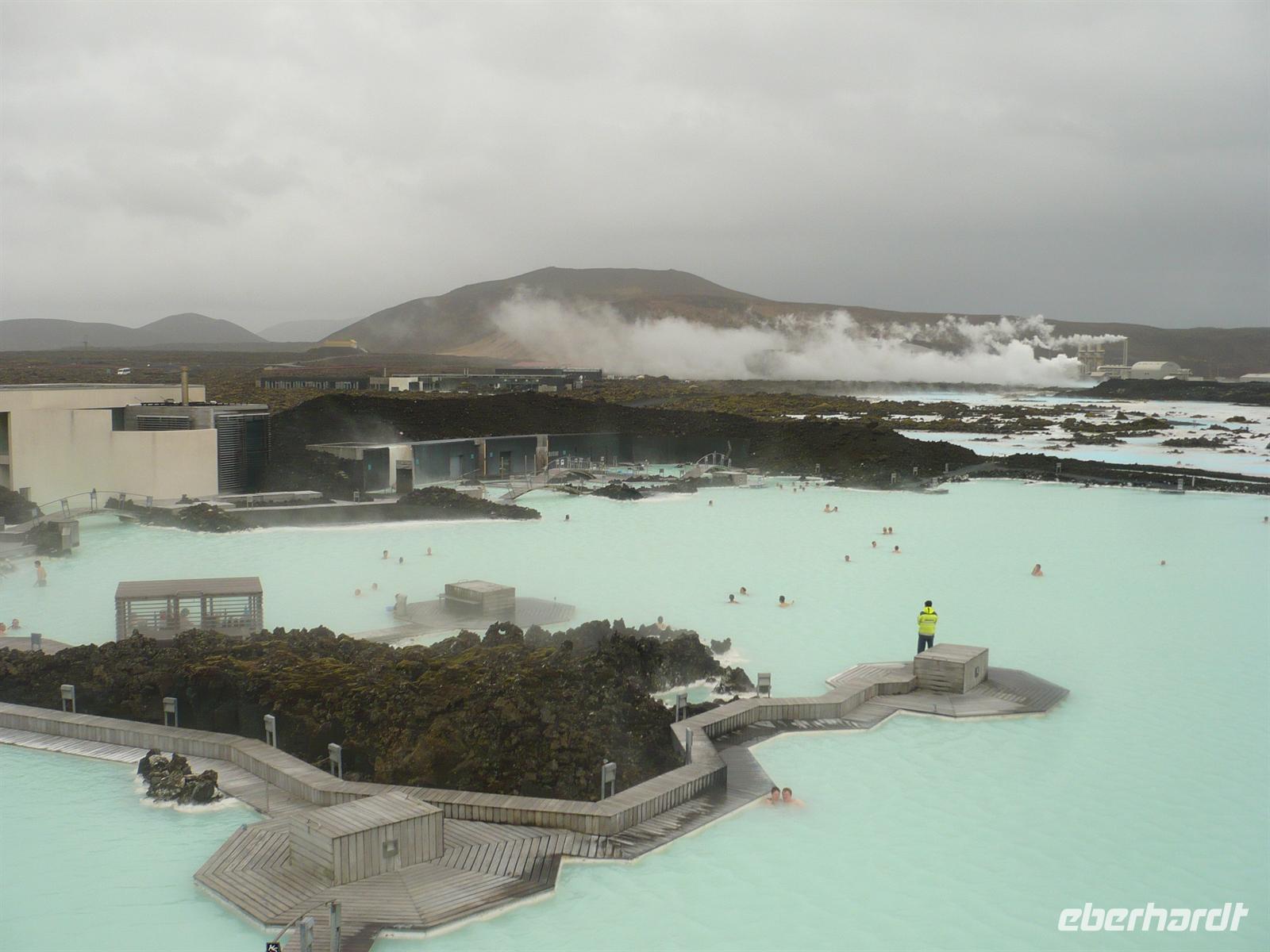 Nach einem leckeren Frühstück, bei dem auch so manch einer ganz isländisch zum sauren Hering gegriffen hat, erwartete uns Rosa, unsere Reiseleiterin. Wir fuhren zu einem der Höhepunkte Reykjaviks, der Hallgrimmskirche. Das zweithöchste Bauwerk der Insel wurde nach dem dem isländischen Kirchenlied-Dichter Hallgrímur Pétursson. Wir fuhren anschließend weiter zum Warmwasserspeicher der über der Stadt thront. Durch seine Glaskuppel schillert der Bau im Licht der Sonne und erhielt so seinen Namen Perlan, was isländisch für Perle ist. Im Nationalmuseum hatten wir Einblicke in die Besiedlungsgeschichte der Insel und die Entwicklung einer neuen Kultur. Zur Mittagszeit fuhren wir an den Hafen wo wir uns ein uriges Hafenrestaurant suchten um dort zu Mittag zu essen. Wir schlemmten Lobstersuppe, gegrillte Fischspießen vom Heilbutt, Lach oder Wal. Fast alle Gäste nahmen an dem anschließenden Ausflug in die Blaue Lagune teil. Ein erholsames Bad in dem Thermalfreibad bei Grindavík auf der Reykjanes-Halbinsel war an diesem kühlen, windigen Tag genau das Richtige. Das Wasser im Thermalbad hat eine Temperatur von etwa 37-42 °C und enthält Mineralsalze, Kieselerde und Algen. Fast 2 Stunden genossen wir den wohltuenden Aufenthalt in der Lagune. Am Abend servierte man uns im Hotel ein vorzügliches 3-Gänge Menü.