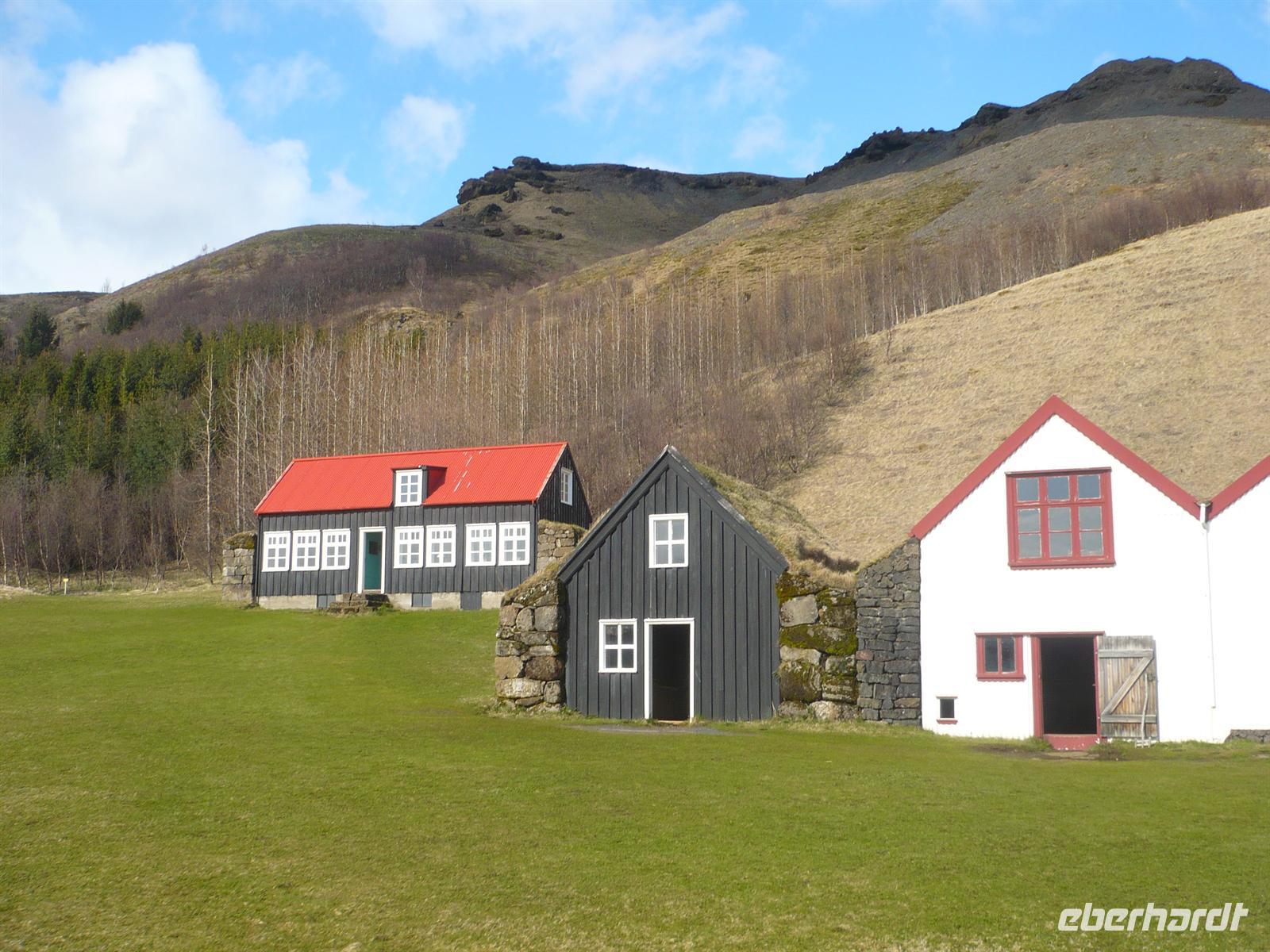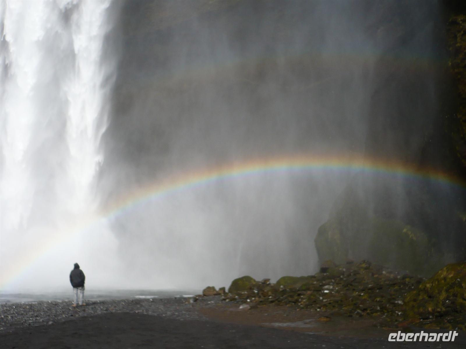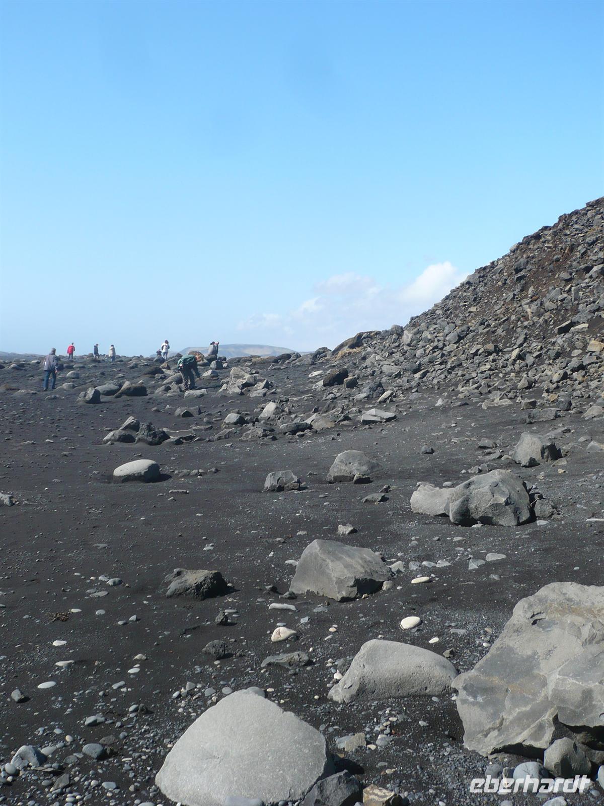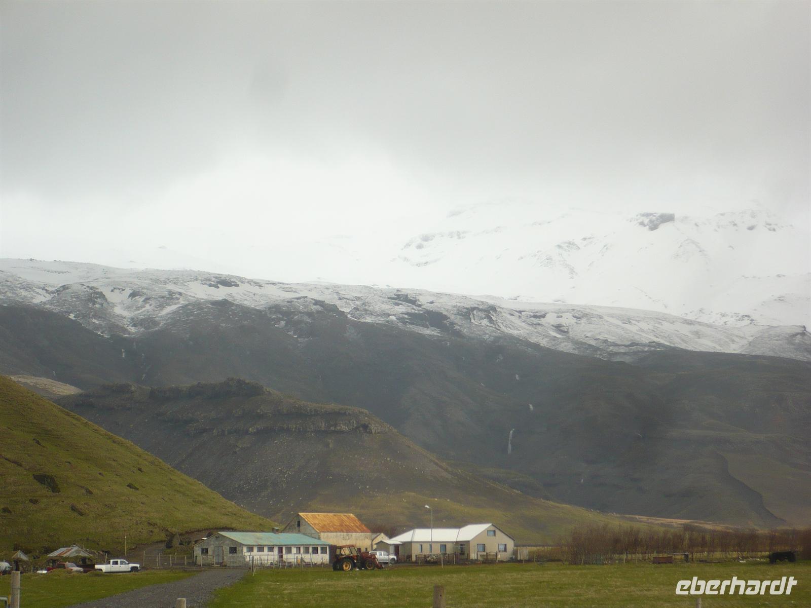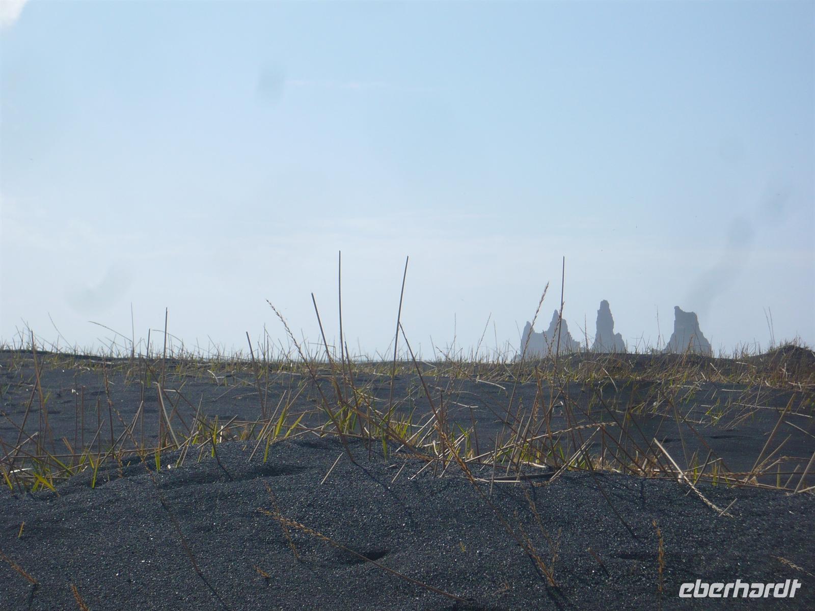 Voller Vorfreude starteten wir in diesen Tag mit einem guten Frühstück. Während der Fahrt zur Südküste Islands erzählte uns Rosa isländische Sagas. Unser erster Stopp ist am Besuchermuseum des Eyjafjallajökull. Hier wird in einem bewegendem Kurzfilm die Geschichte einer Bauernfamilie erzählt, die den Ausbruch des Vulkanes am 20. März 2011 hautnah miterlebt haben. Zur Mittagszeit erreichten wir dann das Städtchen Vik. Hier hatten wir das erste mal die Gelegenheit durch den schwarzen Lava Strand am Meer entlang zu spazieren. Doch der schöne Strandabschnitt wurde noch übertrumpft. Als wir uns nur ein paar Kilometer von der südlichsten Stadt Islands entfernten, eröffnete sich uns ein traumhafter Blick auf einen der schönsten Strände der Welt. Der Strand bei Dyrholaey (Türlochinsel) zeichnet sich durch seine schroffen Felsformationen wie die schwarzen Felsnadeln aus. Die Legende berichtet, dass Trolle ein Schiff ans Land bringen wollten, leider missglückte Ihnen dies und so worden sie versteinert. Am Nachmittag besuchten wir dann, dass Sógar-Museums. Historische Lehmhütten und eine interessante Ausstellung ließen uns in die Vergangenheit der Insel blicken. Auf unserer Rückfahrt hielten wir an den beeindruckenden Wasserfällen Skógafoss und Seljalandsfoss.