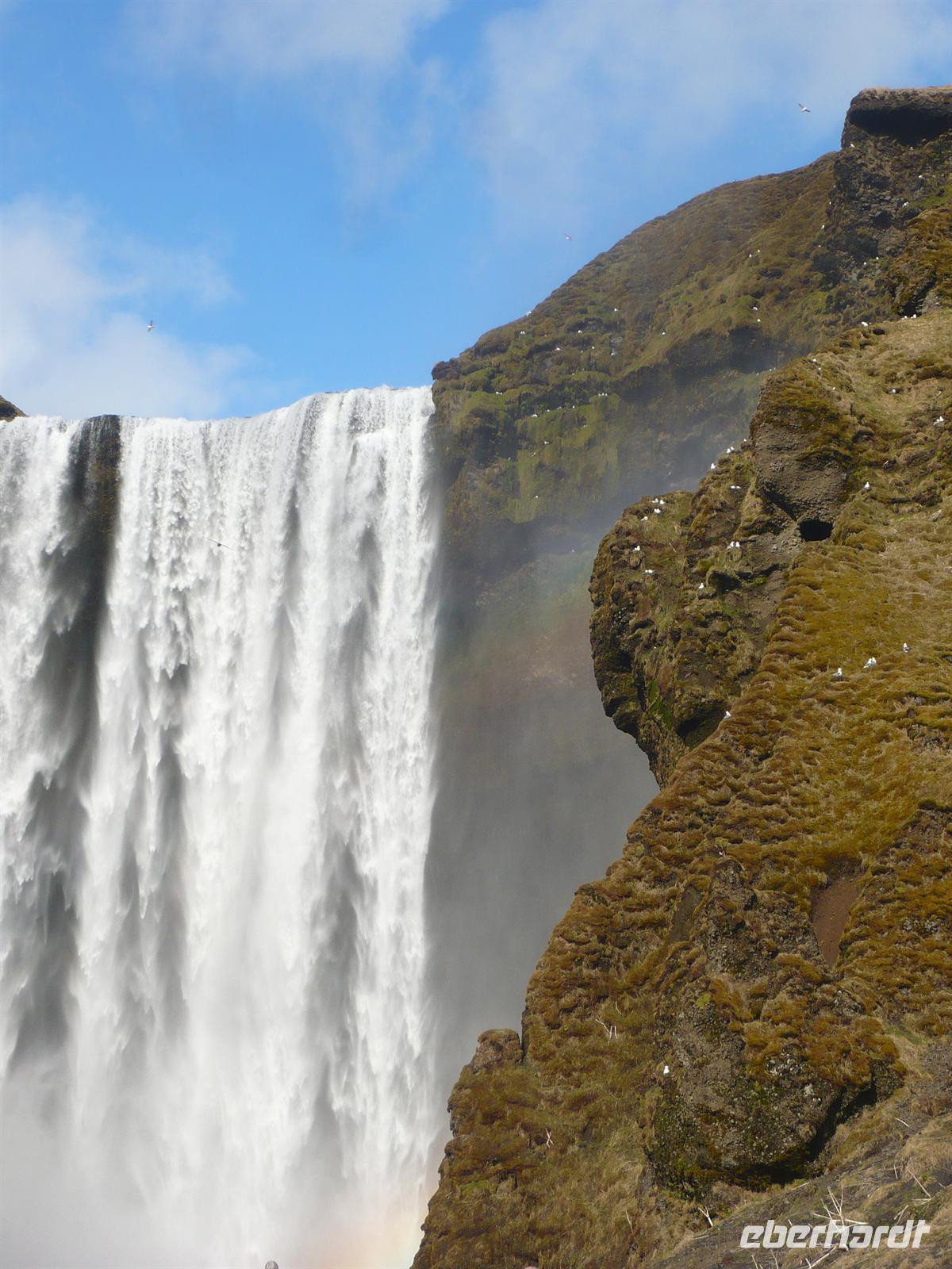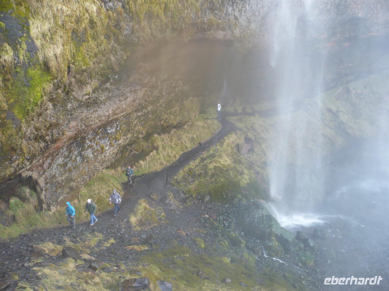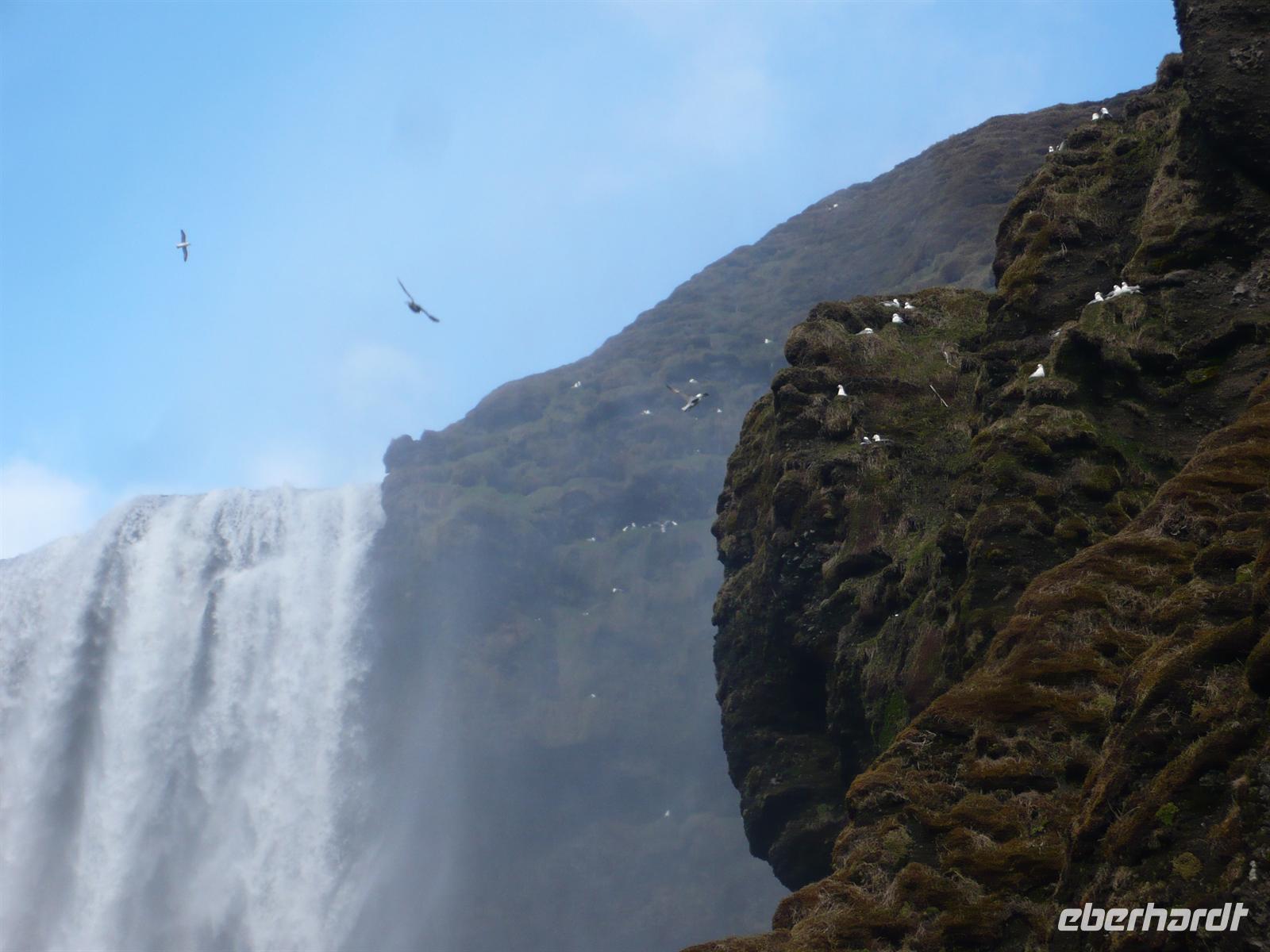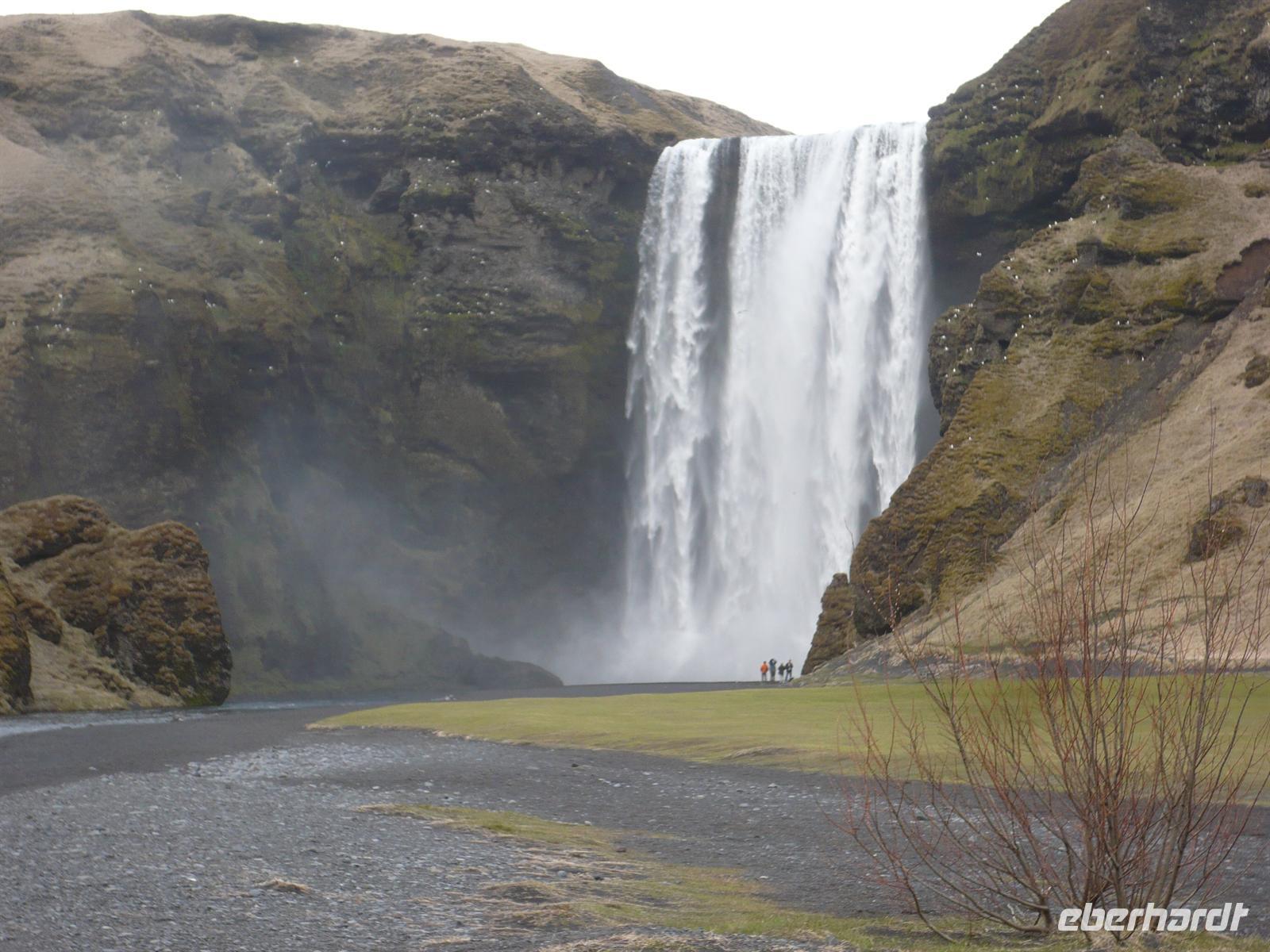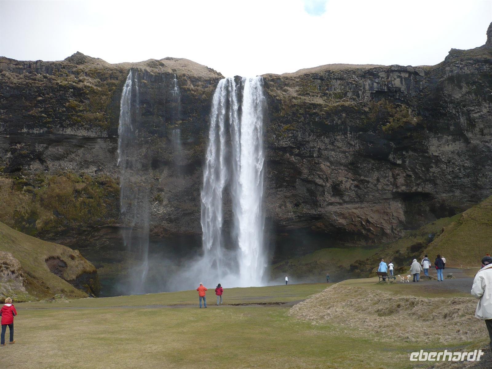 Voller Vorfreude starteten wir in diesen Tag mit einem guten Frühstück. Während der Fahrt zur Südküste Islands erzählte uns Rosa isländische Sagas. Unser erster Stopp ist am Besuchermuseum des Eyjafjallajökull. Hier wird in einem bewegendem Kurzfilm die Geschichte einer Bauernfamilie erzählt, die den Ausbruch des Vulkanes am 20. März 2011 hautnah miterlebt haben. Zur Mittagszeit erreichten wir dann das Städtchen Vik. Hier hatten wir das erste mal die Gelegenheit durch den schwarzen Lava Strand am Meer entlang zu spazieren. Doch der schöne Strandabschnitt wurde noch übertrumpft. Als wir uns nur ein paar Kilometer von der südlichsten Stadt Islands entfernten, eröffnete sich uns ein traumhafter Blick auf einen der schönsten Strände der Welt. Der Strand bei Dyrholaey (Türlochinsel) zeichnet sich durch seine schroffen Felsformationen wie die schwarzen Felsnadeln aus. Die Legende berichtet, dass Trolle ein Schiff ans Land bringen wollten, leider missglückte Ihnen dies und so worden sie versteinert. Am Nachmittag besuchten wir dann, dass Sógar-Museums. Historische Lehmhütten und eine interessante Ausstellung ließen uns in die Vergangenheit der Insel blicken. Auf unserer Rückfahrt hielten wir an den beeindruckenden Wasserfällen Skógafoss und Seljalandsfoss.