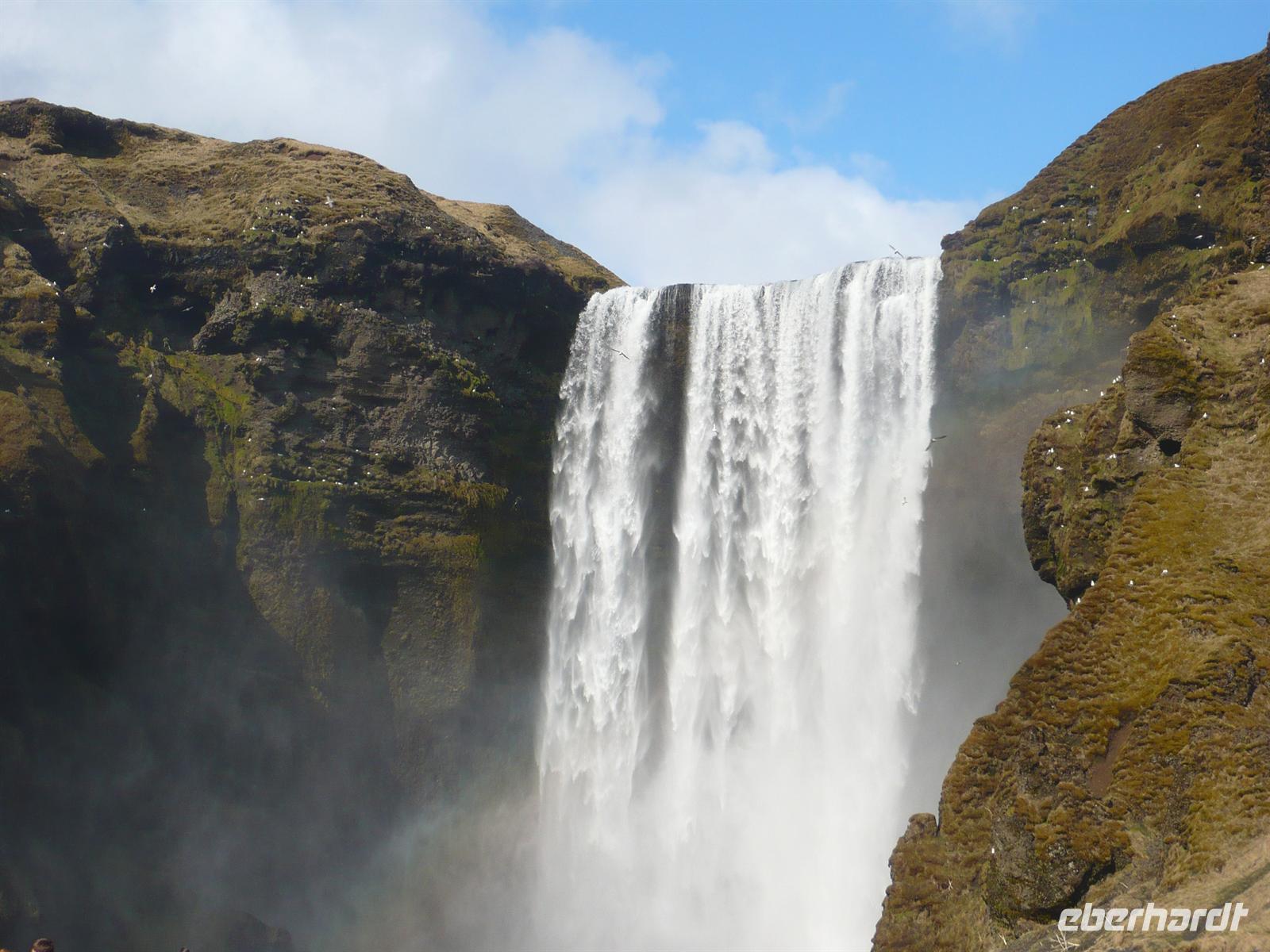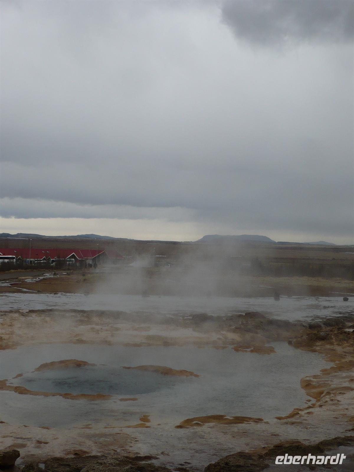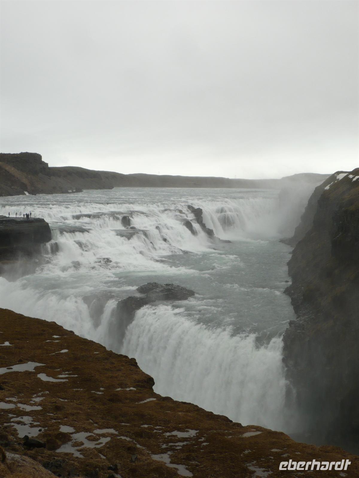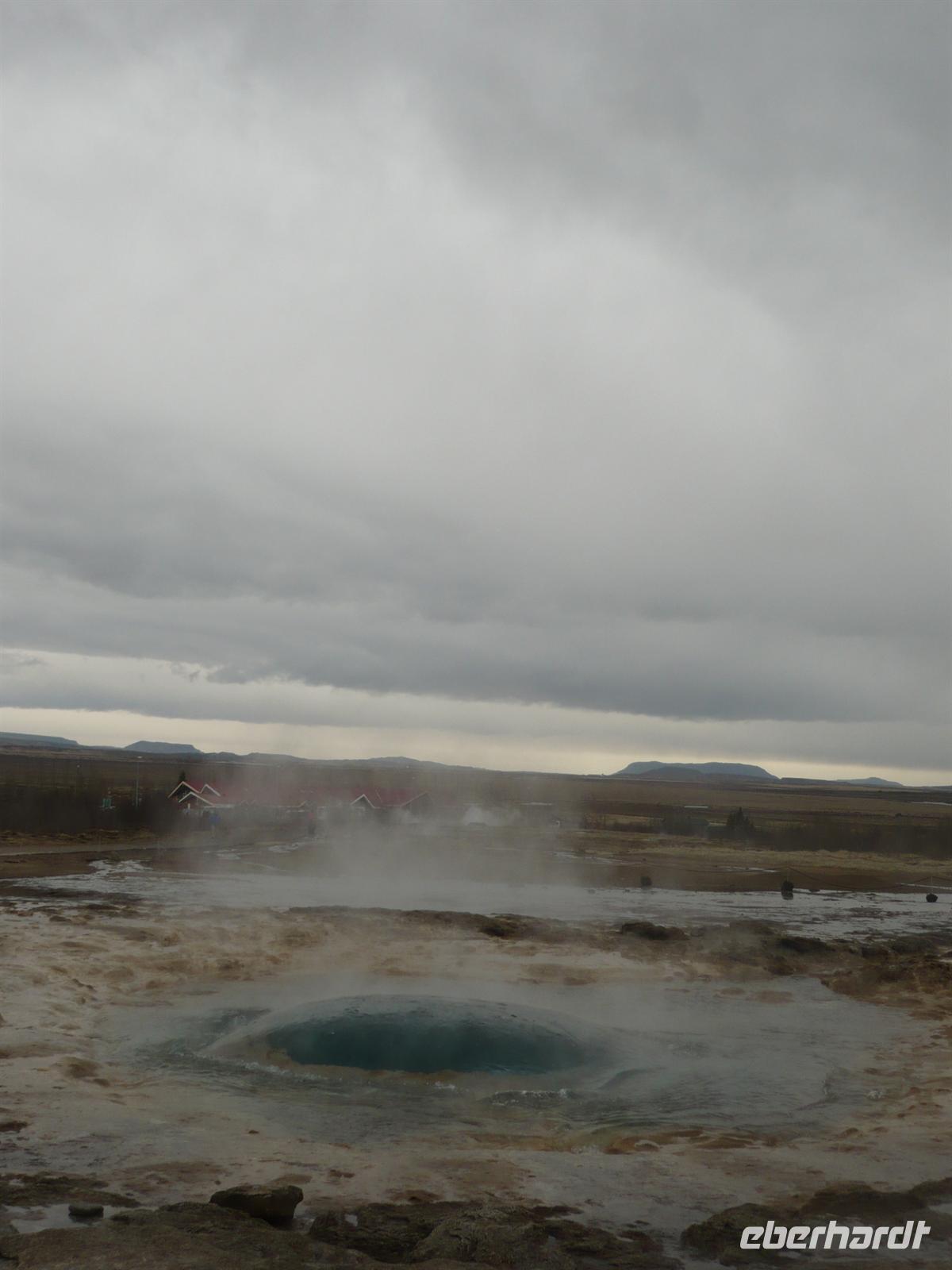 An diesem Tag erwartete uns „das“ Island aus Feuer und Eis. Heiße Quellen gibt es auf Island so einige, doch die wohl bekannteste ist der große Geysir, der Namensgeber für alle natürlichen Fontänen der Welt. Über ein dampfendes Warmwasserfell spazierten wir zum Geysir der in regelmäßigen Abständen ausbrach. Am Mittag erreichten wir dann den Goldenen Wasserfall „Gullfoss“, einer der schönsten, aber sicher der bekannteste Wasserfall Islands. Das Wasser fällt in 2 Kaskaden jeweils 90 Grad in eine Schlucht. Entlang des Thingvallavatn Sees fuhren wir weiter. Thingvellir ist sowohl ein Nationalpark, als auch die historischste Stätte auf Island. Hier wurde das Zusammenleben der Isländer geregelt, wurden die Gesetze beschlossen und Gericht (Thing) gehalten. Hier wurde 1944 die Republik Island ausgerufen. Von der Eurasischen Platte fuhren wir auf die Amerikanische Platte, denn im Nationalpark driften die Kontinentalplatten jährlich 2 Zentimeter auseinander und bilden ein Niemandsland. Ein Gläschen Brennevin und typischen Trockenfisch wärmte unsere Gemüter nach diesem verregneten Tag wieder auf. Am Abend hielt man noch eine besonders schöne Überraschung für uns bereit. Wir wurden mit Sandwichs und einem guten Glas Rotwein oder Isländischen Bier begrüßt und in den Kinosaal des Hotels gelotst. Der Film über Island zeigte uns noch mal all die schönen Naturspektakel die wir erleben durften, aber auch das, was wir in den wenigen Tagen nicht erleben konnten, aber auf unsere nächsten Island Reise unbedingt noch sehen müssen.