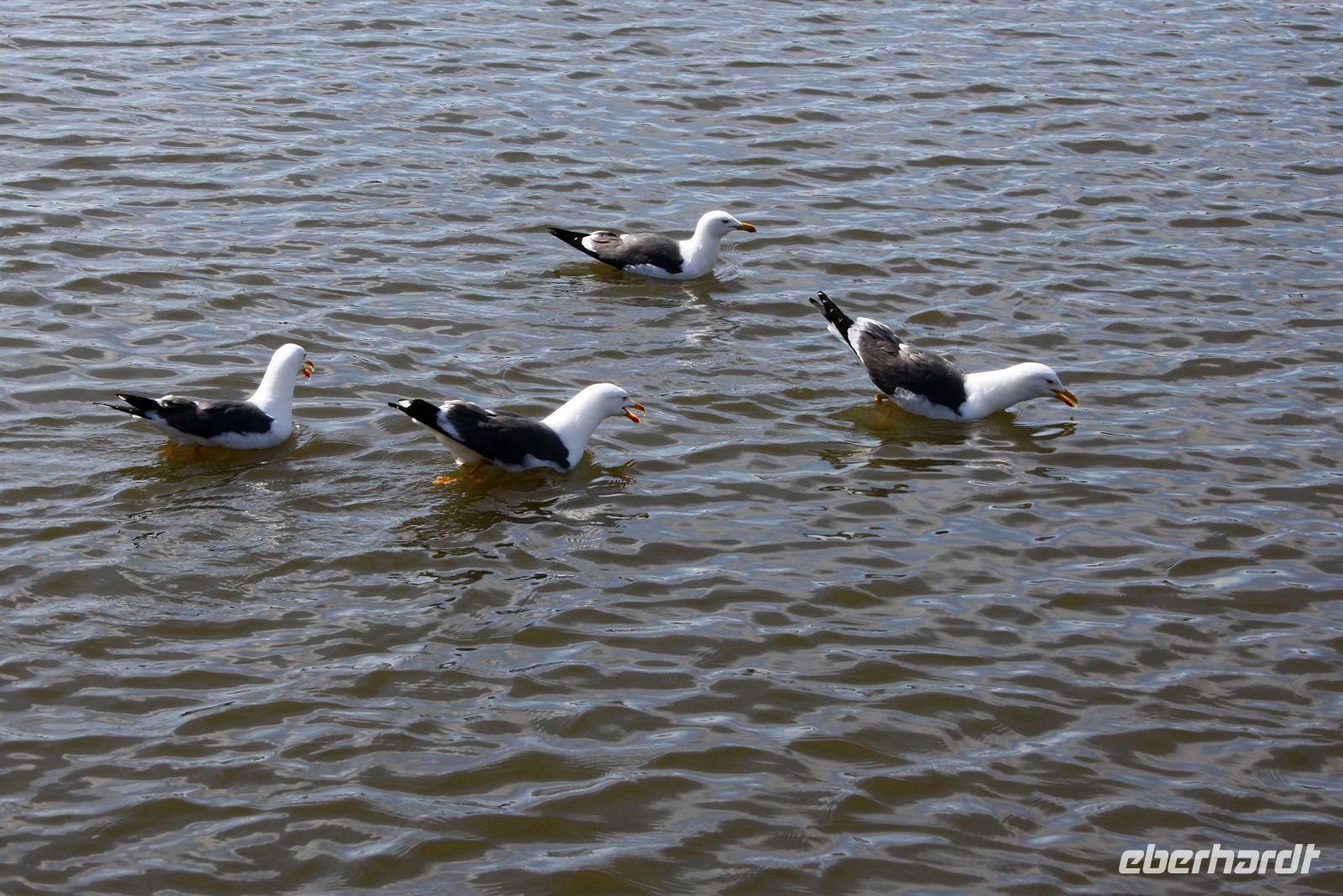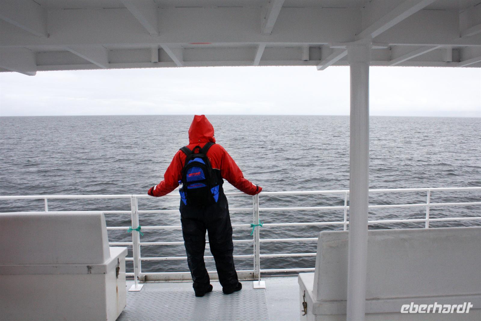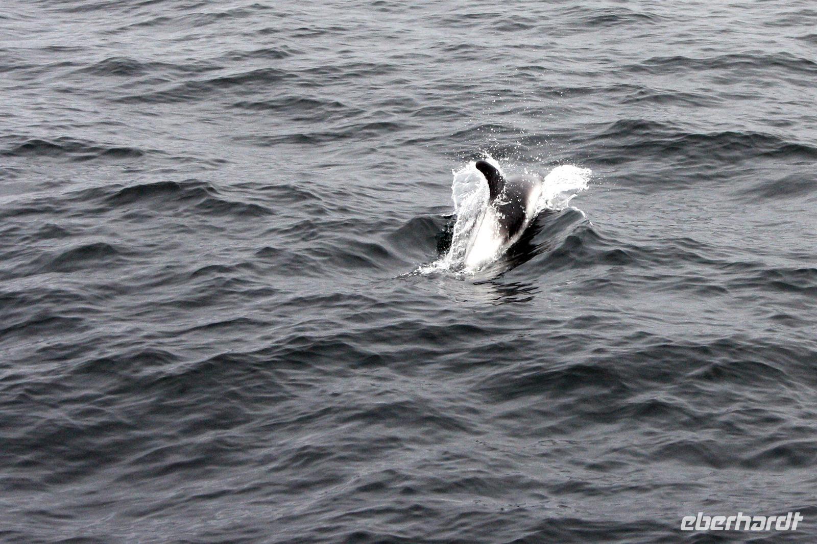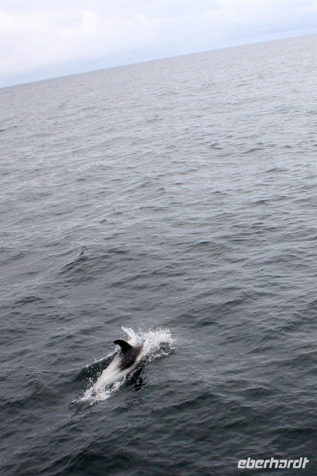 Ein paar Zwergwale und Weißschnauzendelfine konnten wir sichten. Und dank der warmen und wasserdichten Overalls gab es noch etliche lustige Fotomotive, die großen Wale hatten vielleicht Angst vor so vielen Michelin-Männchen??!