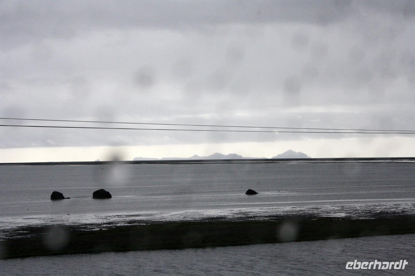 Die Westmänner-Inseln sahen wir nur im Regen, Rosa erzählte uns dann aber im Bus einige Geschichten von den Inseln. Wer wird die Geschichte mit den Gebissen je vergessen?