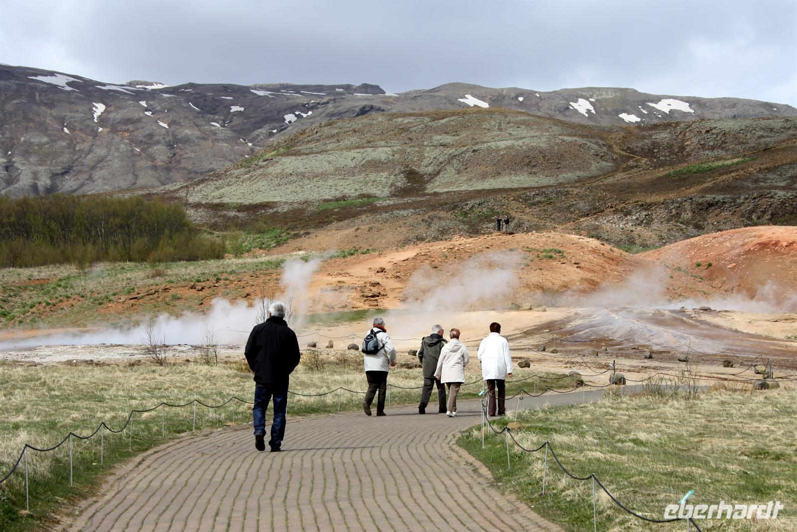 Am Donnerstag besuchten wir auf dem Weg zum „Goldenen Kreis“ an einem Feld „Karlsminni“, alle Tierkreiszeichen waren hier in Form von Steinen aufgebaut. Der Kratersee Kerid stand als nächstes auf dem Plan, schon erstaunlich, was die Natur so hervorbringt. Bei den Geysiren mussten wir uns dann wieder auf die Natur verlassen, der aktivste Geysir namens Strokkur hält sich nicht an Zeiten, Geduld und schussbereite Kameras waren von Nöten