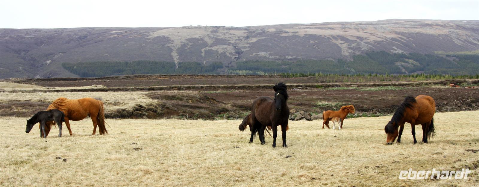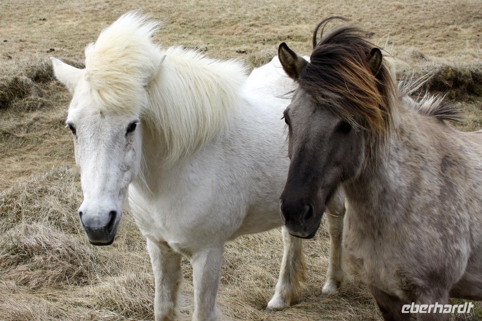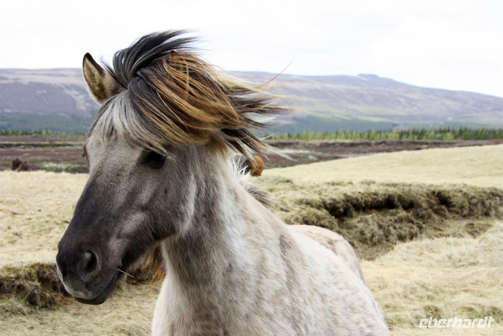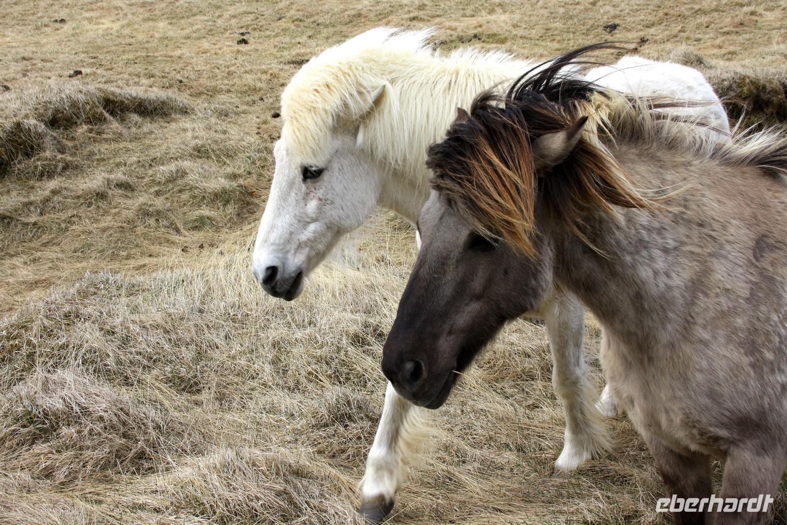 Vorbei an vielen dampfenden Löchern wartete die nächste heiße Quelle namens Cafeteria auf uns. Gut gestärkt von Suppe, Sandwich & Co. ging es weiter zum spektakulären Gullfoss. Wirklich atemberaubend und sehenswert! Viele Fotos später (Wasser, Wasser, Wasser!!!) fuhren wir mit dem Bus Richtung Thingvellir-Nationalpark und hielten unterwegs noch bei den tollen Island-Pferden, eine wirklich schöne Rasse und super Fotomotiv!