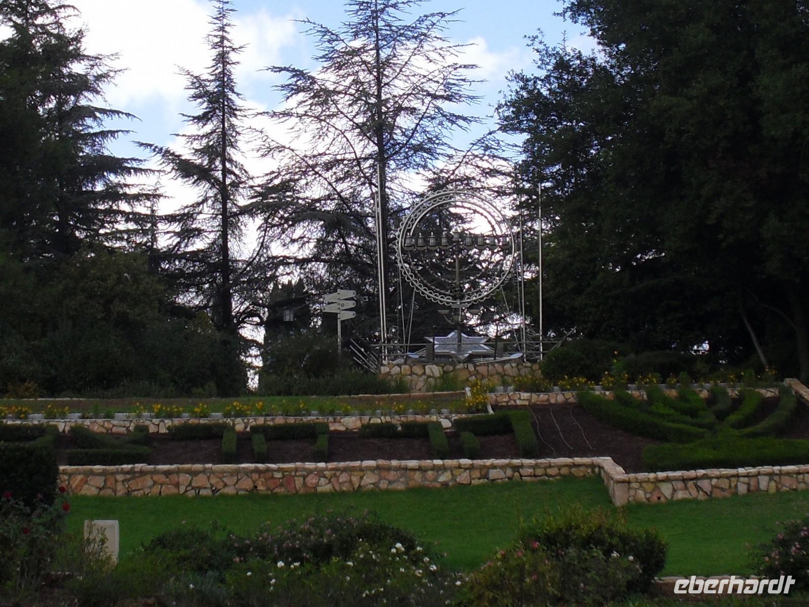 Nach einem wiederum reichhaltigen Frühstücksbuffet im Hotel ging es am Vormittag zum Israel-Museum. Es ist das größte und bedeutendste Museum des Landes und vereint den "Schrein des Buches", archäologische Funde, jüdische Kunst und einen Skulpturengarten. Berühmtester Schatz hier sind die Qumran-Rollen - die markante Kuppel des Schreins soll an die Verschlüsse jener Tonkrüge erinnern, in denen die berühmten Schriftrollen vor ungefähr sechzig Jahren gefunden wurden. Es folgte eine Rundfahrt durch die Jerusalemer Neustadt, wo wir unter anderen das Haus des Ministerpräsidenten und das Jerusalem-Theater sahen. Danach ging es noch zum berühmten Herzl-Berg, der dem Begründer des politischen Zionismus, Theodor Herzl, gewidmet ist, ohne den es heute keinen Staat Israel gäbe. Seine Grabstätte befindet sich auf dem Berg. Auch andere Persönlichkeiten fanden dort ihre letzte Ruhestätte, so sahen wir auch das Grab von Yitzhak Rabin, dem ehemaligen Ministerpräsidenten Israels, der meist durchsetzte, was er sagte. Auf dem politischen Höhepunkt seines Lebens angekommen, fiel er 1995 einem Attentat zum Opfer, ausgerechnet durch die Hand eines fanatischen Juden - nicht nur Israel, sondern weltweit war man damals geschockt. Noch heute legen viele Leute zum Gedenken an ihn kleine Steine an seinem Grab nieder. Nach einer ausgiebigen Mittagspause in der Jerusalemer Neustadt hatten wir am heutigen Nachmittag das Glück, die "Knesset", das israelische Parlament, zu besuchen - es liegt im Westteil der Stadt. Es handelt sich hierbei um ein großes, flaches Zweckgebäude ohne architektonische Besonderheiten; der Plenarsaal, in dem wir übrigens Platz nehmen konnten, hat beispielsweise keine Fenster. Gegenüber dem Eingang des Gebäudes steht eine Menora, das Symbol Israels - ein Geschenk des englischen Parlaments an den Staat Israel.