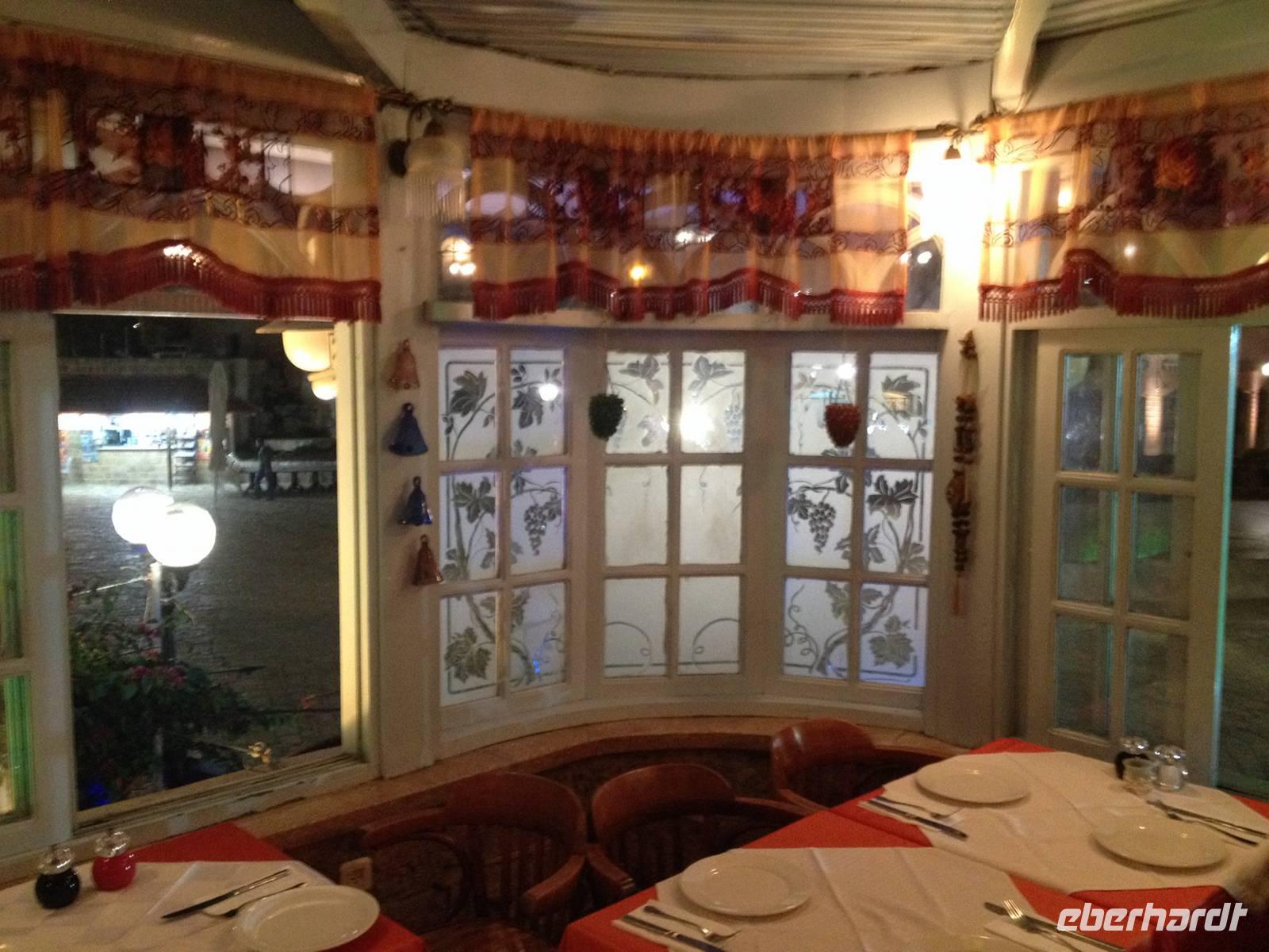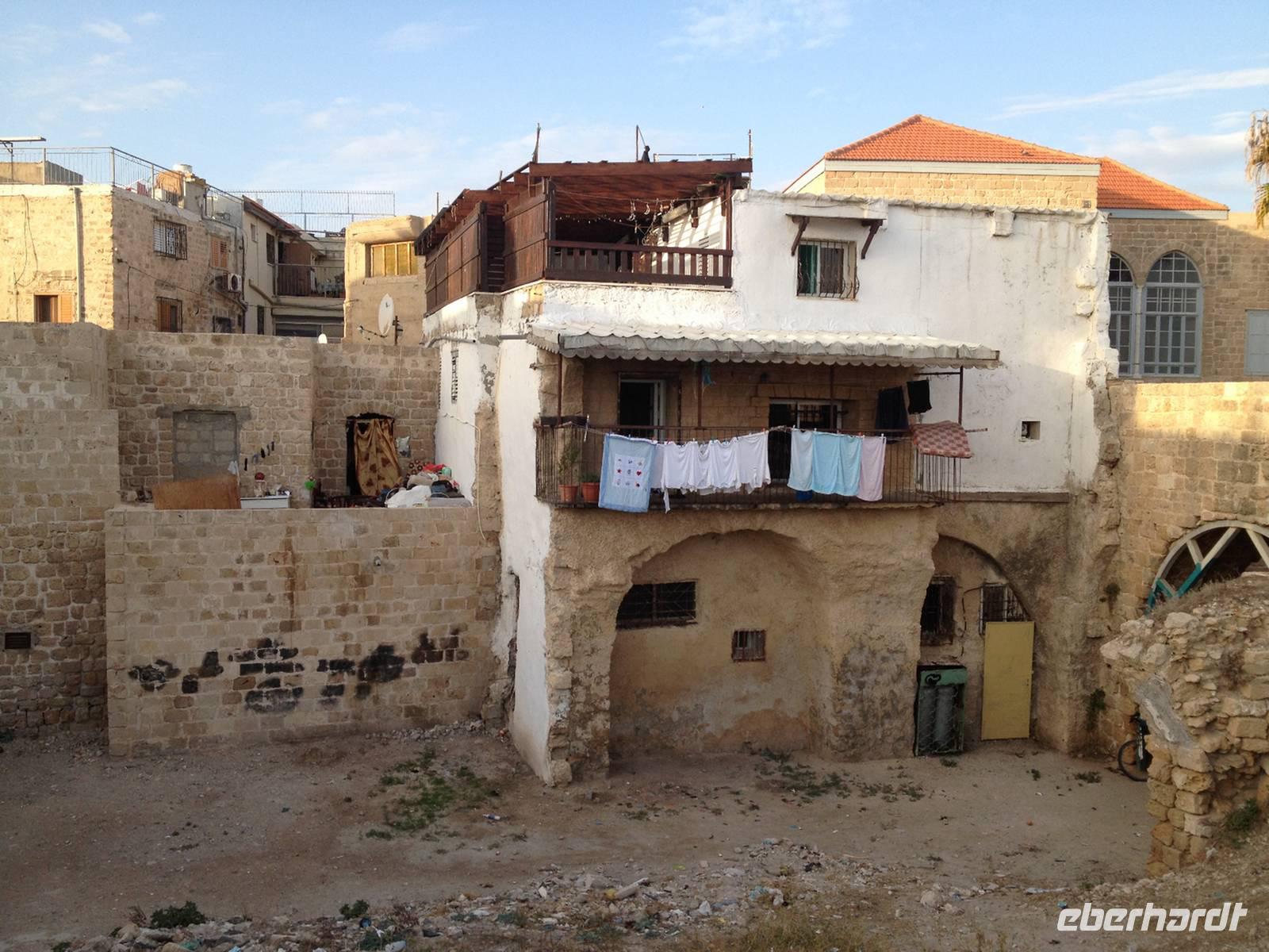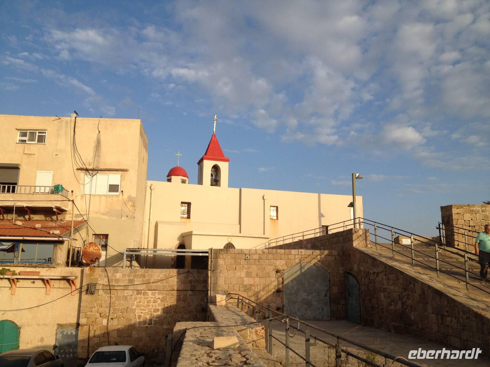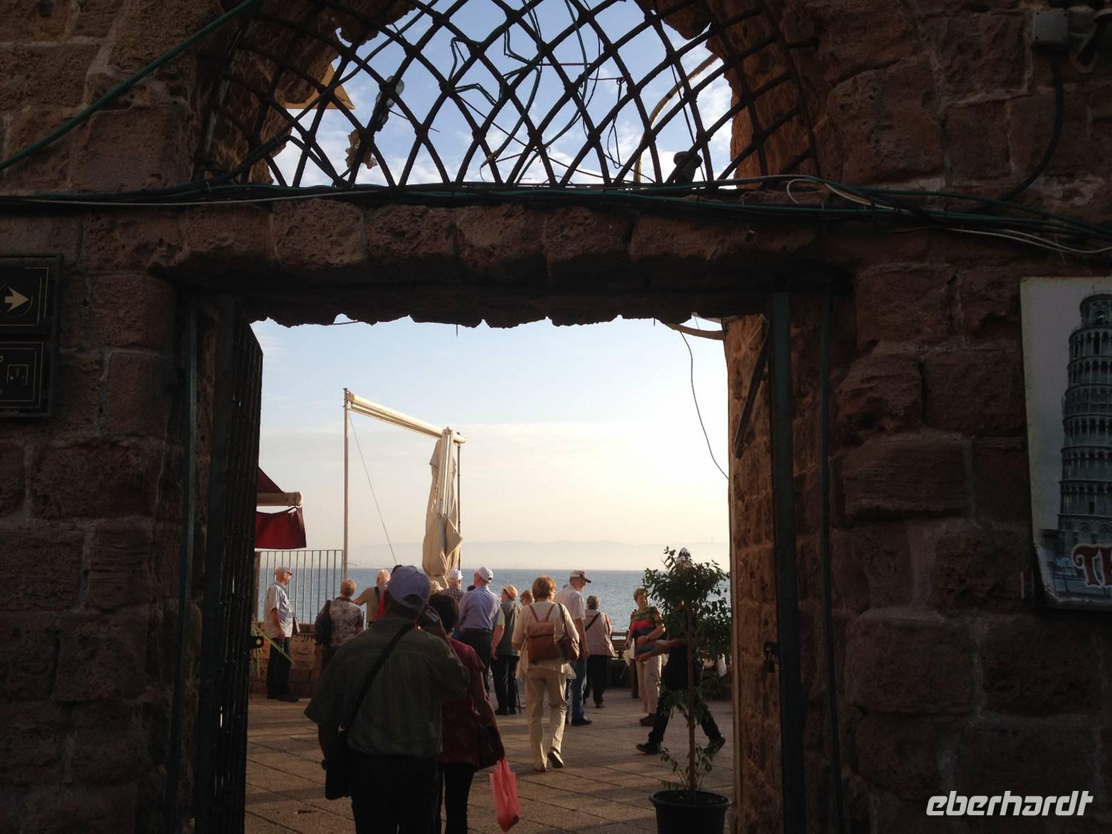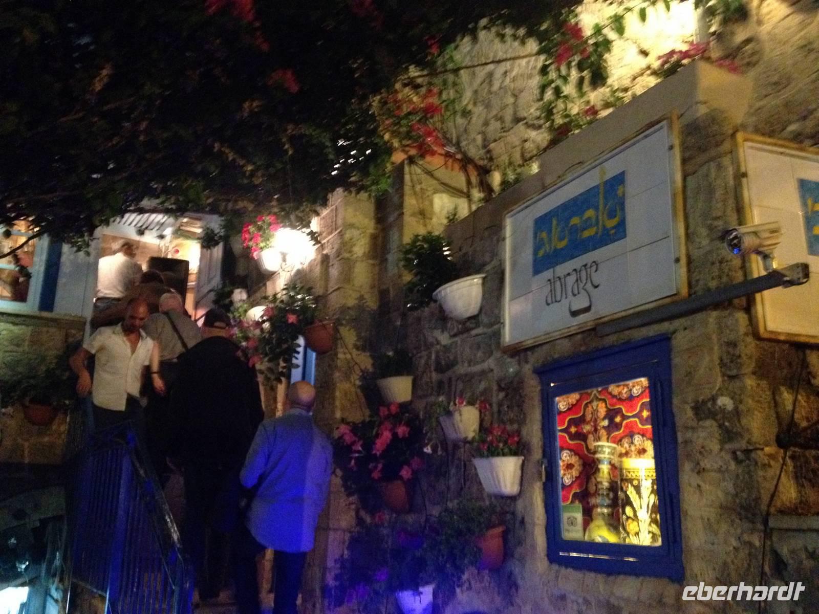 Die von uns bestellten Taxen brachten uns in die seit der Antike existierende Hafenstadt Alt-Jaffa zum Restaurant „Abrage" inmitten der Fußgängerzone und neben der Kirche des Heiligen Petrus. In einem tollen Ambiente wurden wir kulinarisch vom feinsten verwöhnt. Herrliche Salate, israelische und arabische Vorspeisen, typisch jüdische Fleisch- und Fischgerichte und natürlich leckeren israelischen Wein bescherten uns einen schönen Abend nach der langen Anreise.