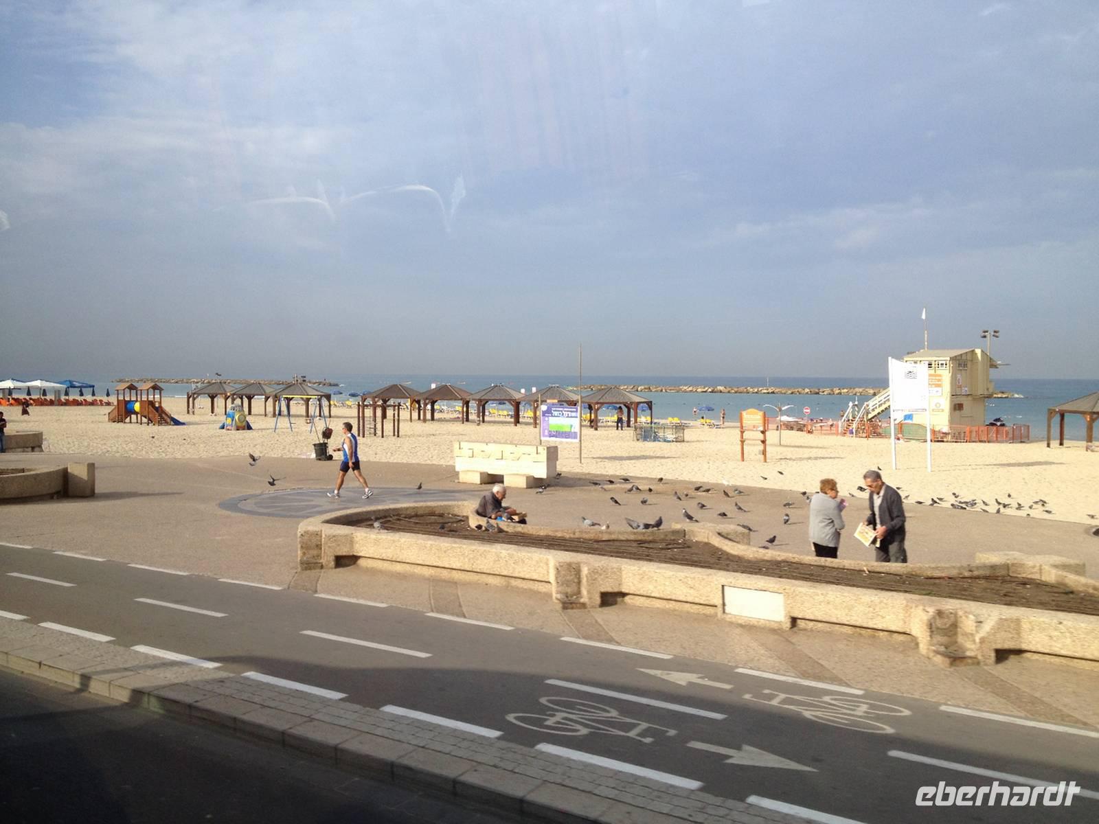 Nachdem einige Gäste schon mit dem Taxi zum Hotel zurückgefahren waren, unternahm der Rest noch einen kleinen Spaziergang am Strand und ließ das moderne und lebendige Tel Aviv auf sich wirken.