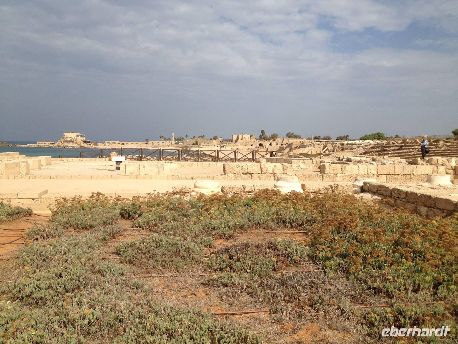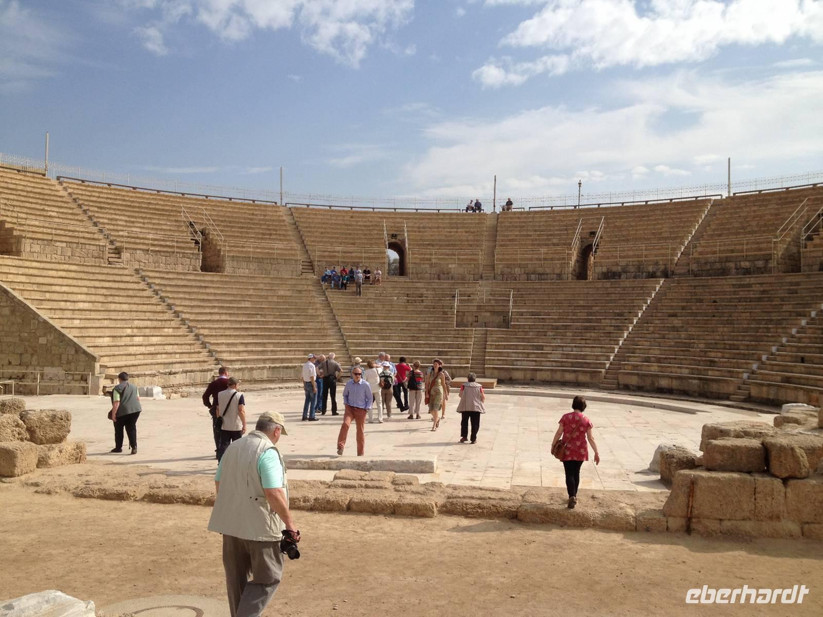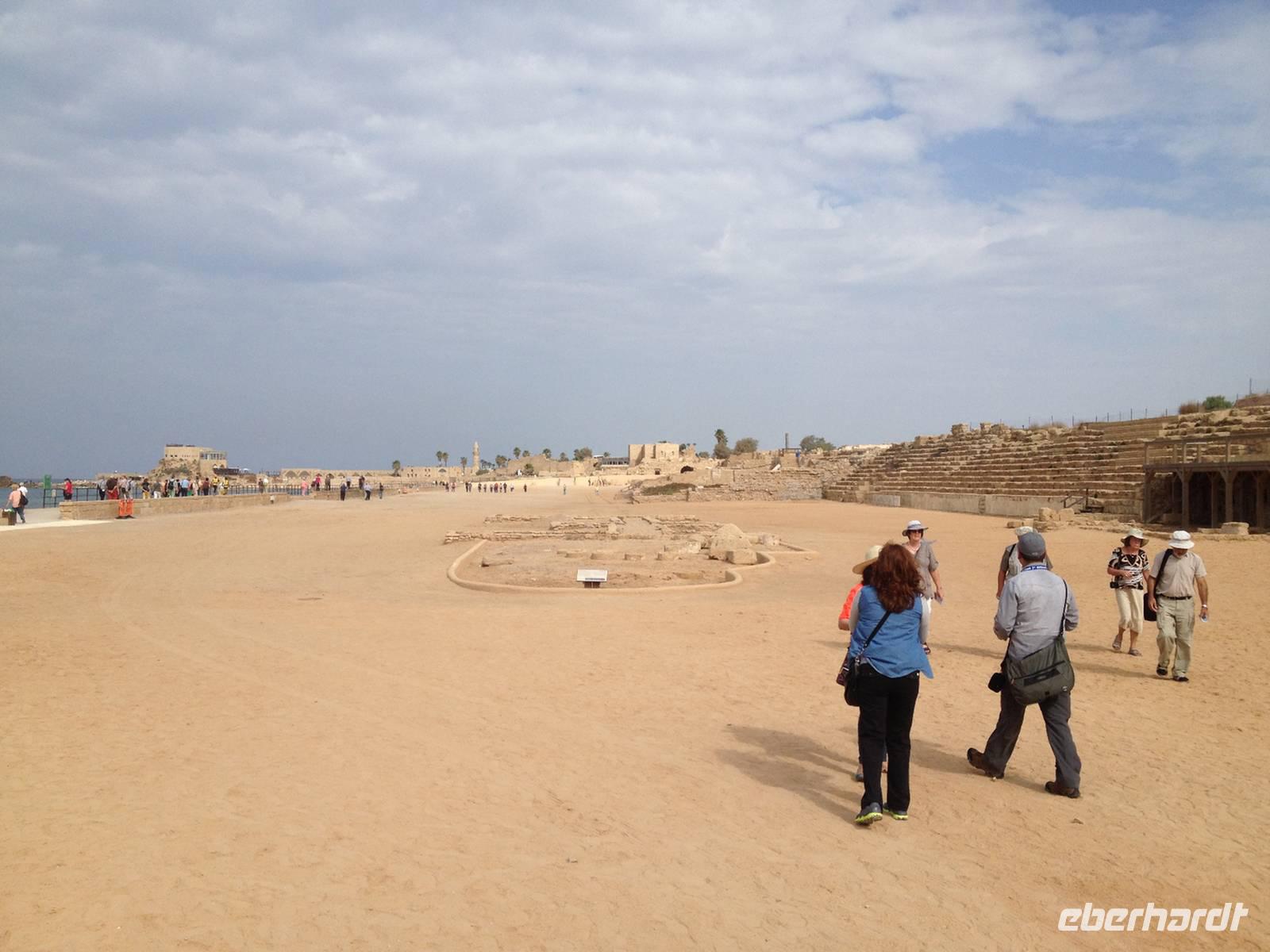 Die Zeit verging wie im Fluge und wir erreichten eine der bedeutendsten archäologischen Stätten Israels - Caesarea. 500 Jahre lang war Caesarea die Hauptstadt des römischen Judäa, die einst zu Ehren Kaiser Augustus (Caesar) errichtet wurde, dann Residenz von Pontius Pilatus war und anschließend von Titus Flavius Vespasian im Jahr seiner Kaiserkrönung zu Königsstadt ernannt wurde. Nach Zeiten der Auseinandersetzungen wurde Caesarea schließlich durch die Araber erobert, dann durch die Kreuzritter gestürmt, später von Saladin zerstört, von Richard Löwenherz wieder aufgebaut und von den Mameluken erobert, bevor Sultan Ashraf Khalil die Stadt endgültig dem Erdboden gleich machte. Doch die wirtschaftliche, kulturelle und intellektuelle Blütezeit spüren die Besucher heute noch! Nach einem kurzen Einführungsfilm unternahmen wir einen ausführlichen und sehr interessanten Rundgang. Das Römische Bad, das gigantische Hippodrom, das ehemalige Forum und das gewaltige Amphitheater waren nur einige Highlights.