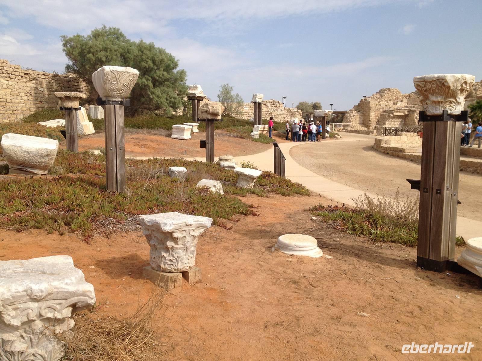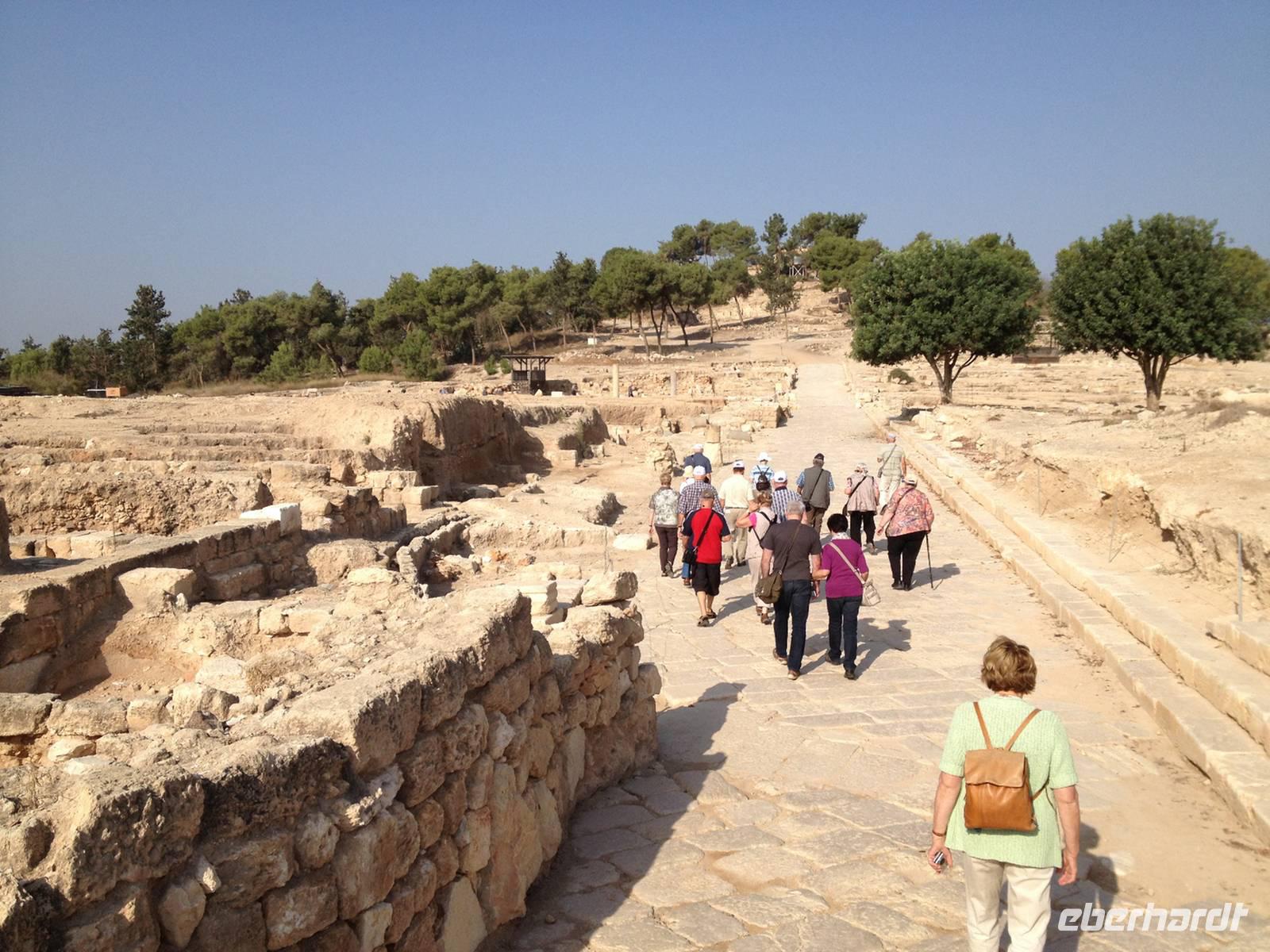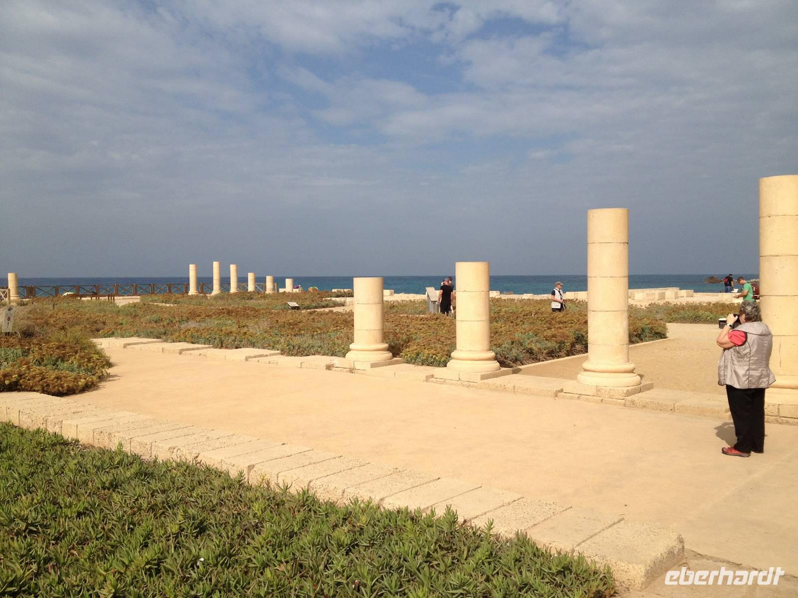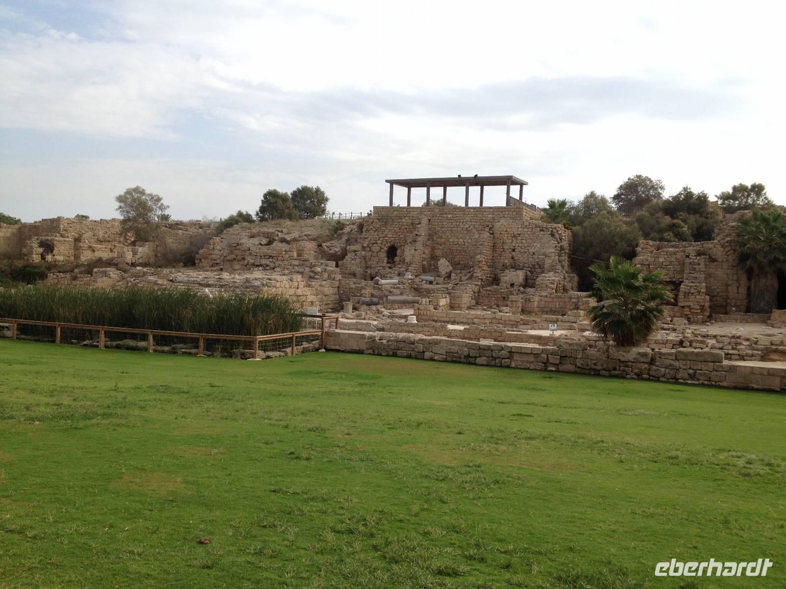 Die Zeit verging wie im Fluge und wir erreichten eine der bedeutendsten archäologischen Stätten Israels - Caesarea. 500 Jahre lang war Caesarea die Hauptstadt des römischen Judäa, die einst zu Ehren Kaiser Augustus (Caesar) errichtet wurde, dann Residenz von Pontius Pilatus war und anschließend von Titus Flavius Vespasian im Jahr seiner Kaiserkrönung zu Königsstadt ernannt wurde. Nach Zeiten der Auseinandersetzungen wurde Caesarea schließlich durch die Araber erobert, dann durch die Kreuzritter gestürmt, später von Saladin zerstört, von Richard Löwenherz wieder aufgebaut und von den Mameluken erobert, bevor Sultan Ashraf Khalil die Stadt endgültig dem Erdboden gleich machte. Doch die wirtschaftliche, kulturelle und intellektuelle Blütezeit spüren die Besucher heute noch! Nach einem kurzen Einführungsfilm unternahmen wir einen ausführlichen und sehr interessanten Rundgang. Das Römische Bad, das gigantische Hippodrom, das ehemalige Forum und das gewaltige Amphitheater waren nur einige Highlights.