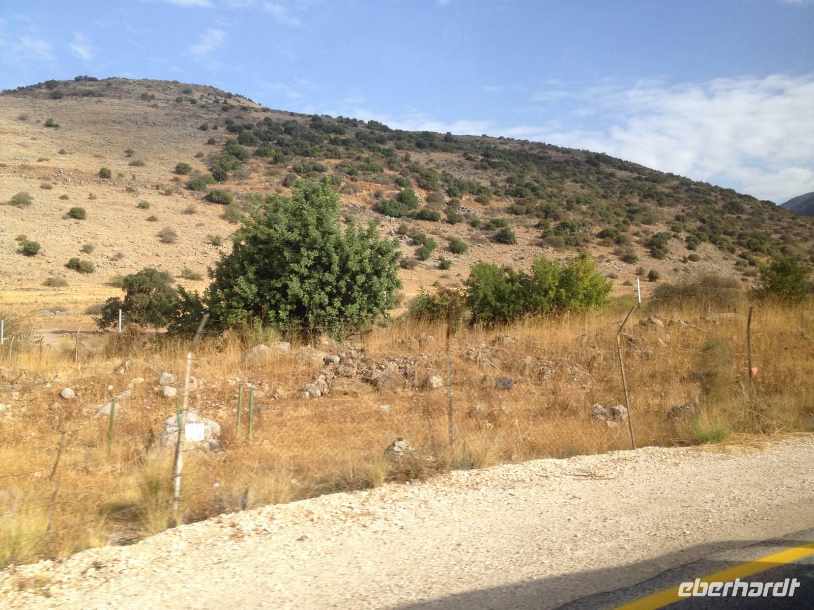 Wir erreichten nun schon die Golanhöhen. Spricht man heute in Deutschland über diesen Landstrich, hört man Wörter wie „Krieg", „Auseinandersetzungen", „Angriff", „Beschuss" und „Syrienkrise" in jedem Satz. Die unverwechselbare Schönheit dieser Landschaft wird dabei aber immer wieder vergessen. Und dass es hier keinesfalls gefährlich ist, davon überzeugten wir uns selbst.