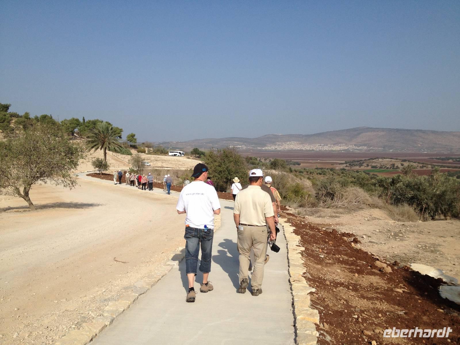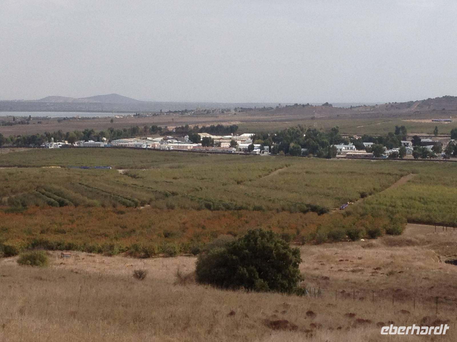 Auf unserer Rundfahrt durch die Golanhöhen kamen wir durch kleine Drusendörfer, vorbei an landwirtschaftlichen Flächen und Obstplantagen. Natürlich sprachen wir über Themen wie die Friedensverträge, die Beziehungen von Israel zu Jordanien und Syrien und klärten die gesamte Geografie des Landes. Oberhalb des UN-Camps an der Pufferzone zwischen Israel und Syrien legten wir einen Stopp ein. Hier wurden auch die schmackhaften Äpfel der Golanhöhen verkauft - ein guter Anlass, Vitamine für die ganze Gruppe zu besorgen.
