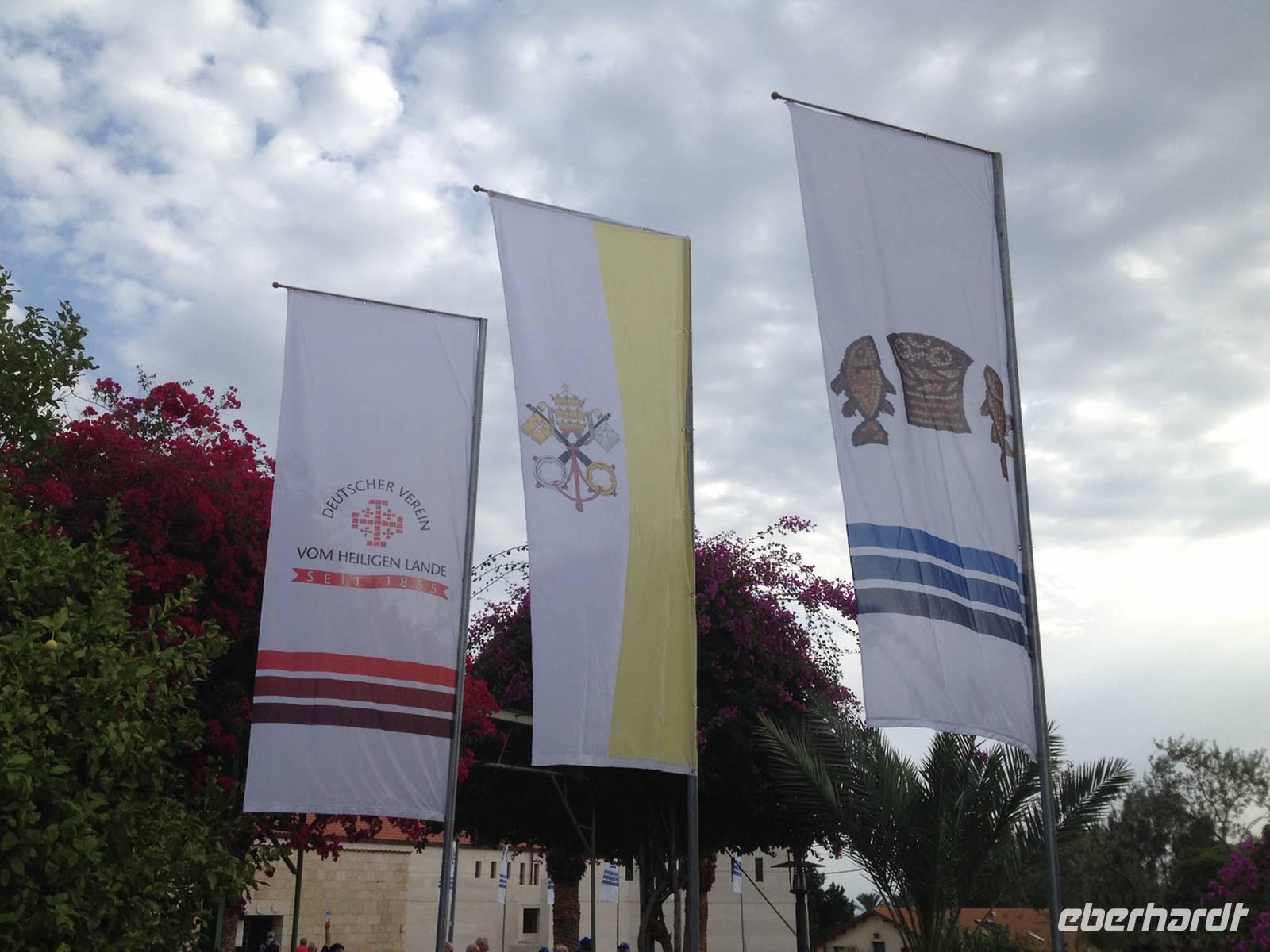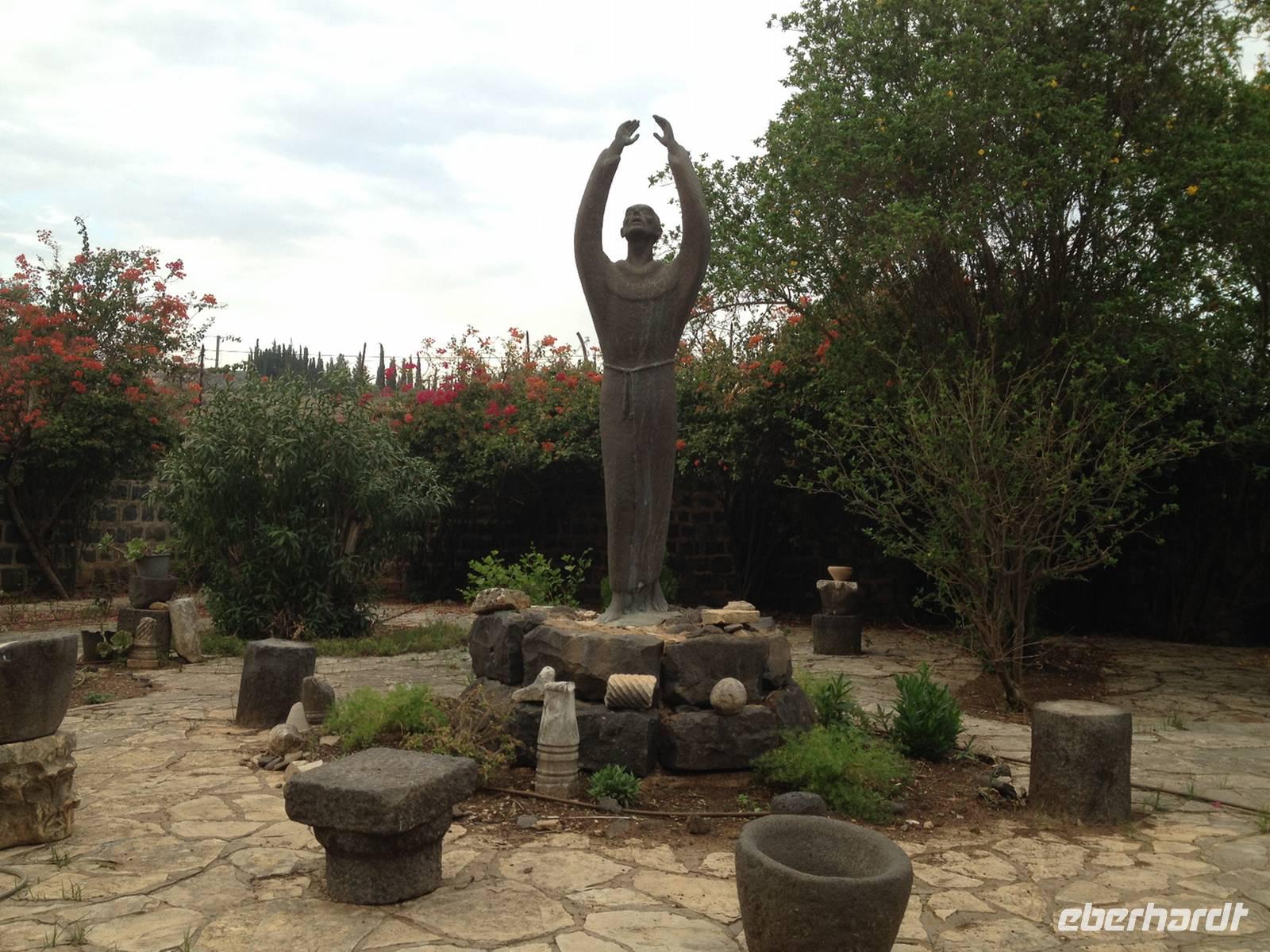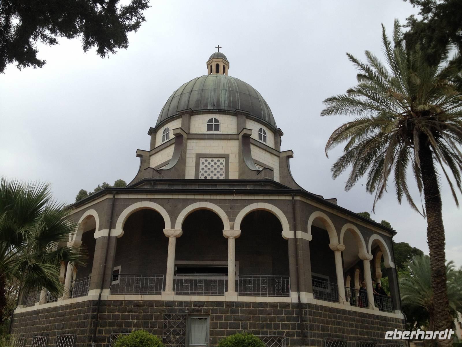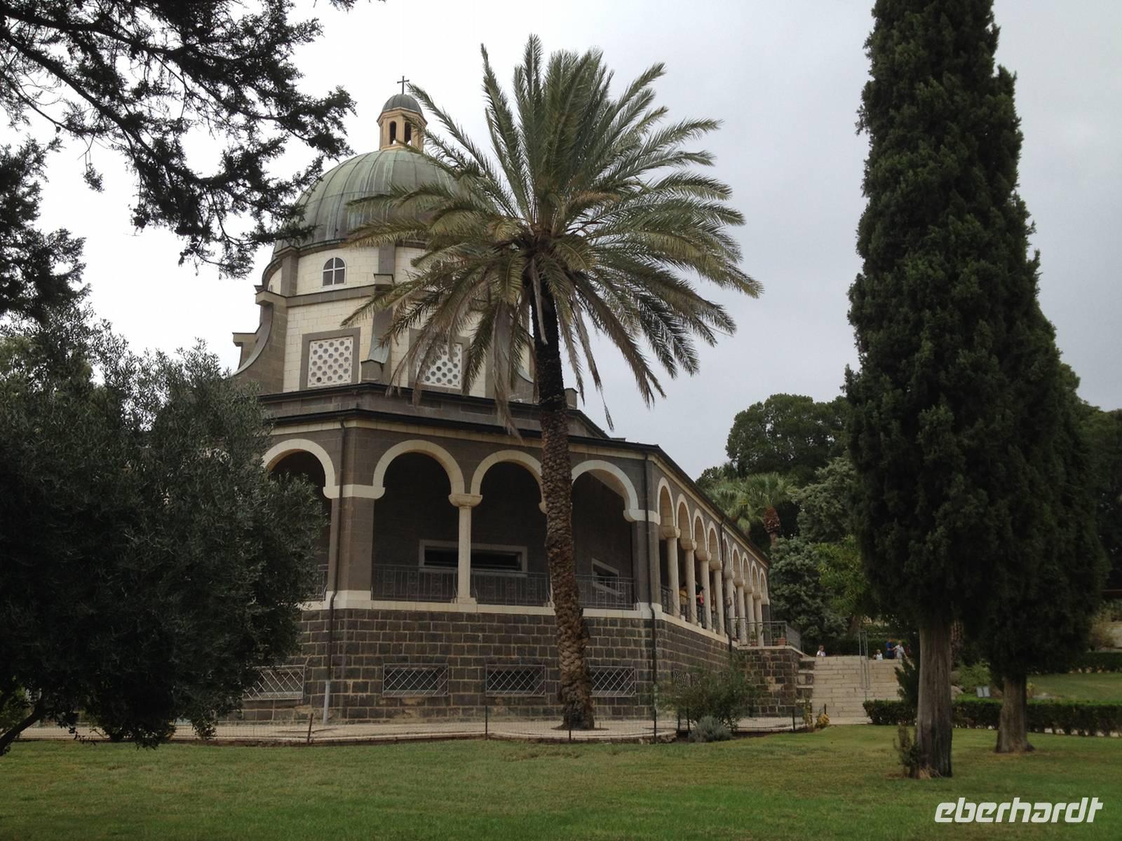 Auf unserem Weg zurück zum See Genezareth machten wir einen Abstecher zum Berg der Seligpreisungen. Seicht erhebt sich dieser vom Nordufer des Sees Genezareth in Richtung Norden, vereinzelt kultiviert mit Bananenplantagen, die sich mit Olivenhainen und Wiesen abwechseln. Dort hielt Jesus der Überlieferung nach seine berühmte Bergpredigt.