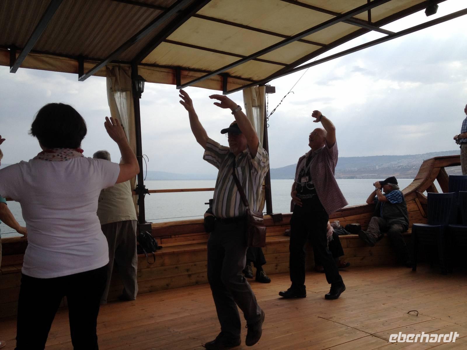 Bei der anschließenden Bootsfahrt über den See Genezareth konnten wir uns die Landschaft rund um den See aus einer ganz anderen Perspektive betrachten und es blieb sogar Zeit für ein kleines Tänzchen.