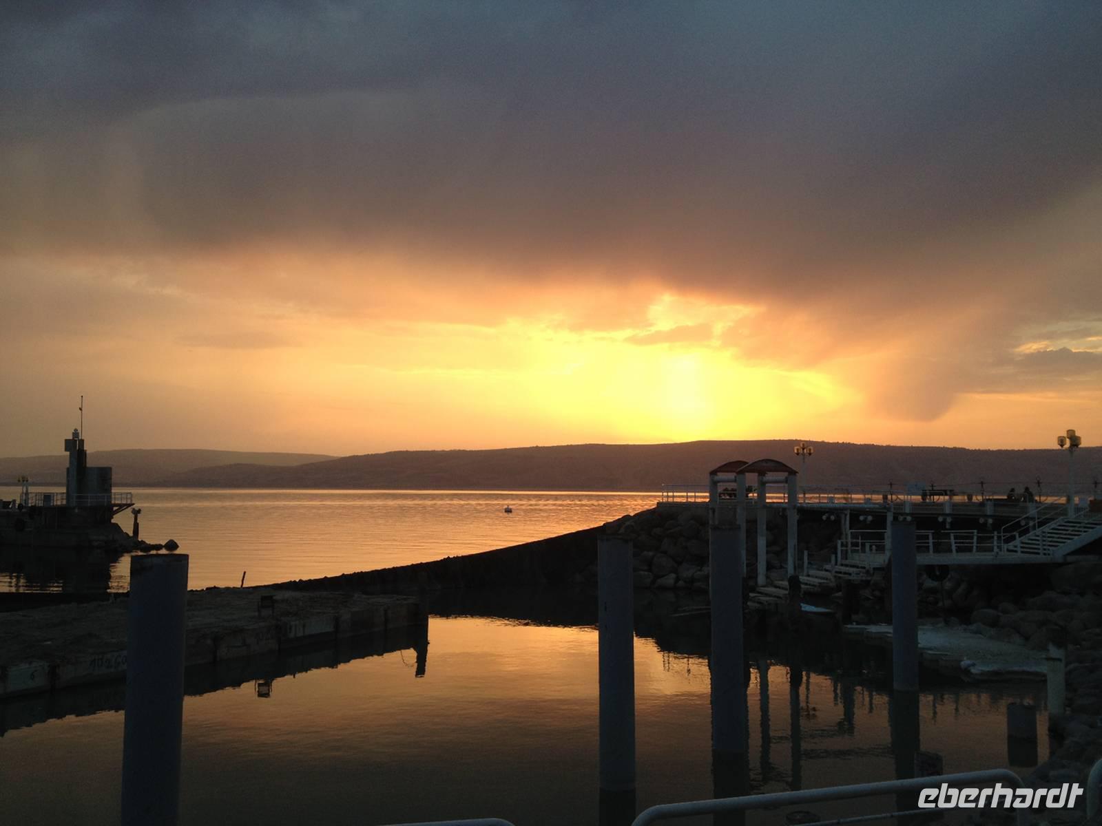 Zum Abschluss des Tages besuchten wir den Kibbutz En Gev und erhielten einen interessanten Einblick in die Olivenölproduktion und die weitere Verwendung der hiesigen Oliven. Natürlich durfte eine Kostprobe des leckeren Öls nicht fehlen. Nach einem herrlichen Sonnenuntergang am See ging es zurück in unseren Kibbutz, wo wir wieder ein köstliches Abend-Buffet hatten.