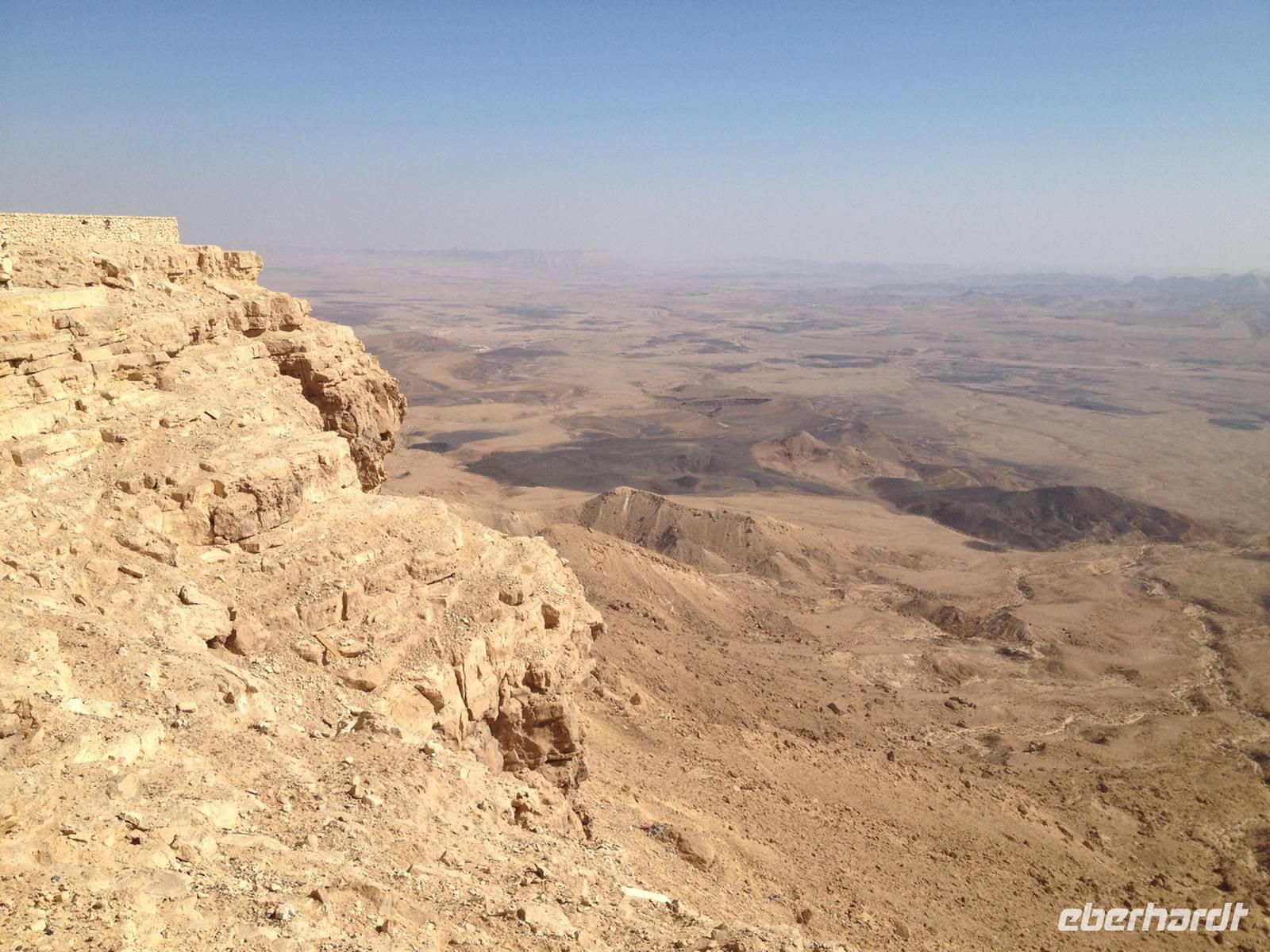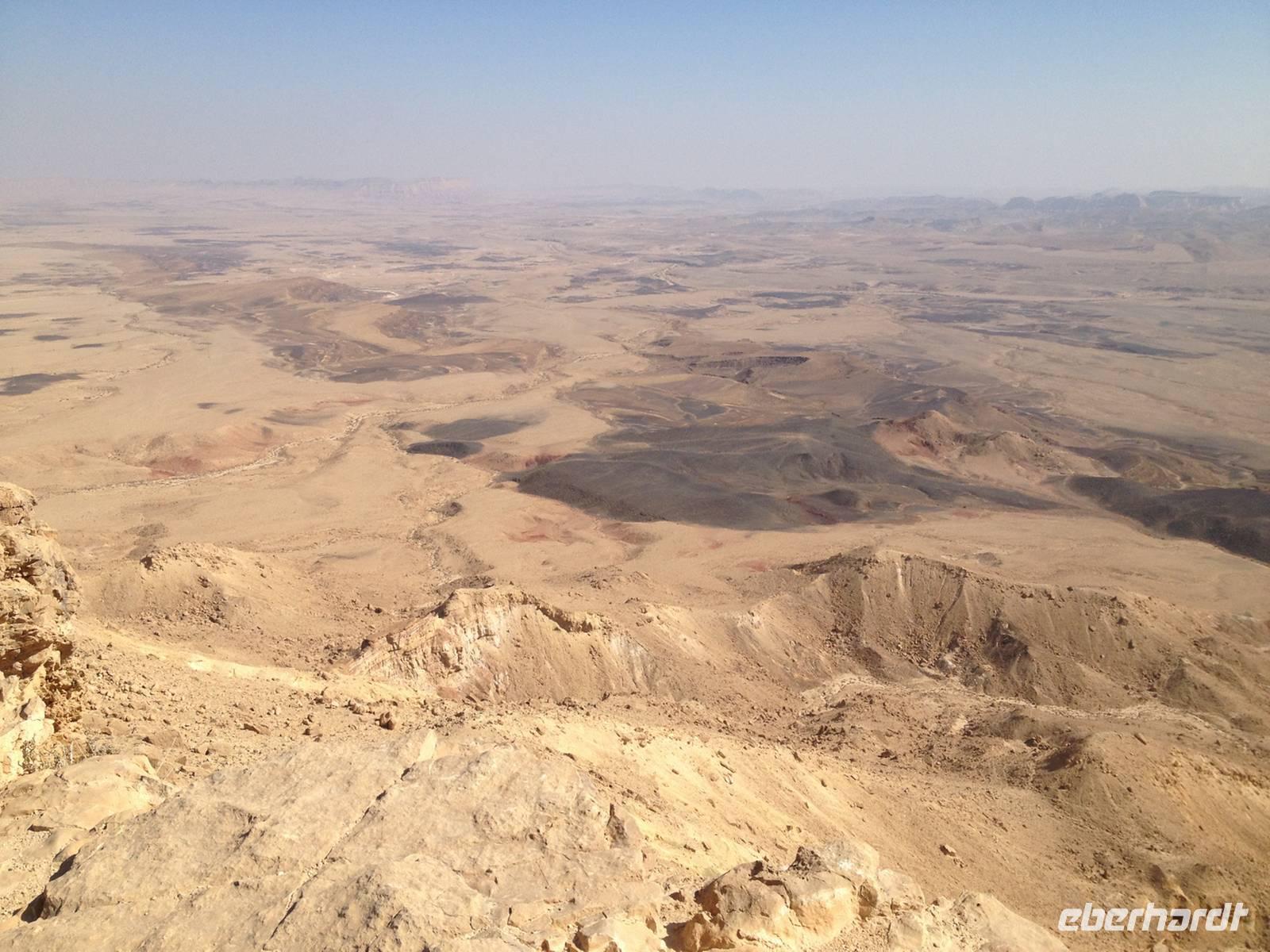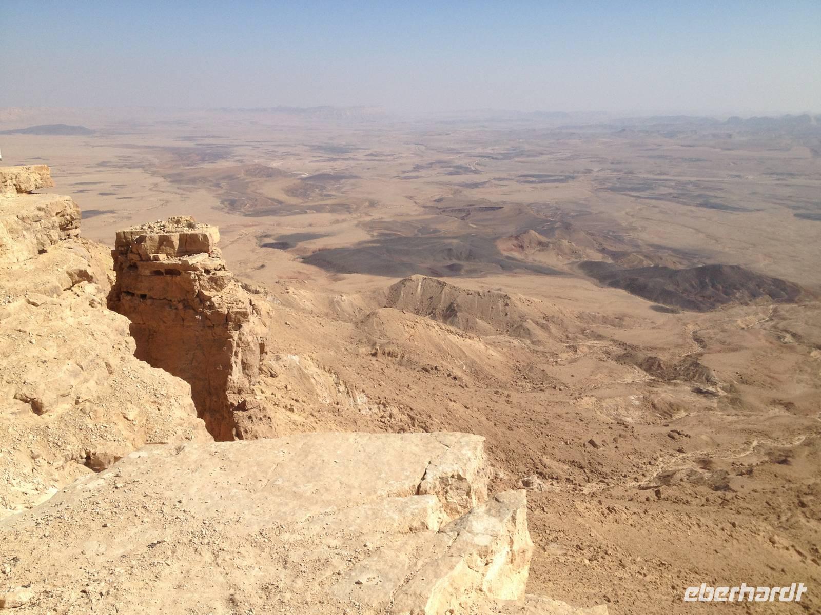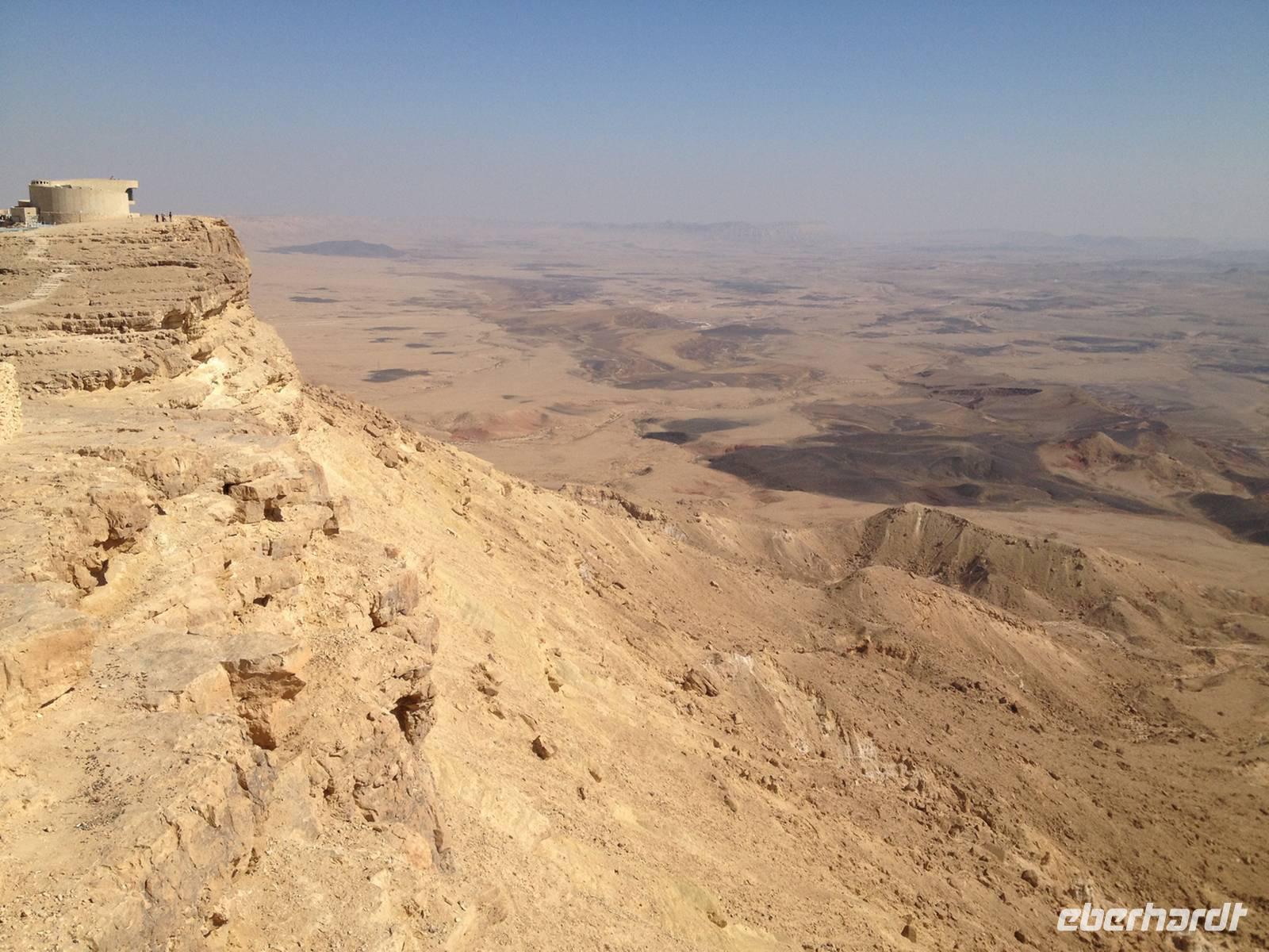In der Mitte der Wüste liegt der gewaltige Ramonkrater. Mit einem Durchmesser von bis zu 40 Kilometern und einer Tiefe von 1000 Metern zählt er zu den einzigartigen Sehenswürdigkeiten Israels. Wir schlängelten uns die Serpentinenstraße hinauf zum Kraterrand und spazierten diesen entlang bis zu einer Aussichtsplattform. Einfach gigantisch!