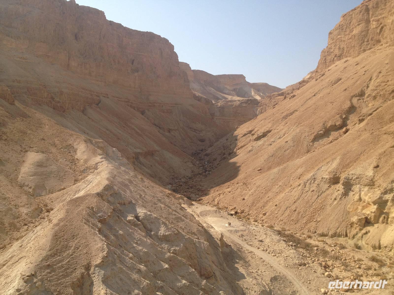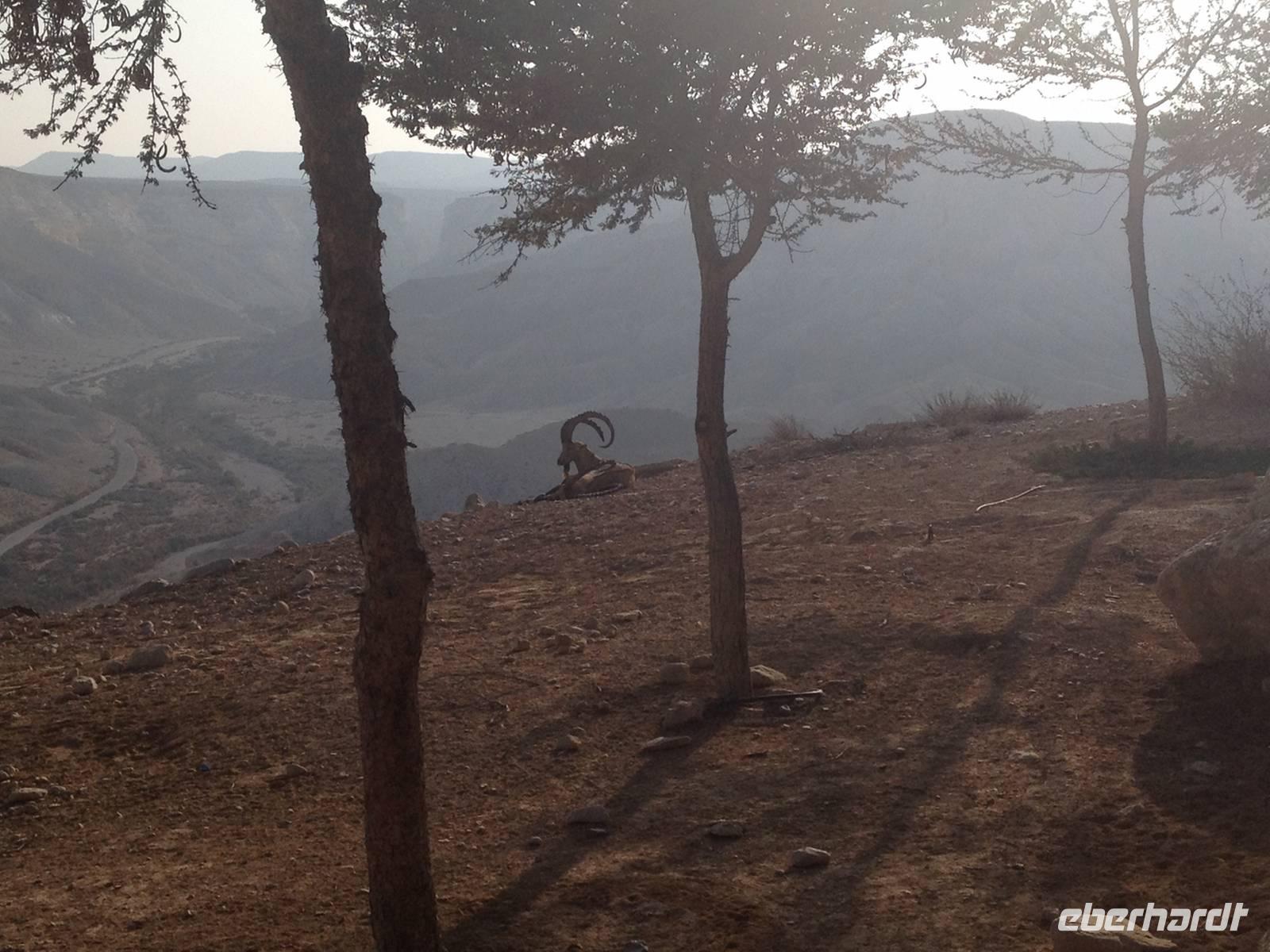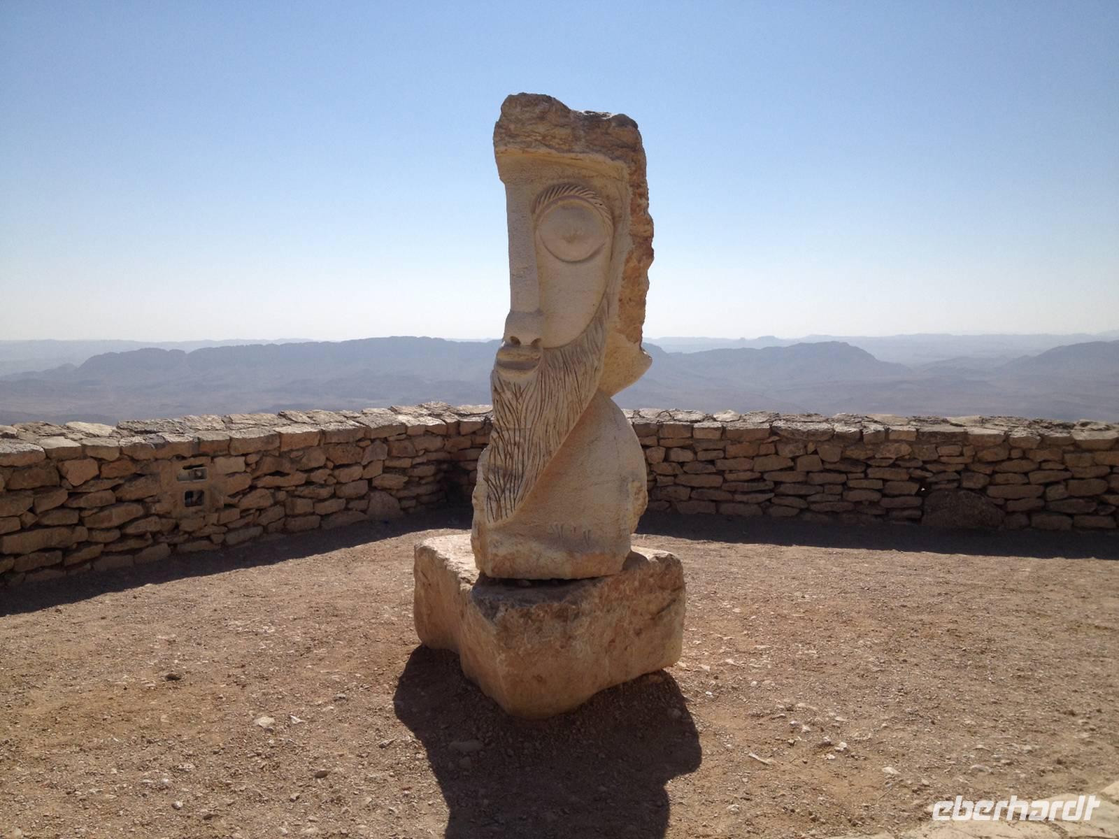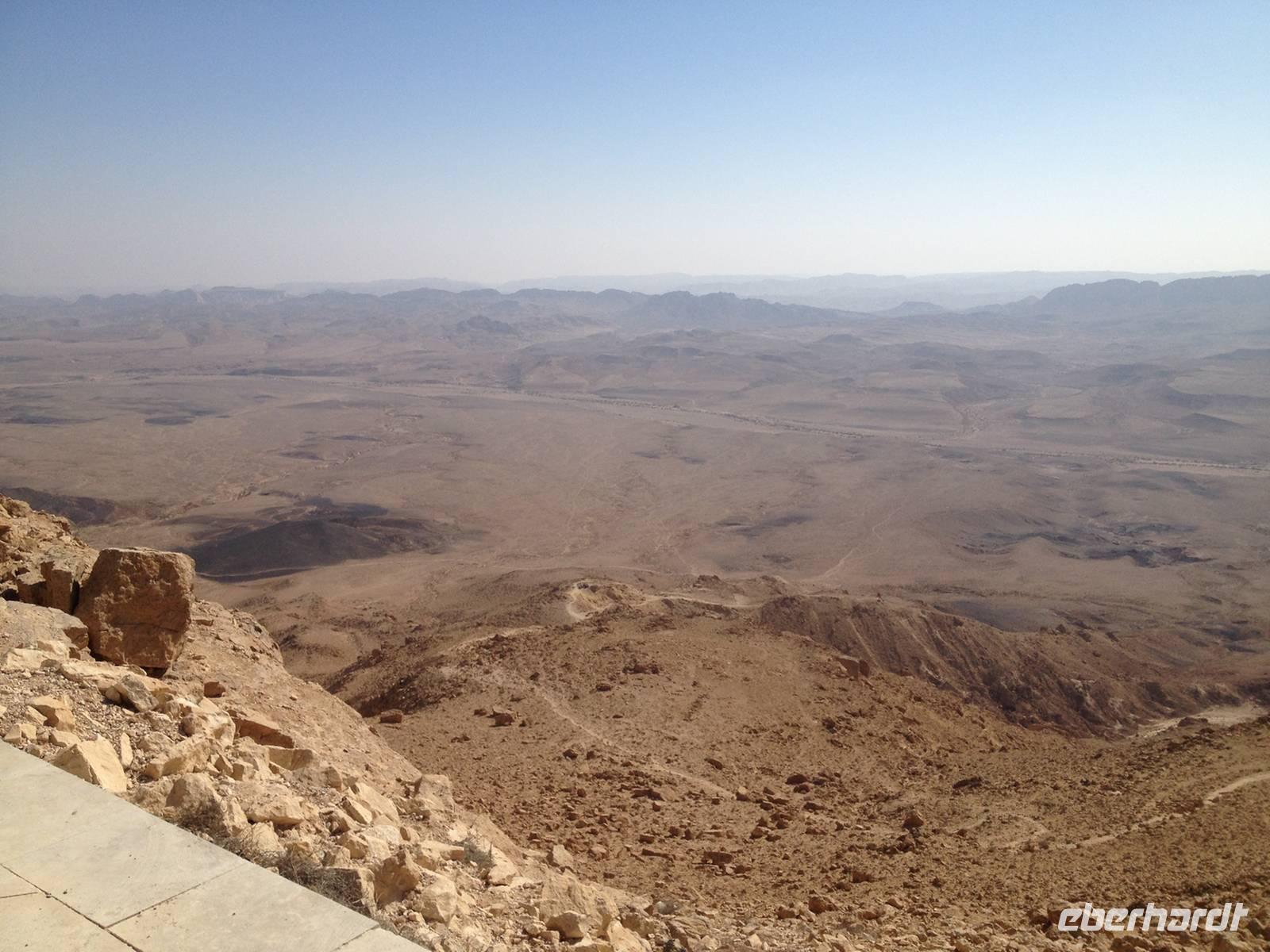 In der Mitte der Wüste liegt der gewaltige Ramonkrater. Mit einem Durchmesser von bis zu 40 Kilometern und einer Tiefe von 1000 Metern zählt er zu den einzigartigen Sehenswürdigkeiten Israels. Wir schlängelten uns die Serpentinenstraße hinauf zum Kraterrand und spazierten diesen entlang bis zu einer Aussichtsplattform. Einfach gigantisch!