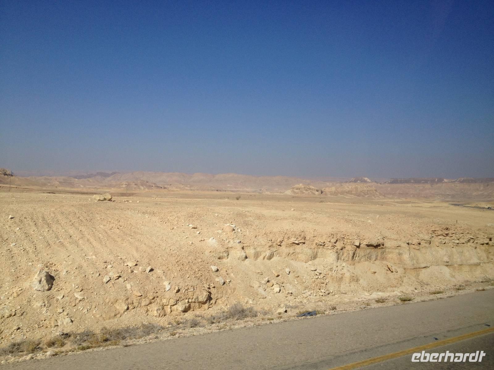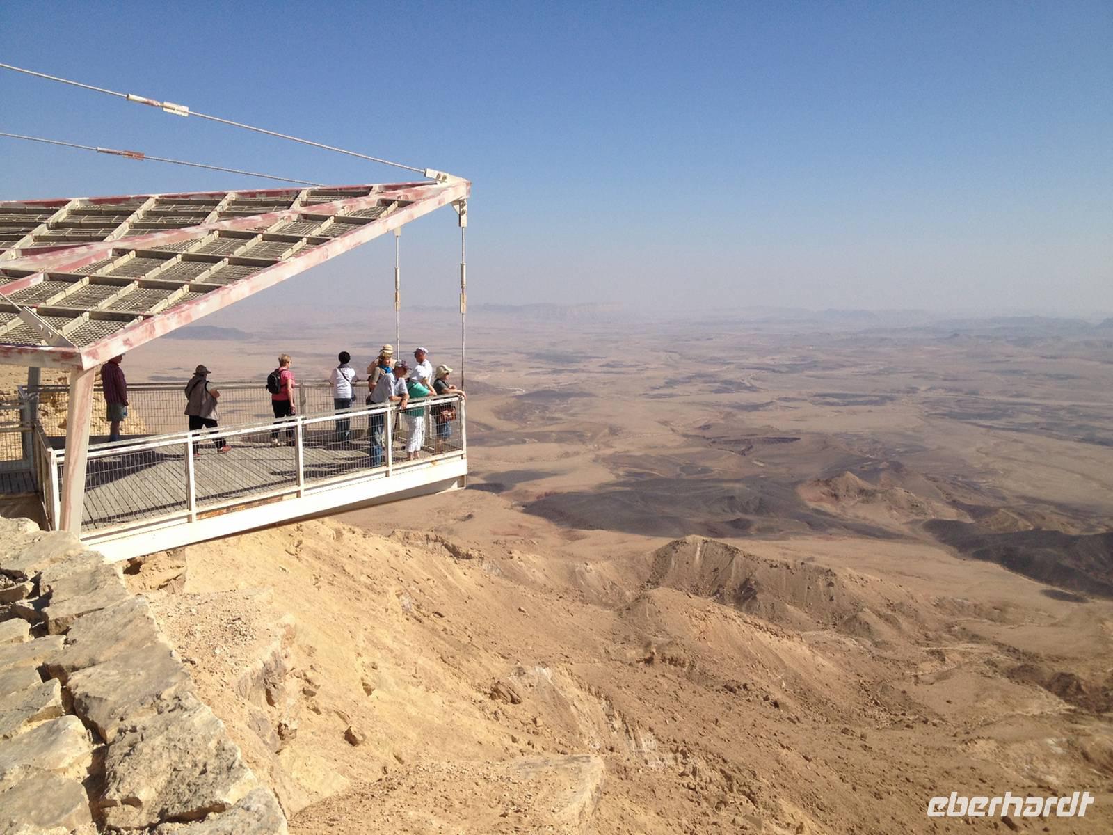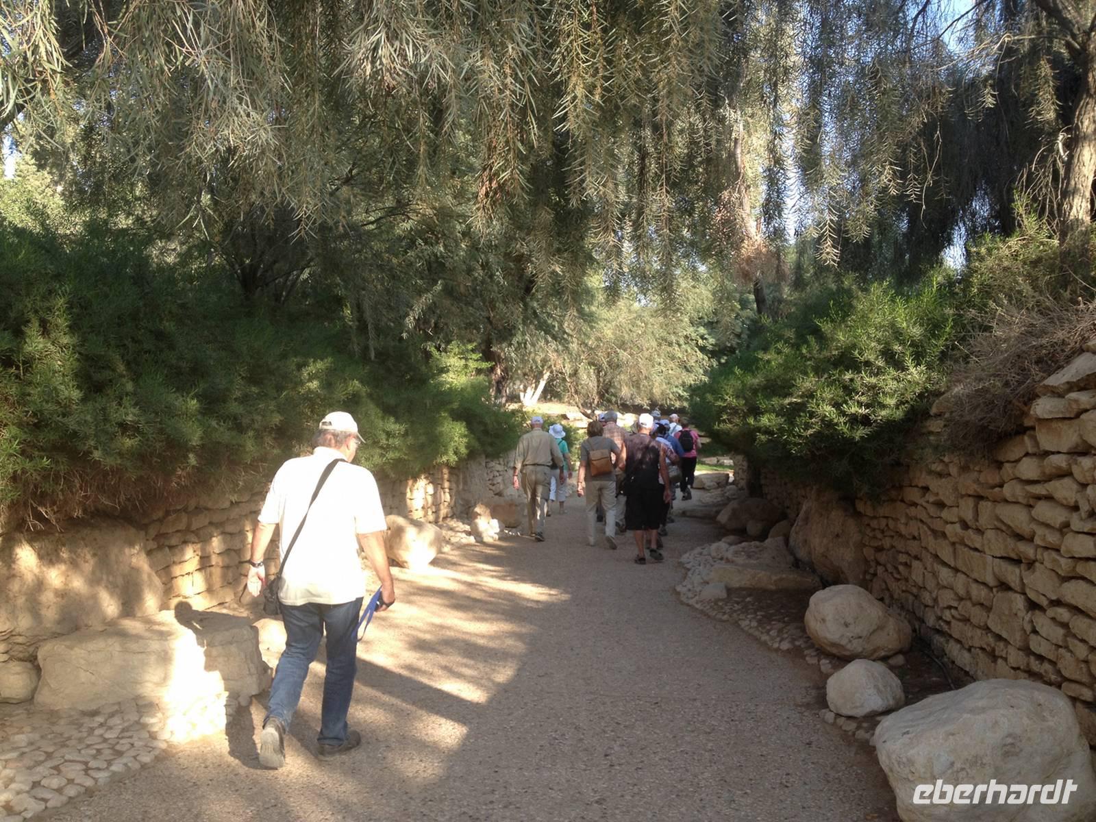 Obwohl die Negev-Wüste eigentlich zu Israels unfruchtbarsten Gebieten gehört, findet man hier viele Weinberge. Dass hier überhaupt von einer Weinbauregion gesprochen werden kann, liegt an der ungeheuren Anstrengung der ansässigen Winzer, unter ständiger Berieselung der Wüste kleine fruchtbare Oasen abzuringen, in denen auch widerstandsfähige Trauben gedeihen können. Trotz der widrigen Umstände findet hier also Weinbau statt und führt zu Ergebnissen, die zwar erstaunen, für den internationalen Markt aber nicht ausreichend sind, zumindest noch nicht. Auf der „Boker Valley Vineyards Farm" legten wir einen kleinen Stopp ein, kosteten den hier selbst angebauten Wein und erhielten viele Informationen des Winzers. Eine kleine Überraschung von Eberhardt TRAVEL, die sehr gut ankam.