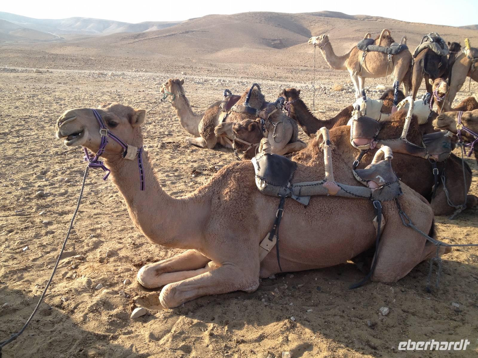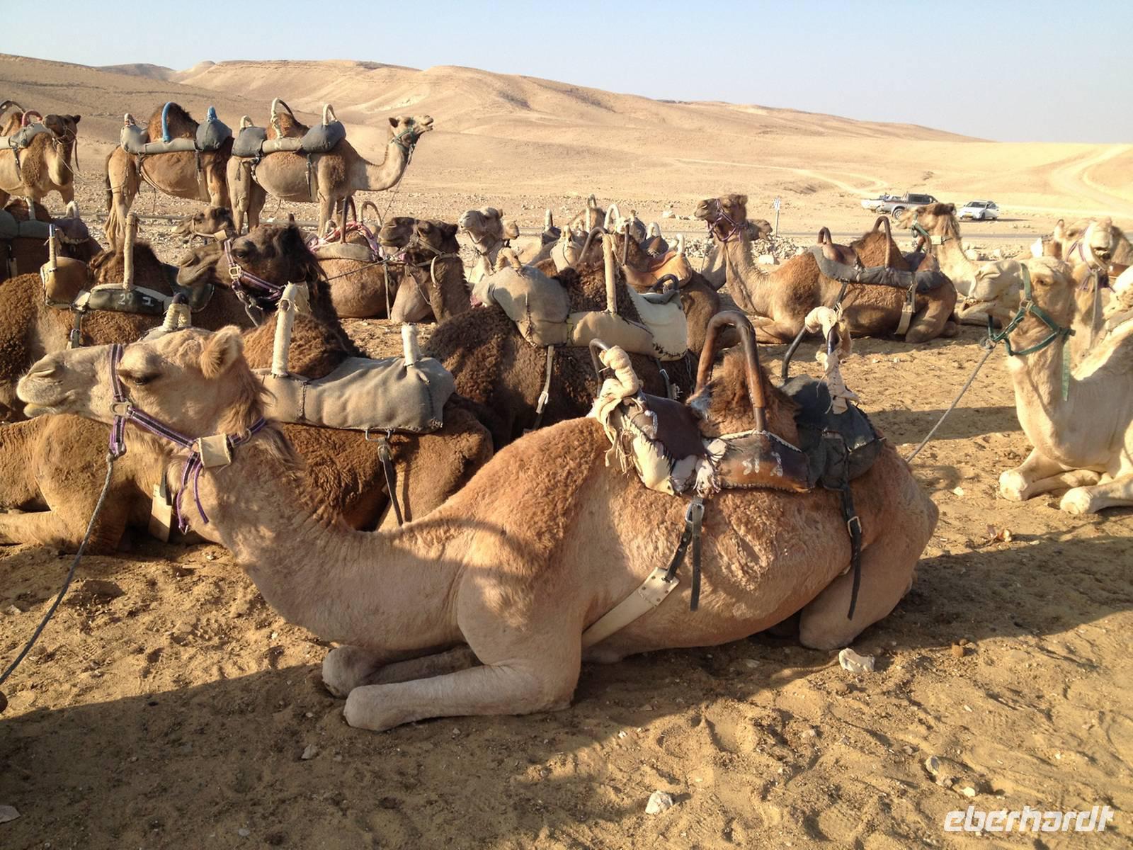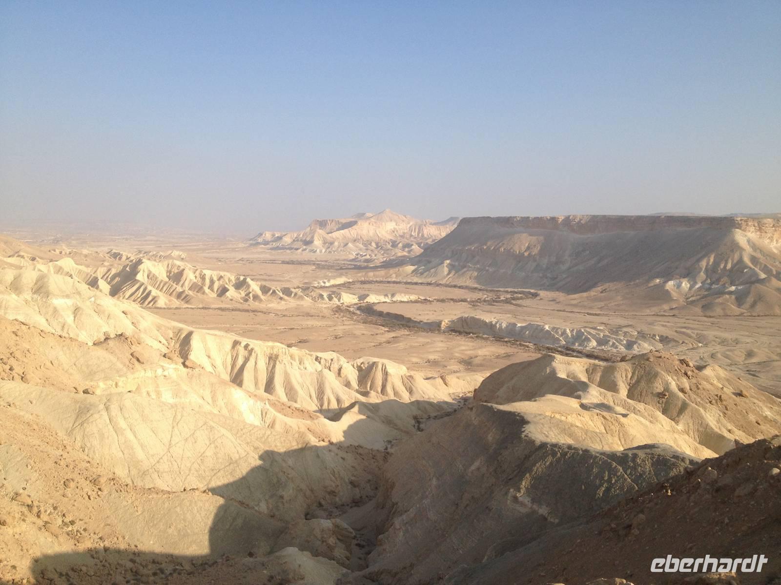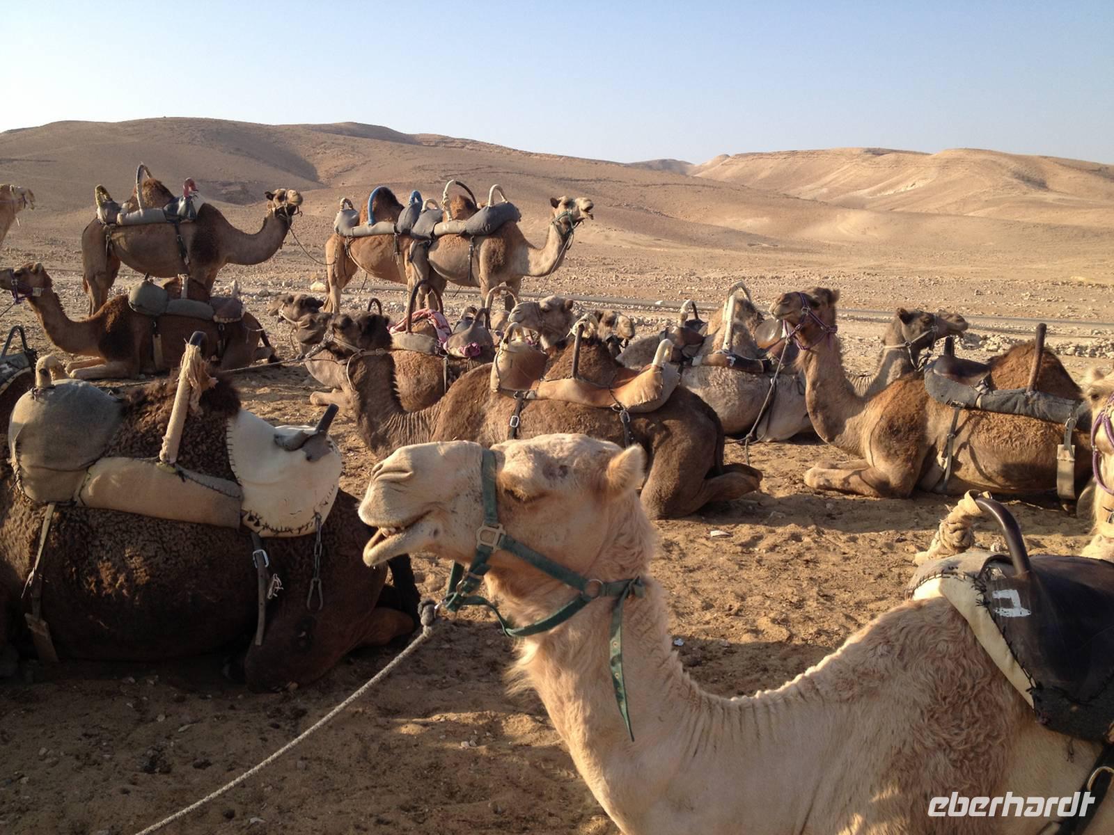 Obwohl die Negev-Wüste eigentlich zu Israels unfruchtbarsten Gebieten gehört, findet man hier viele Weinberge. Dass hier überhaupt von einer Weinbauregion gesprochen werden kann, liegt an der ungeheuren Anstrengung der ansässigen Winzer, unter ständiger Berieselung der Wüste kleine fruchtbare Oasen abzuringen, in denen auch widerstandsfähige Trauben gedeihen können. Trotz der widrigen Umstände findet hier also Weinbau statt und führt zu Ergebnissen, die zwar erstaunen, für den internationalen Markt aber nicht ausreichend sind, zumindest noch nicht. Auf der „Boker Valley Vineyards Farm" legten wir einen kleinen Stopp ein, kosteten den hier selbst angebauten Wein und erhielten viele Informationen des Winzers. Eine kleine Überraschung von Eberhardt TRAVEL, die sehr gut ankam.