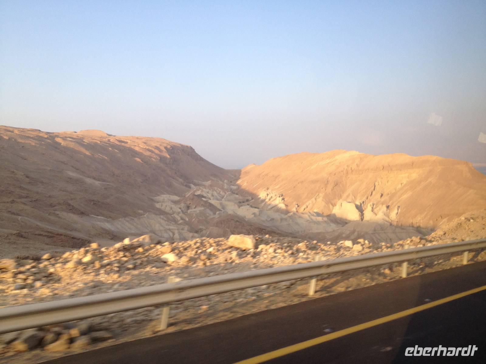 Durch eine bizarre Landschaft am Rande des Toten Meeres fuhren wir zurück zu unserem Kibbutz Kalia, in dem wir den Abend gemütlich ausklingen ließen.