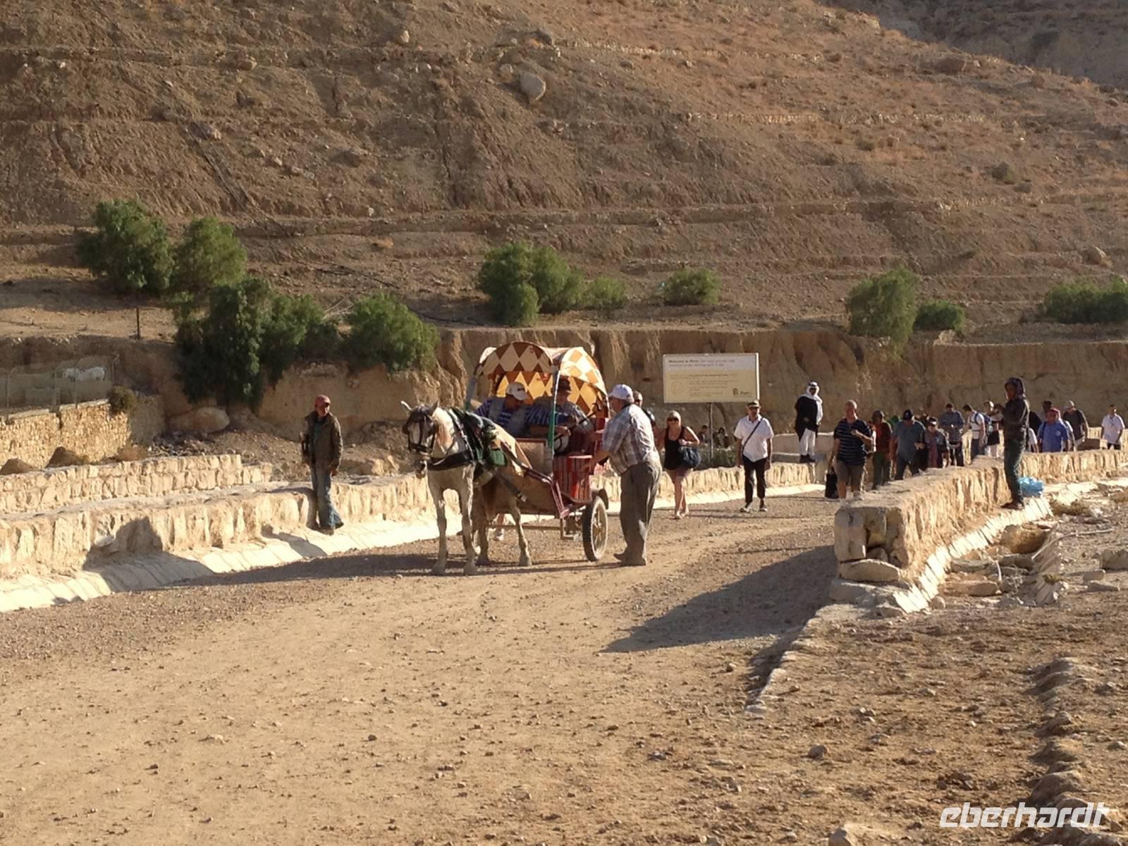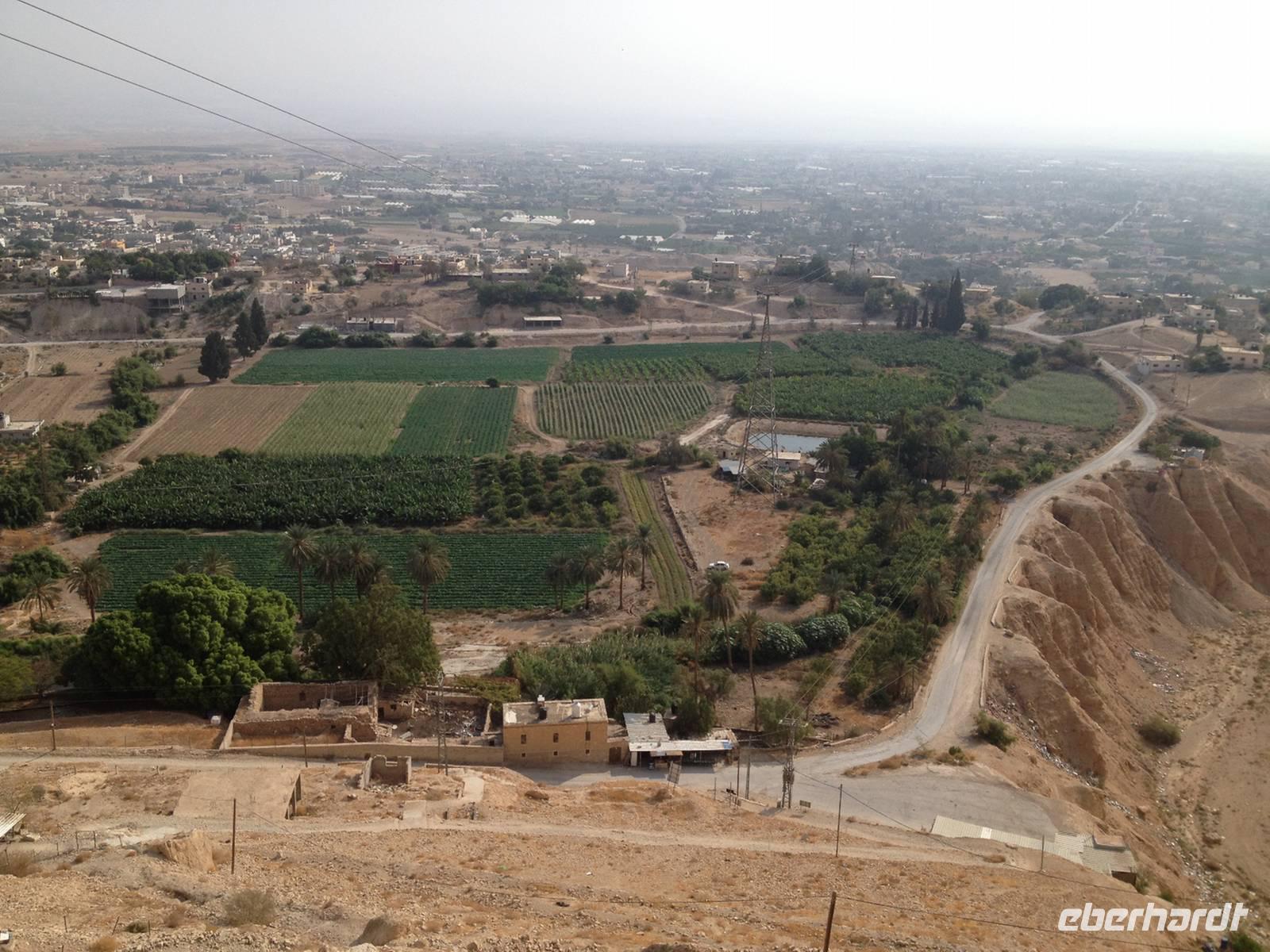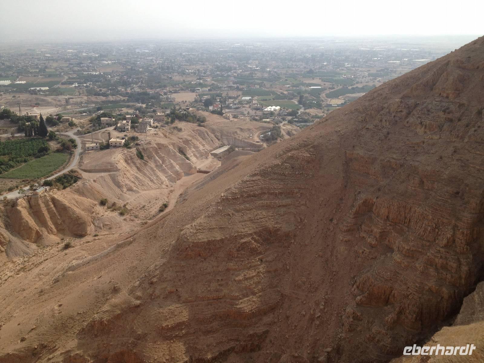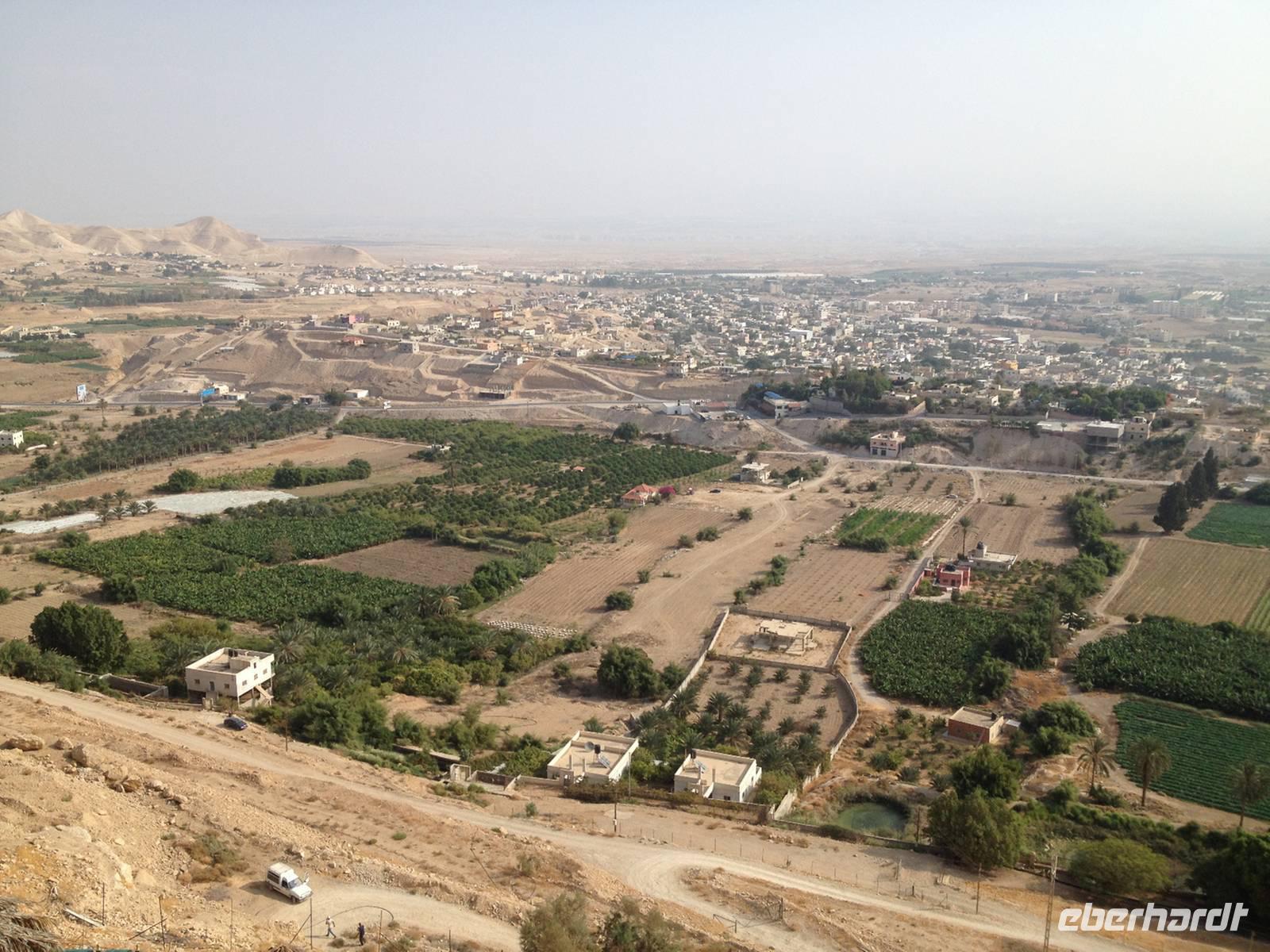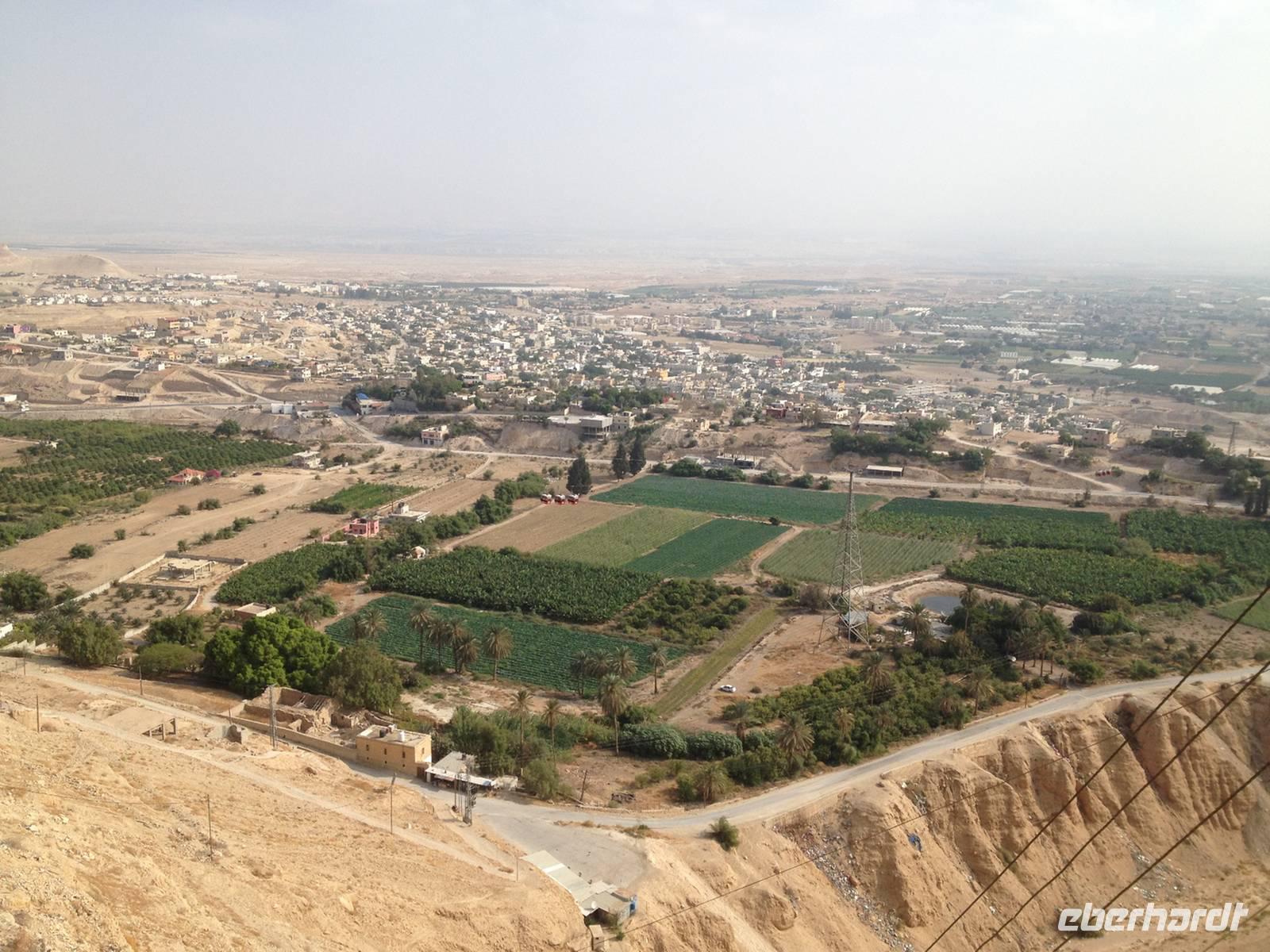 Heute machten wir uns auf Suche nach der Antwort, warum die Trompeten von Jericho die Stadtmauern einstürzen ließen. Auf dem Weg in die 395 m unter dem Meeresspiegel liegende Stadt erfahren wir schon viel Interessantes über die seit Mai 1994 von der Palästinensischen Autonomiebehörde regierten, tiefst gelegenste und älteste Siedlung der Welt. Zunächst besuchten wir die Ausgrabungsstätte Tel el Sultan. Hier schlenderten wir auf den Spuren des alten Jerichos, wo Archäologen Reste einer Stadt aus dem 8. Jahrhundert vor Christus stießen.