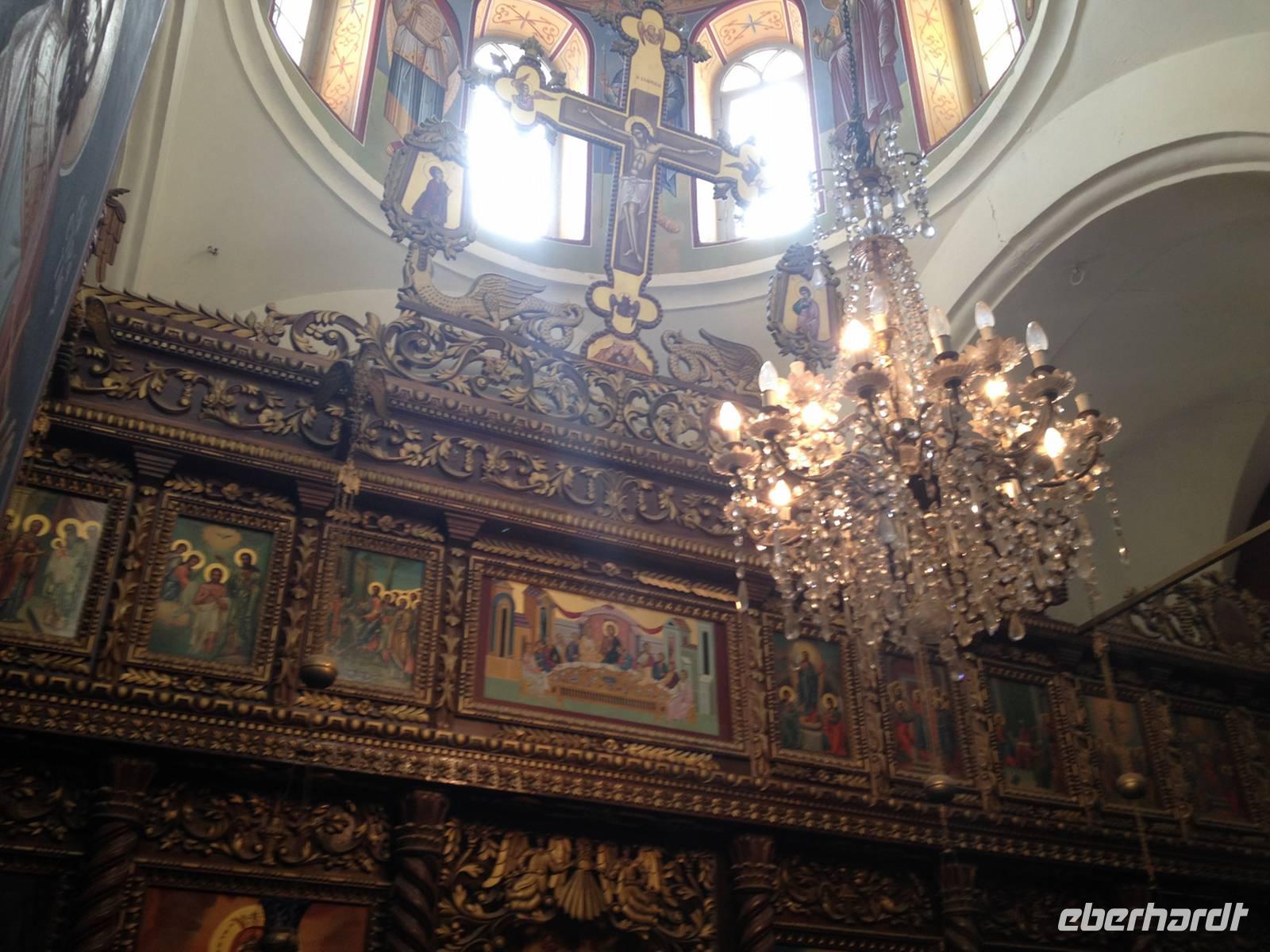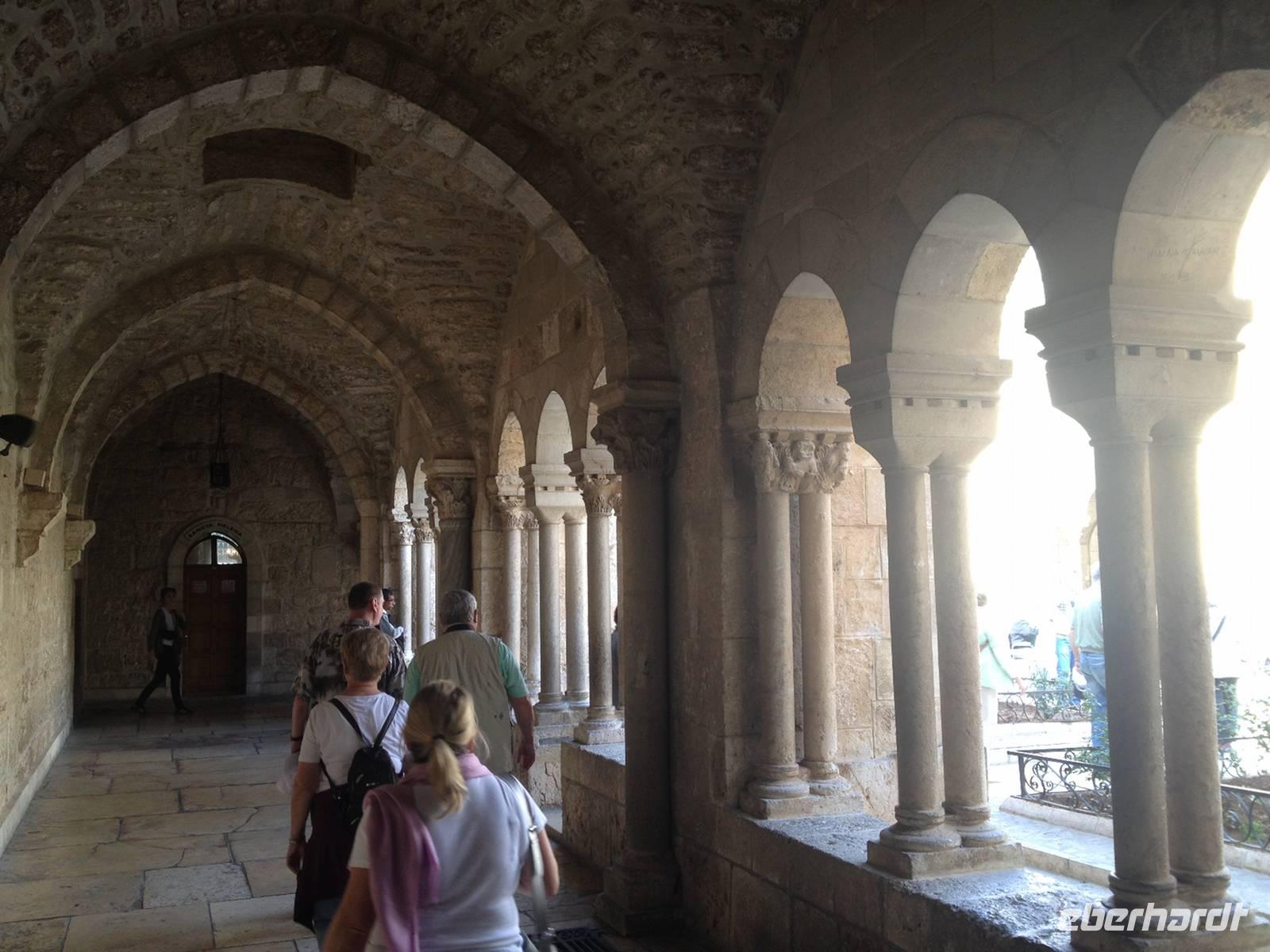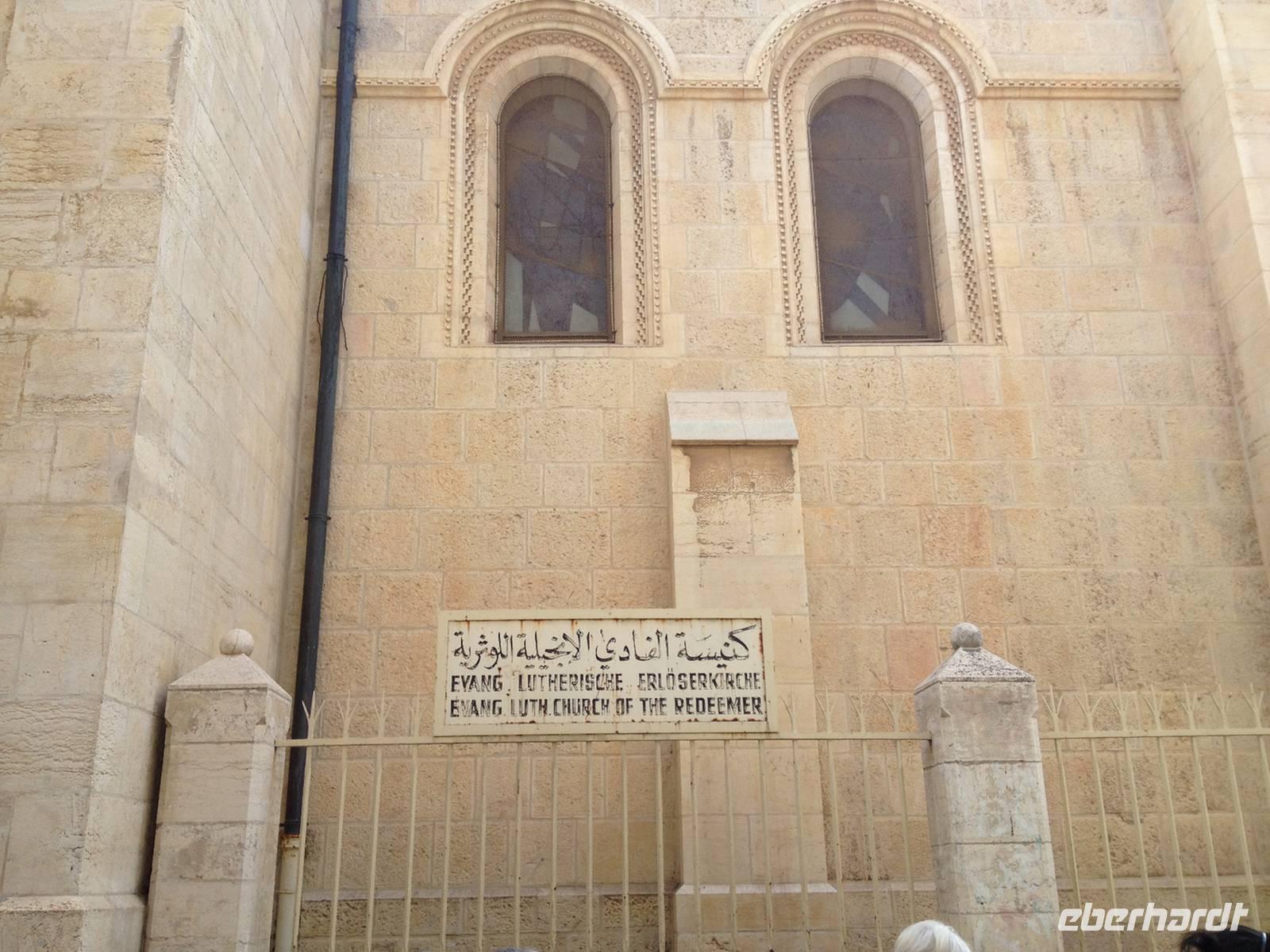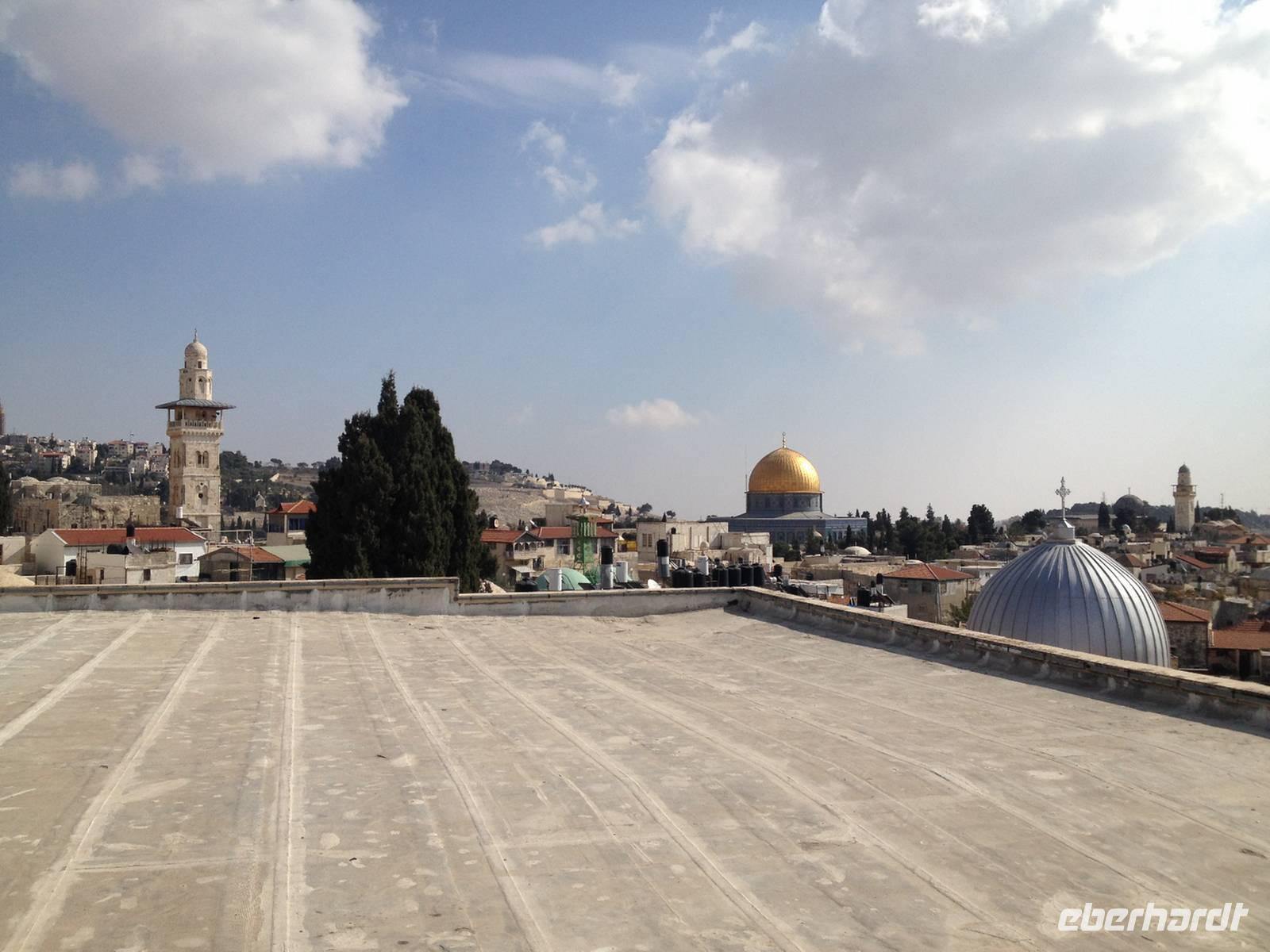 Heute ist die Grabeskirche in der Hand sechs christlicher Konfessionen und dementsprechend konfliktreich geht es hier zu. Von David erfuhren wir schließlich noch, was die Holzleiter über dem Eingang zur Grabeskirche zu bedeuten hat.
