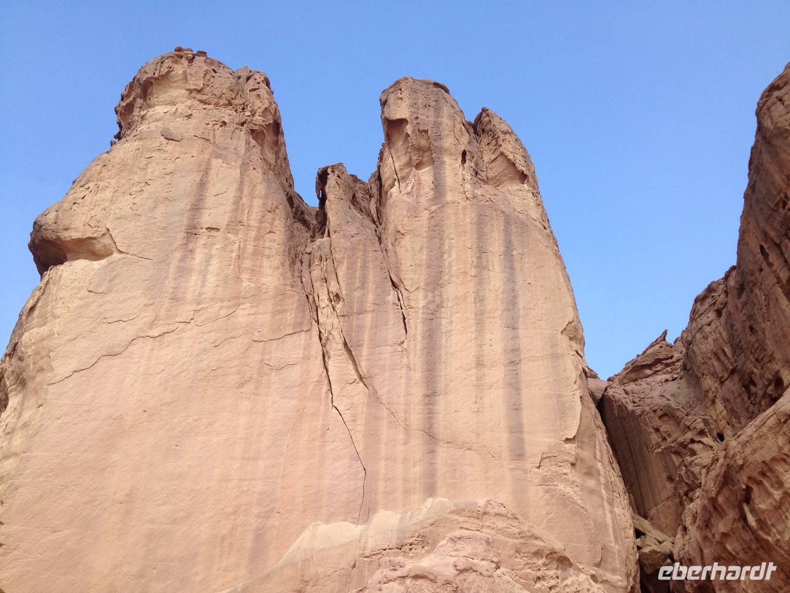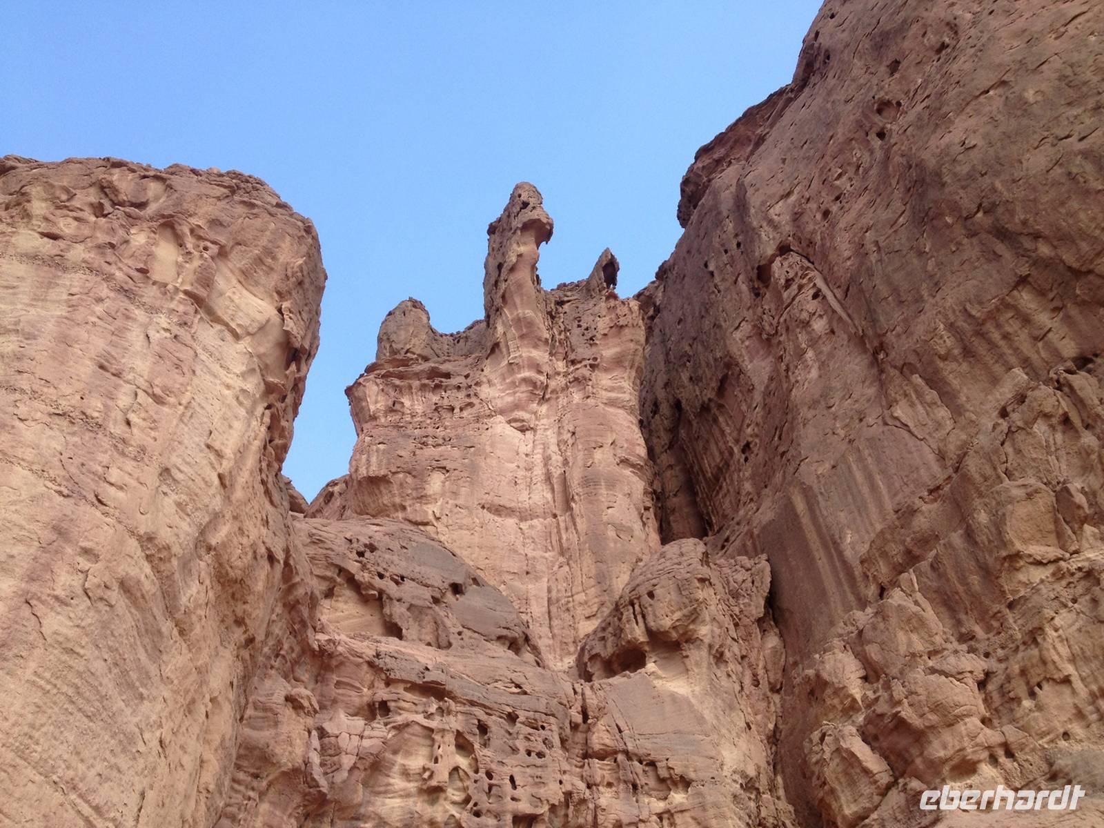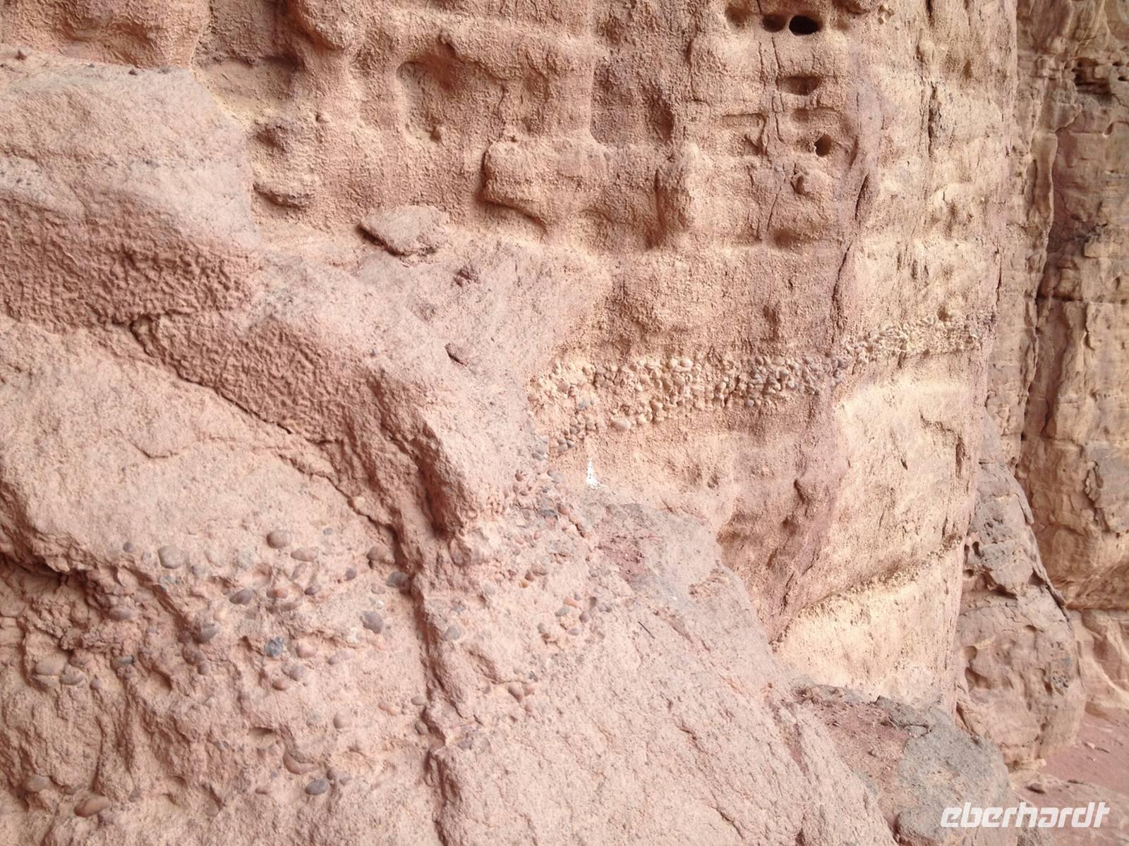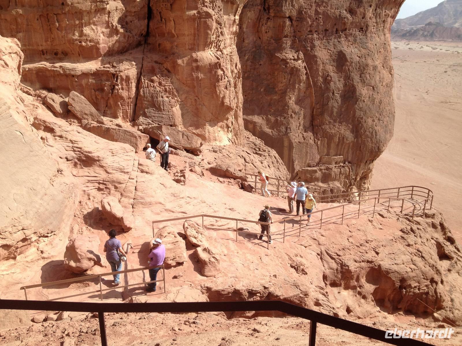 Eine kurze Wanderung führte uns anschließend direkt durch Salomons Säulen, um das in den Stein gemeißelte Bild der ägyptischen Göttin Hathor anzuschauen, sowie zu ihrem antiken Schrein am Fuß der Klippen auf der anderen Seite.