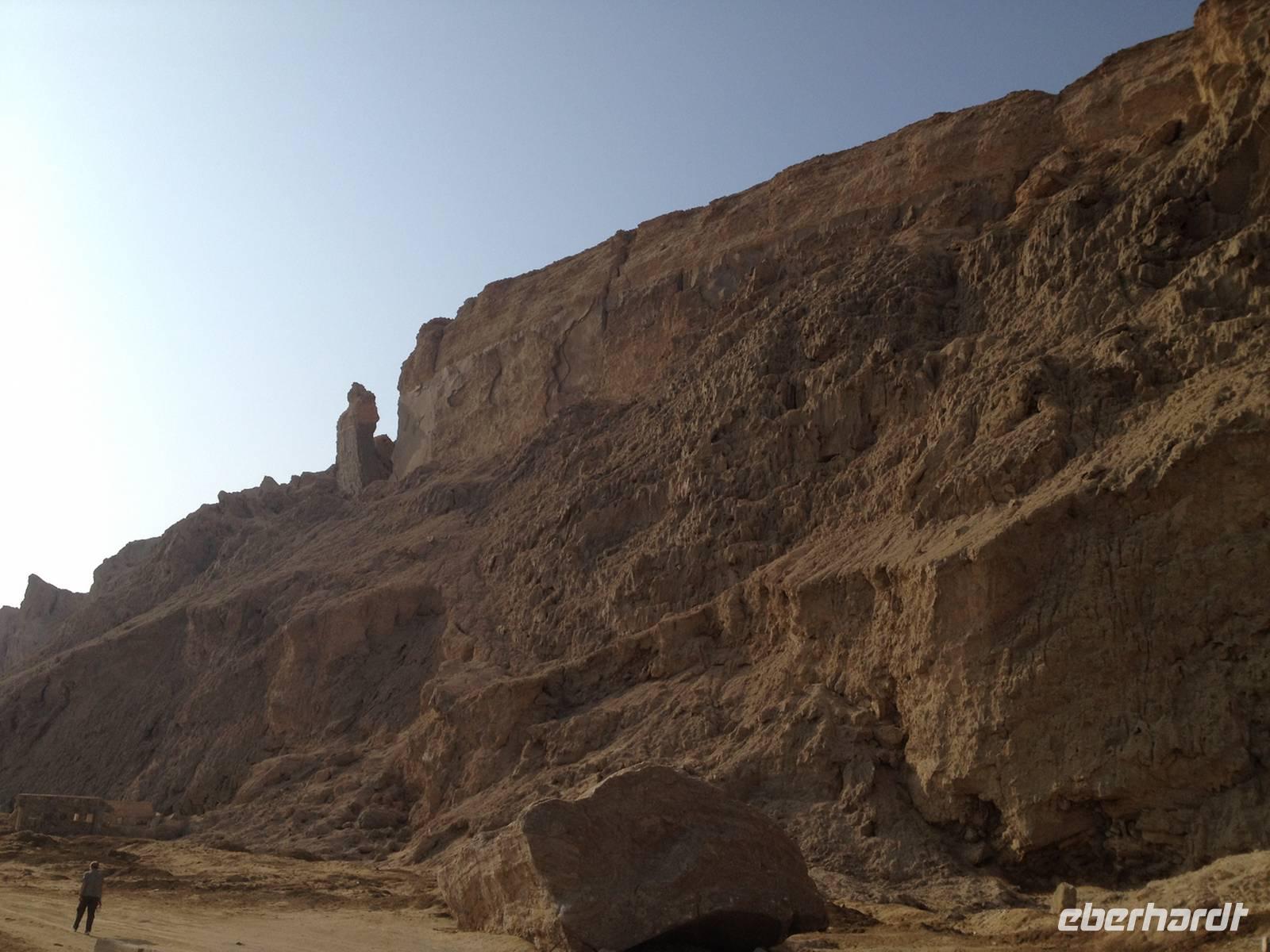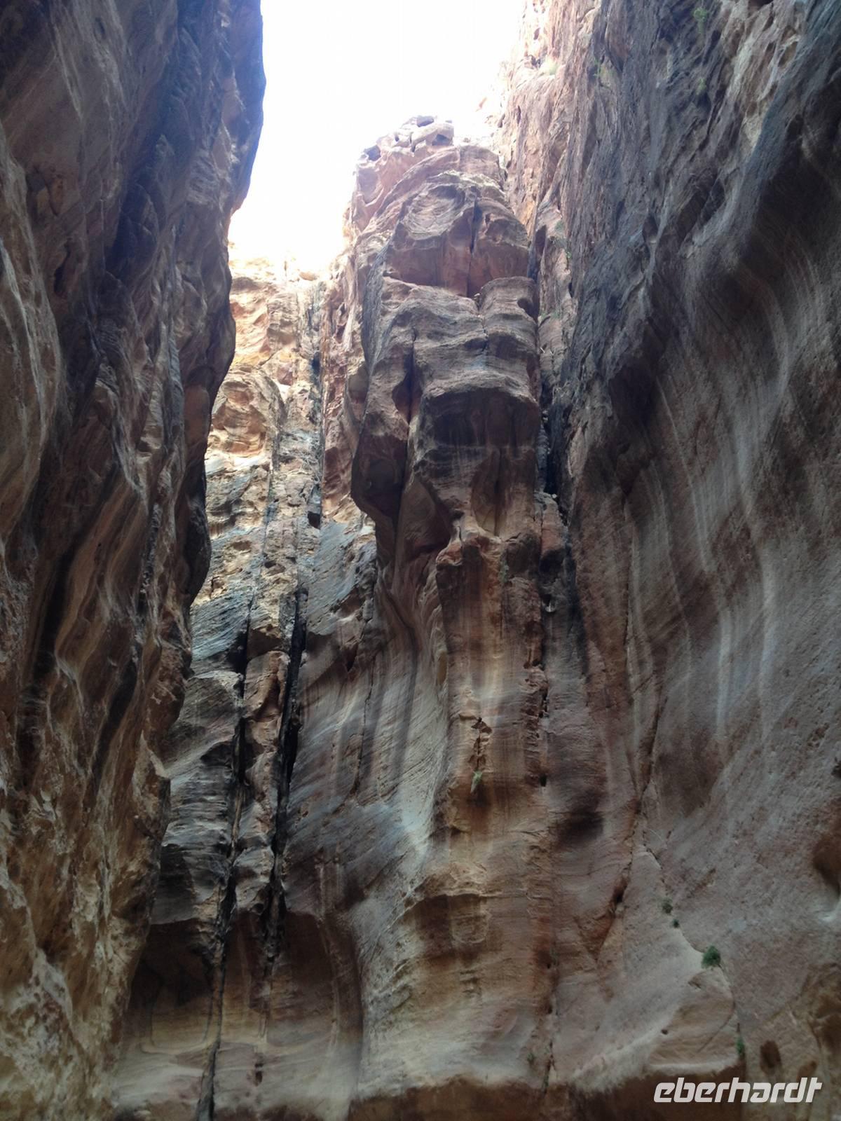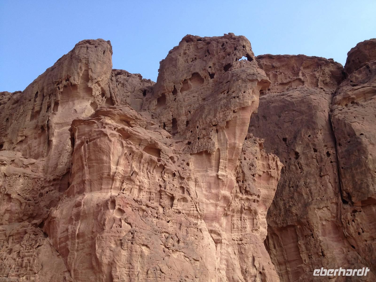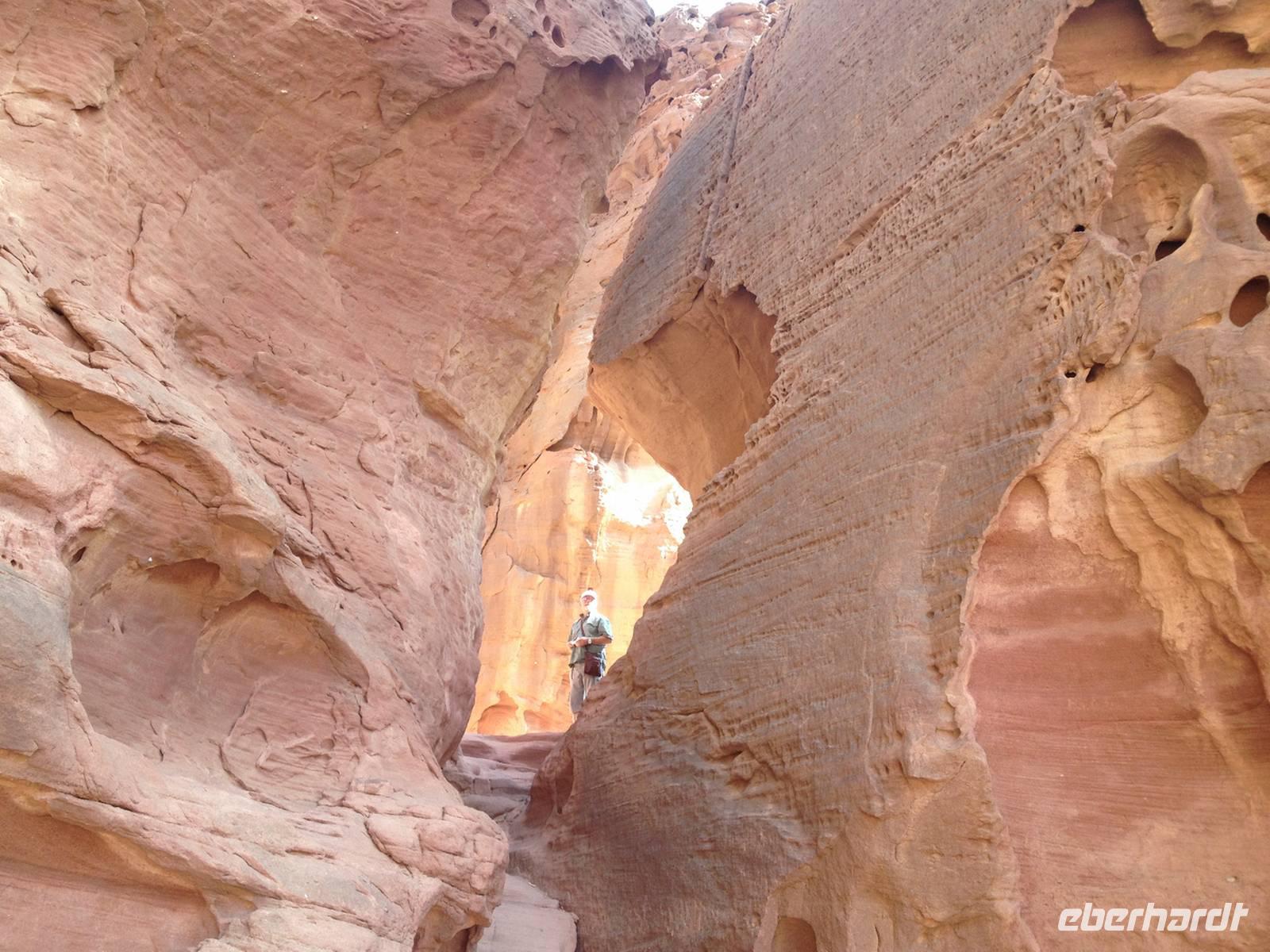 Eine kurze Wanderung führte uns anschließend direkt durch Salomons Säulen, um das in den Stein gemeißelte Bild der ägyptischen Göttin Hathor anzuschauen, sowie zu ihrem antiken Schrein am Fuß der Klippen auf der anderen Seite.