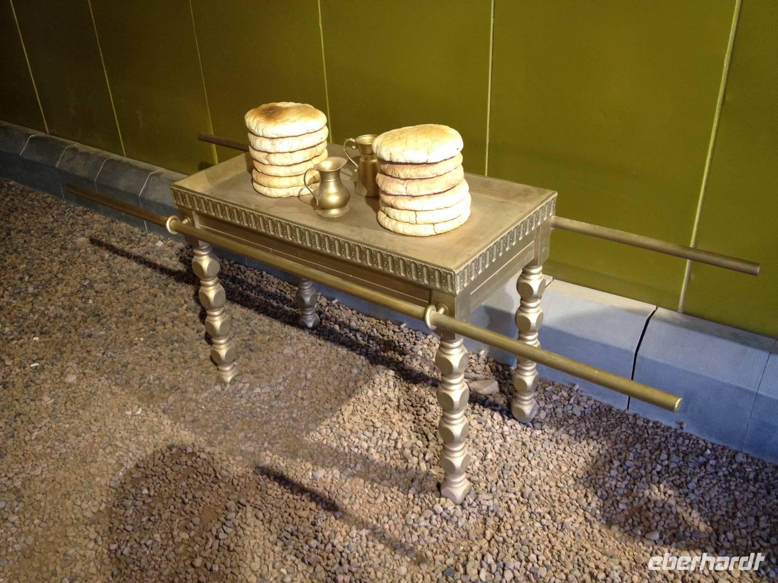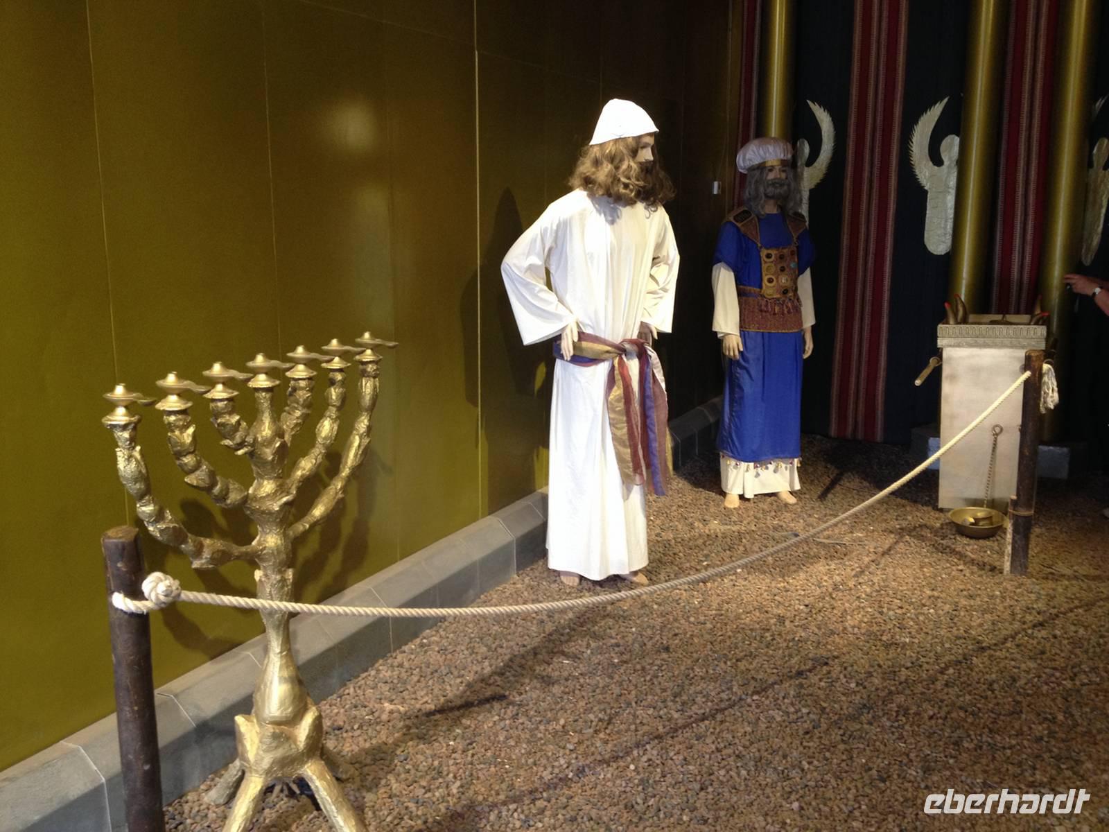 Nach einer nur kurzen Fahrt erreichten wir die Stiftshütte, bekannt aus der Lutherbibel. Sie ist ein transportables Heiligtum, welches nach dem biblischen Text das Volk Israels auf seinen Wanderungen nach dem Auszug aus Ägypten mitführte, bevor ein permanentes Zentralheiligtum errichtet wurde.