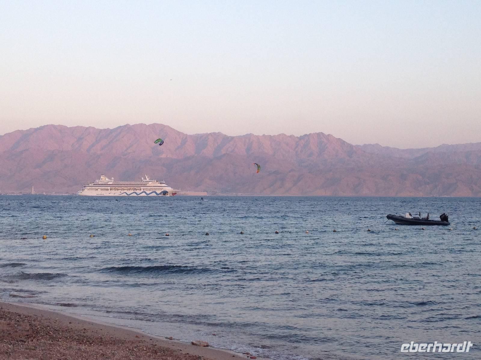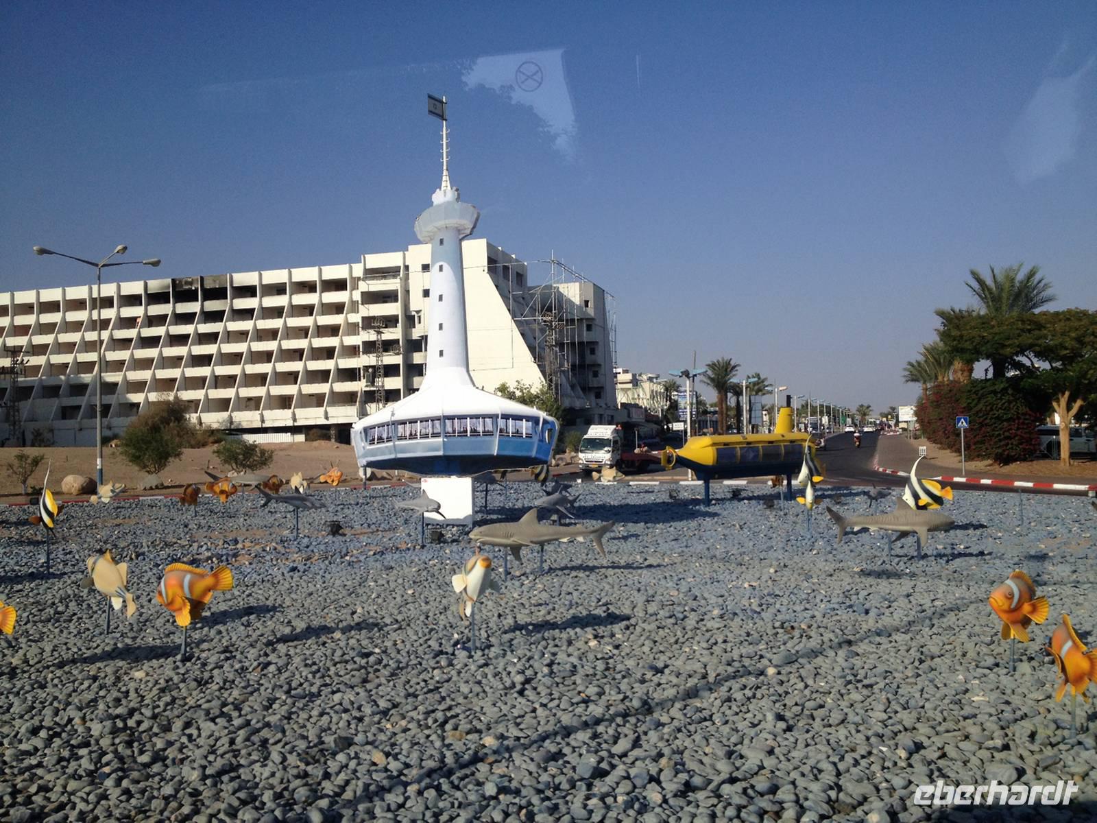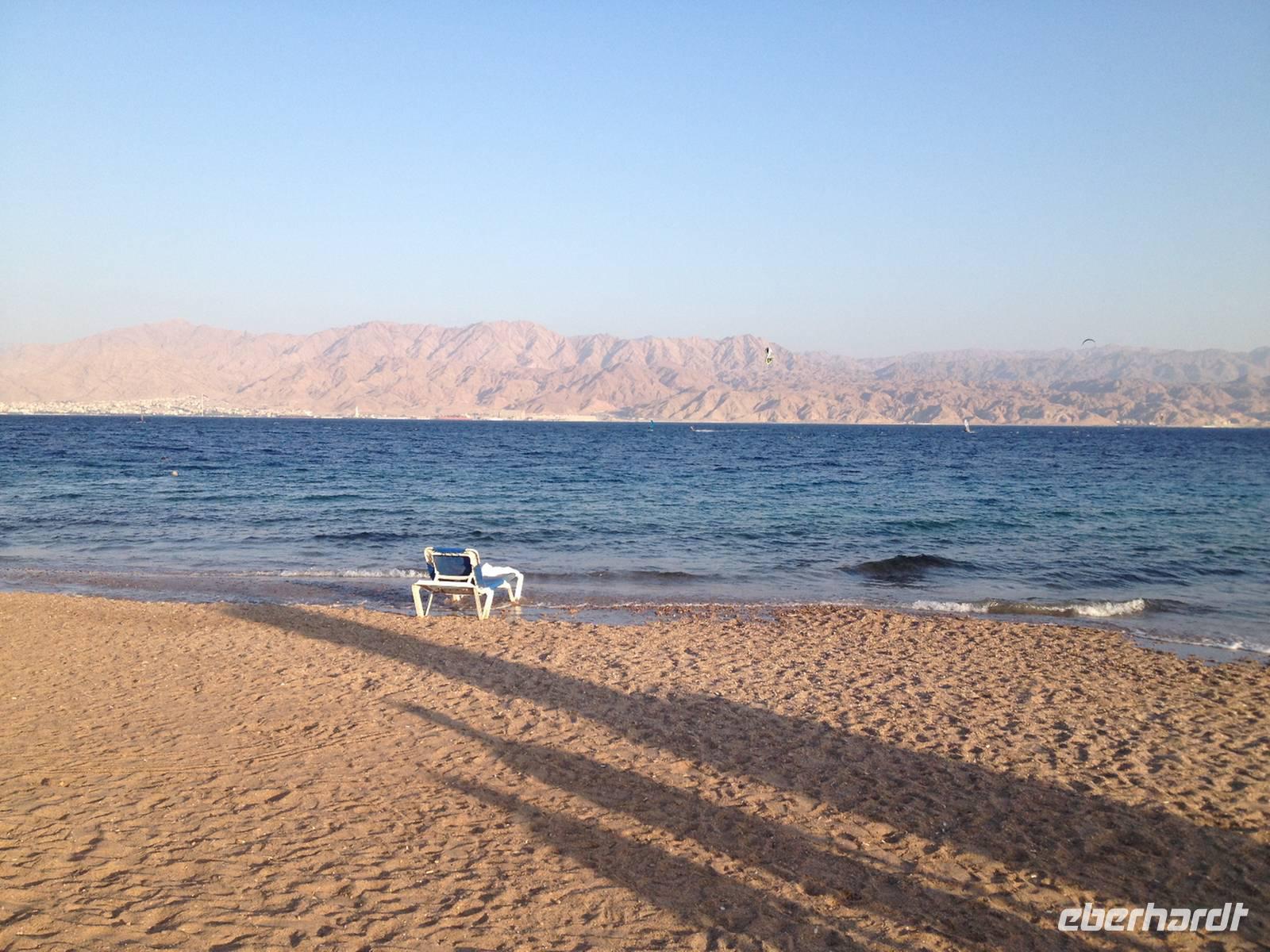 Am frühen Nachmittag erreichten wir schließlich Eilat, Israels internationaler Ferien- und Wassersportort mit ganzjähriger Badesaison, Wassertemperaturen selten unter 20°C und einem ausgiebigen Nachtleben. Von unserem Hotel am Coral Beach sind es nur wenige Meter zum Strand, was wir natürlich gleich für ein erstes Bad im angenehmen Wasser des Roten Meeres nutzten.