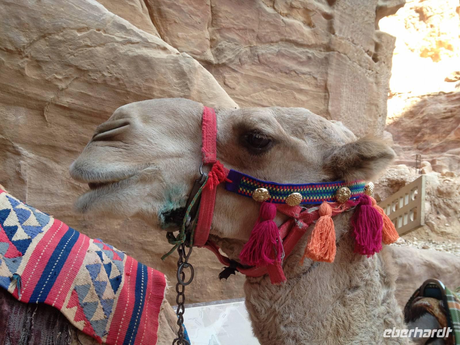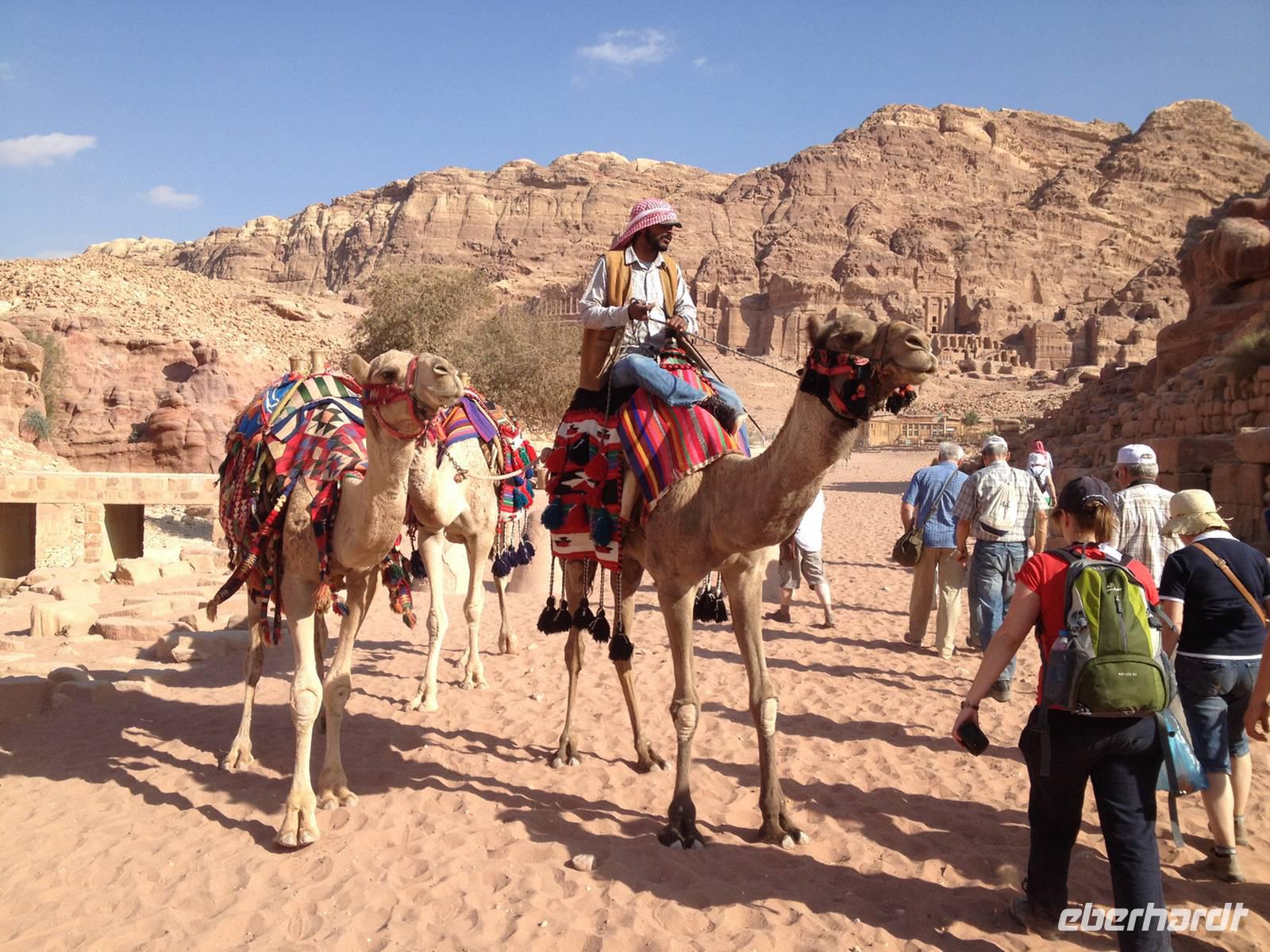 Bei einem arabischen Kaffee hörten wir noch einiges Wissenswertes über die Geschichte und das heutige Leben der Beduinen bevor einige aus der Gruppe eine kleine Runde mit dem Kamel drehten.